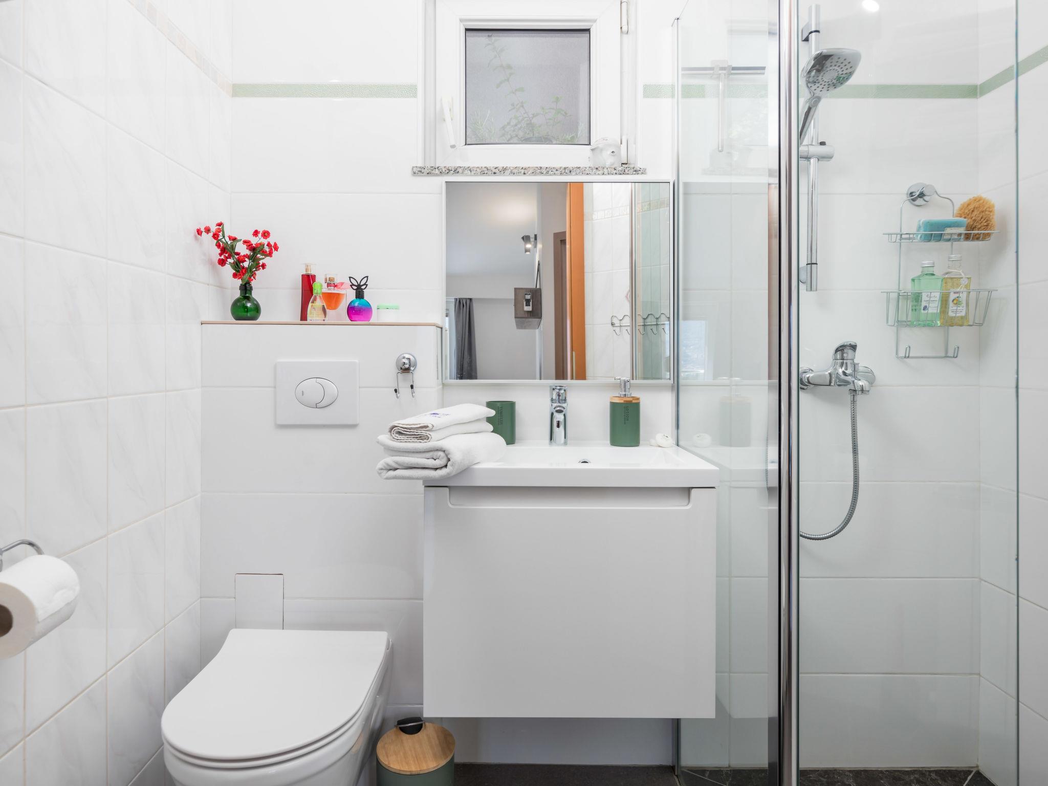 "Bella Vista", 2-Zimmer-Wohnung 43 m2 im 2. Stock. Wohn-/Esszimmer mit 1 Doppeldiwanbett (160 cm, Länge 200 cm), Sat-TV und Klimaanlage. Ausgang zur Terrasse. 1 Zimmer mit 1 franz. Bett (160 cm, Länge 200 cm). Offene Küche (Geschirrspüler, 4 Glaskeramikplatten, Toaster, Wasserkocher, Mikrowelle, elektrische Kaffeemaschine). Dusche/WC. Ölheizung, Klimaanlage, Warmluftheizung. Terrasse 6 m2. Terrassenmöbel. Zur Verfügung: Internet (Wireless LAN, gratis). Maximal 1 Haustier/Hund erlaubt.