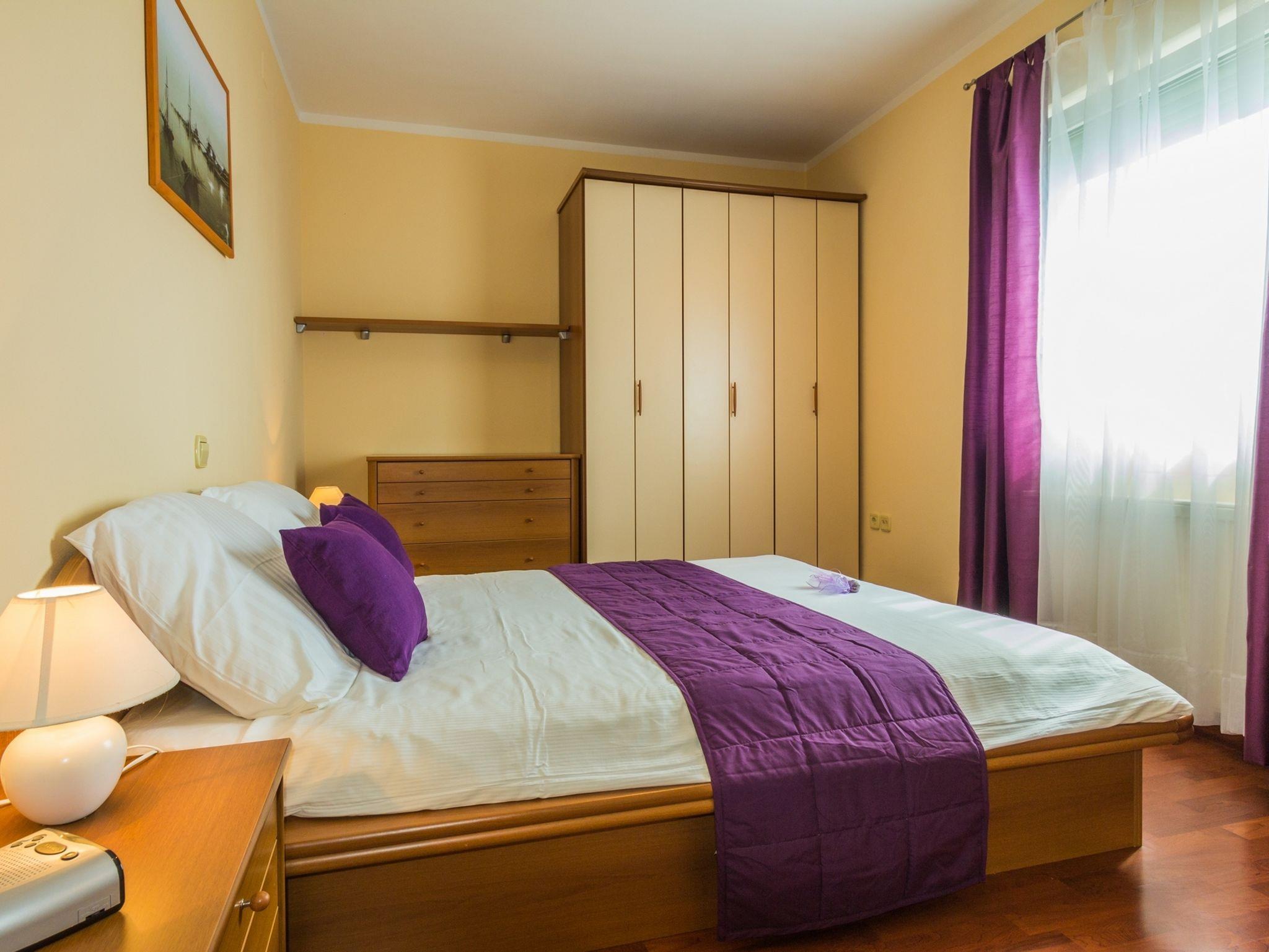 Ferienwohnung bietet Platz für 6 Gäste. Die Betten sind in Schlafzimmern, die es 2 gibt, und in Wohnzimmer, innerhalb einer Gesamtfläche von 102m2, angeordnet. Die Gäste haben eine eigene Terrasse zur Verfügung, auf der sie in warmen Sommernächten genießen können. Das Apartment bietet Meerblick. Es ist erlaubt, Speisen auf dem Gemeinschafts-Grill vorzubereiten. Während ihres Aufenthalts können Gäste das gemeinsam zur Nutzung stehende Schwimmbad benutzen. IM PREIS INBEGRIFFEN: Kurtaxe, Endreinigung, Klimatisierung, Pool, Parkplatz, Internet, Bügeleisen, Bügelbrett, Föhn, Sonnenschirm, Liegestühle. Die Verfügbarkeit zusätzlicher Dienstleistungen in Ihrem reservierten Termin und die Preise derselben (falls nicht aufgeführt) müssen im Voraus überprüft werden. Zusätzliche Dienstleistungen die in der Zahlungsaufforderung nicht aufgeführt sind werden direkt beim Vermieter bezahlt, angenommen der Gast nutzt auch diese.