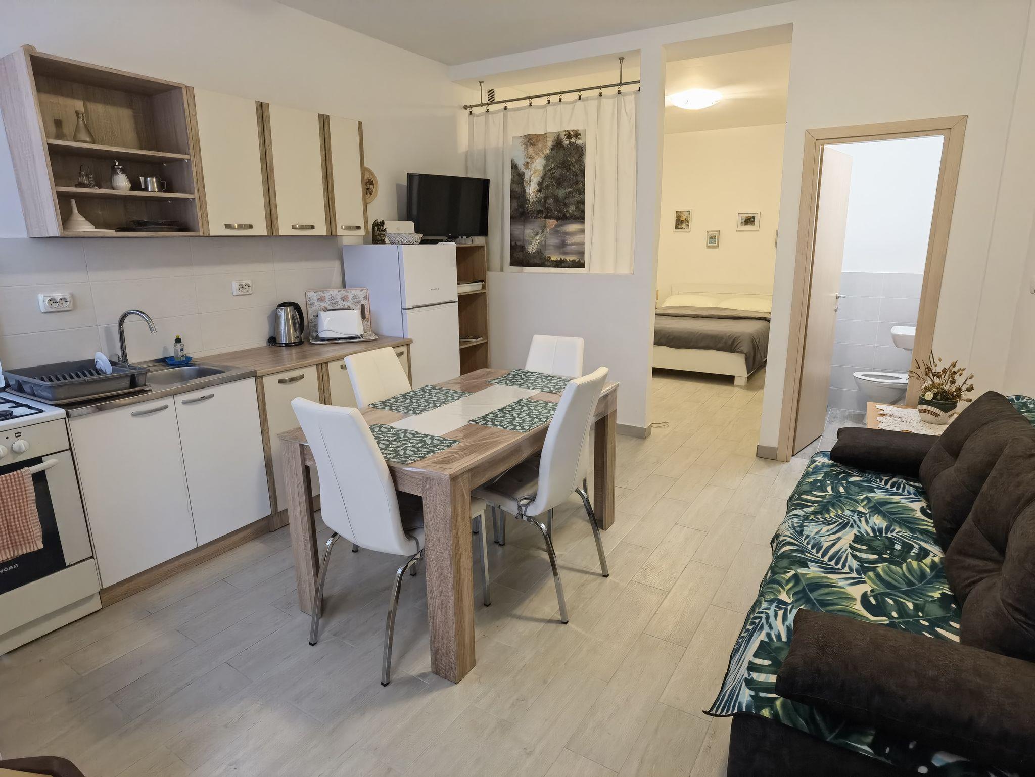 Studio bietet Platz für 3 Gäste. Die Betten sind in Schlafzimmern, die es 1 gibt, und in Wohnzimmer, innerhalb einer Gesamtfläche von 35m2, angeordnet. Die reservierte Unterkunftseinheit hat keinen Balkon und keine Terrasse. IM PREIS INBEGRIFFEN: Kurtaxe, Endreinigung, Klimatisierung, Parkplatz, Internet, Bügeleisen, Bügelbrett, Föhn. Die Verfügbarkeit zusätzlicher Dienstleistungen in Ihrem reservierten Termin und die Preise derselben (falls nicht aufgeführt) müssen im Voraus überprüft werden. Zusätzliche Dienstleistungen die in der Zahlungsaufforderung nicht aufgeführt sind werden direkt beim Vermieter bezahlt, angenommen der Gast nutzt auch diese. Ermäßigung auf den Grundpreis: Gratistag 14=13 (bei einem Aufenthalt von 14 Tagen oder mehr erhalten Sie einen Gratistag für den Aufenthalt bis 31.12.26).
