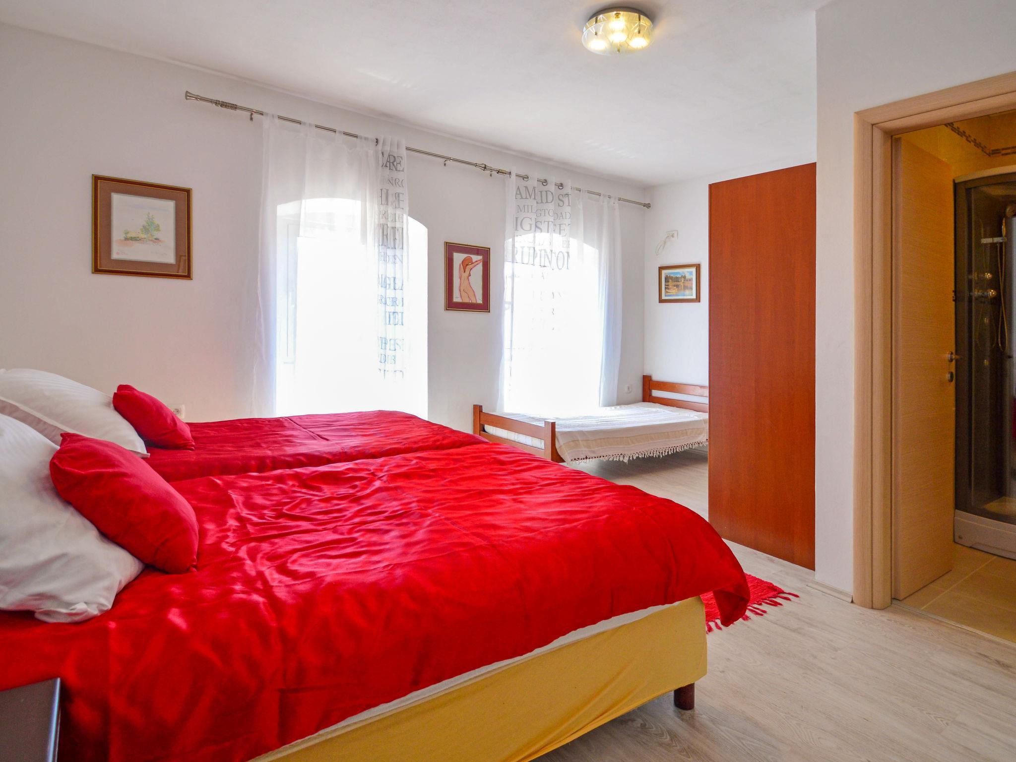 4-Zimmer-Wohnung 120 m2, im erhöhten Erdgeschoss, Ostlage. Wohn-/Esszimmer 25 m2 mit Kabel-TV (Flachbildschirm), Klimaanlage. Ausgang zur Terrasse. 1 Zimmer mit 2 Betten (90 cm, Länge 190 cm). 1 Zimmer mit 1 franz. Bett (180 cm, Länge 200 cm). 1 Zimmer mit 1 Bett (90 cm, Länge 190 cm), 1 Doppelbett (2 x 110 cm, Länge 200 cm), Dusche/WC. Offene Küche (Backofen, 4 Glaskeramikplatten, Tiefkühler, elektrische Kaffeemaschine). Dusche/WC. Keine Heizmöglichkeit. Schöne Panoramasicht auf das Meer. Zur Verfügung: Waschmaschine, Babybett. Internet (WLAN, gratis). Bitte beachten: Maximal 2 Haustiere/Hunde erlaubt. Eigener Eingang.