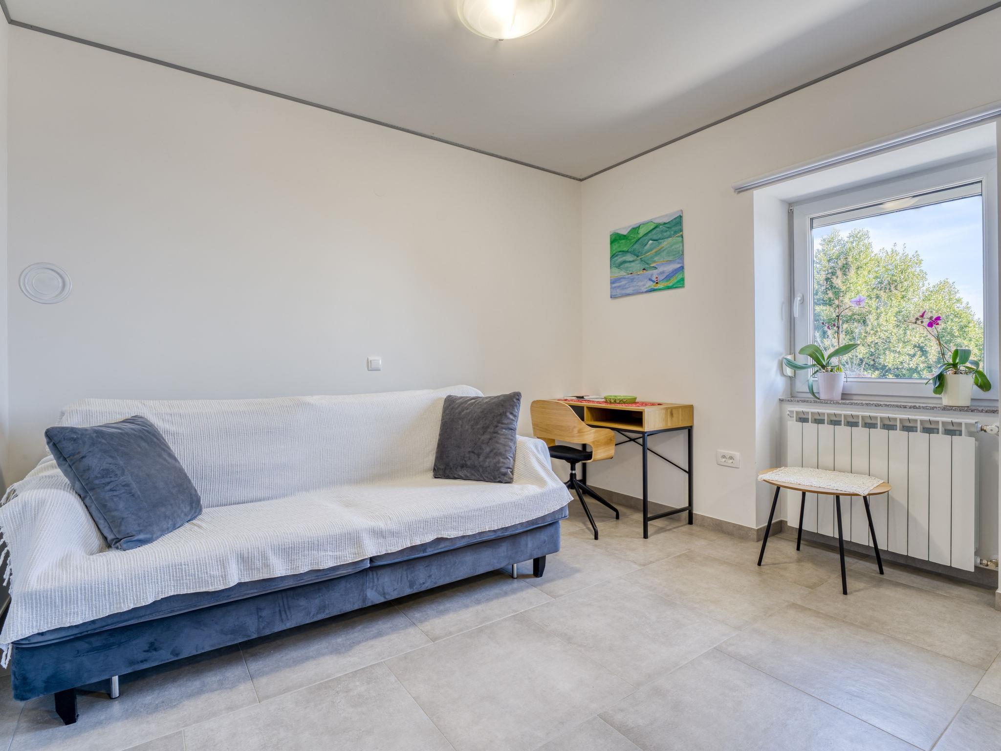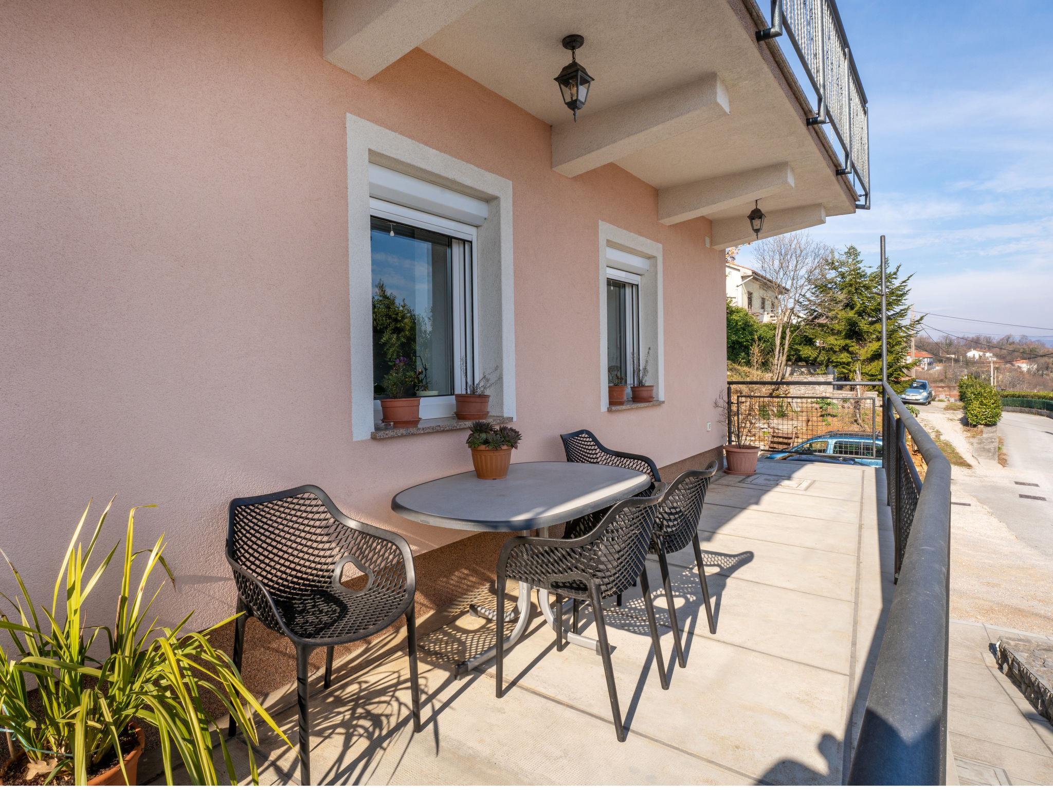 Bregi 5 km von Opatija: Zweifamilienhaus "Željko". Oberhalb von Opatija, sonnige, erhöhte Lage, 5.5 km vom Meer. Zur Alleinbenutzung: Terrasse (16 m2), Gartenmöbel. Im Hause: Internetzugang. Parkplatz beim Haus auf dem Grundstück. Einkaufsgeschäft 450 m, Restaurant 550 m, Bushaltestelle 450 m, Kieselstrand 5.5 km, betonierter Strand 5.5 km.