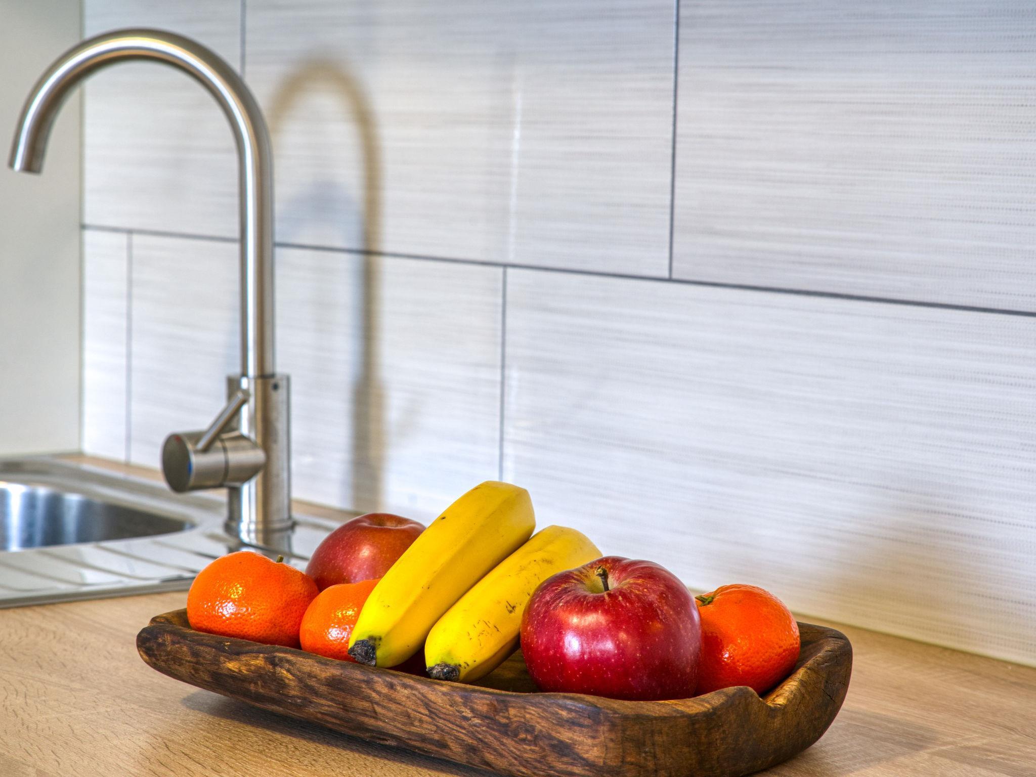 2-Zimmer-Wohnung 45 m2, im erhöhten Erdgeschoss. Wohn-/Esszimmer mit 1 Doppeldiwanbett (140 cm, Länge 190 cm), Kabel-TV (Flachbildschirm), Klimaanlage. 1 Zimmer mit 1 franz. Bett (160 cm, Länge 200 cm). Offene Küche (Backofen, 4 Glaskeramikplatten, Toaster, Wasserkocher, elektrische Kaffeemaschine). Dusche/WC. Warmluftheizung. Schöne Panoramasicht auf das Meer. Zur Verfügung: Waschmaschine. Internet (Wireless LAN, gratis). Parkplatz (2 Autos). Bitte beachten: Nichtraucher-Haus. Eigener Eingang.