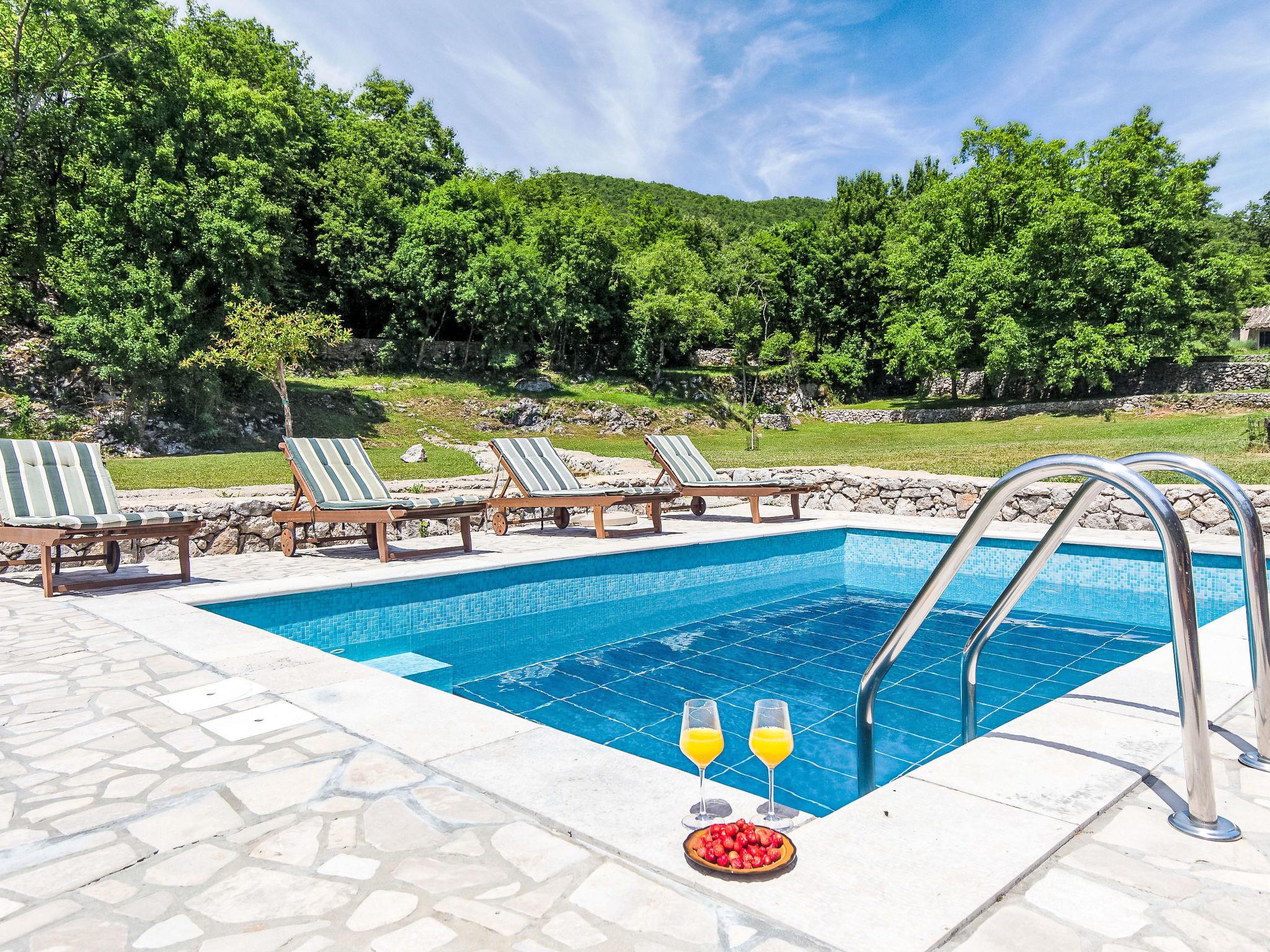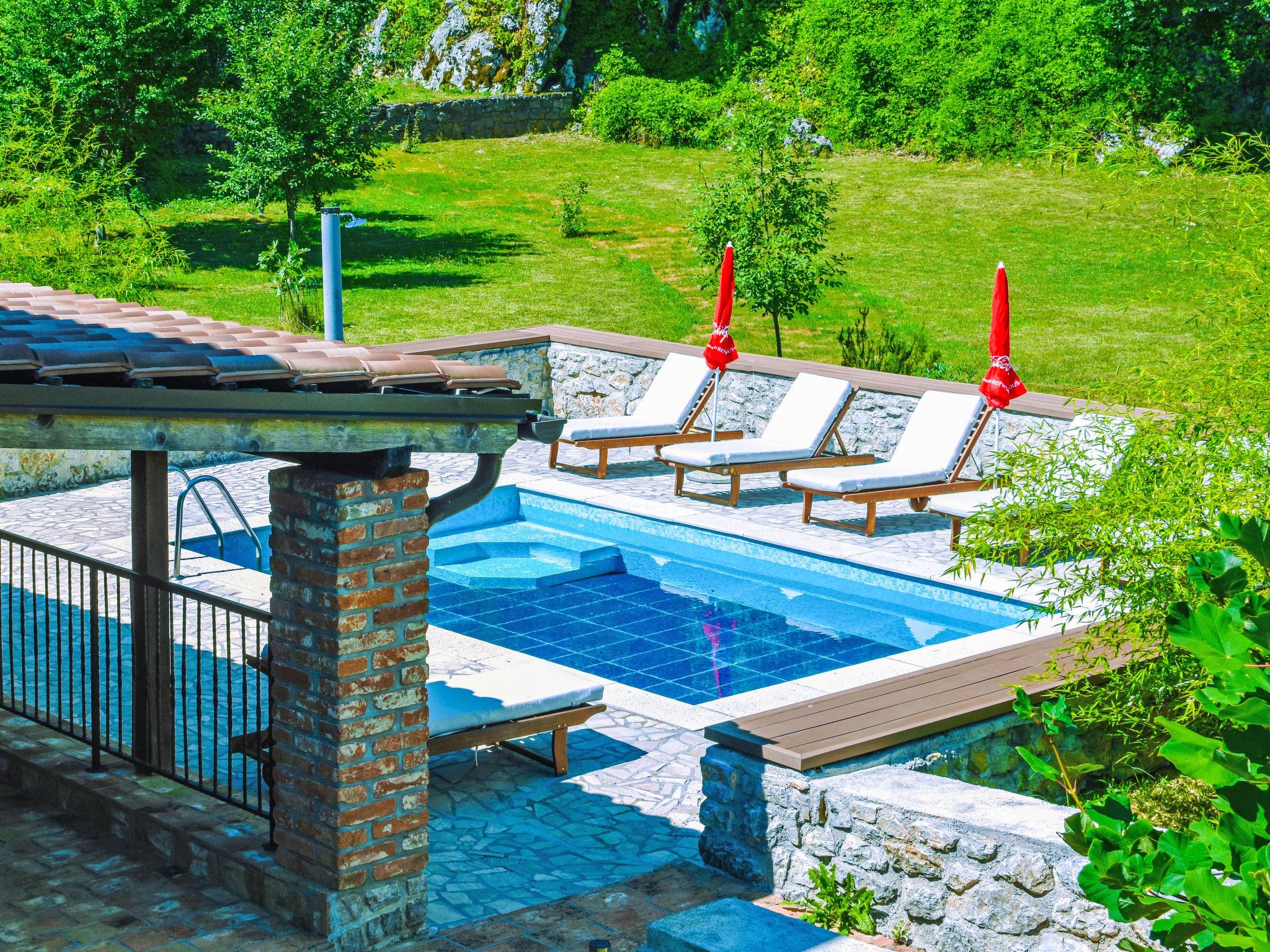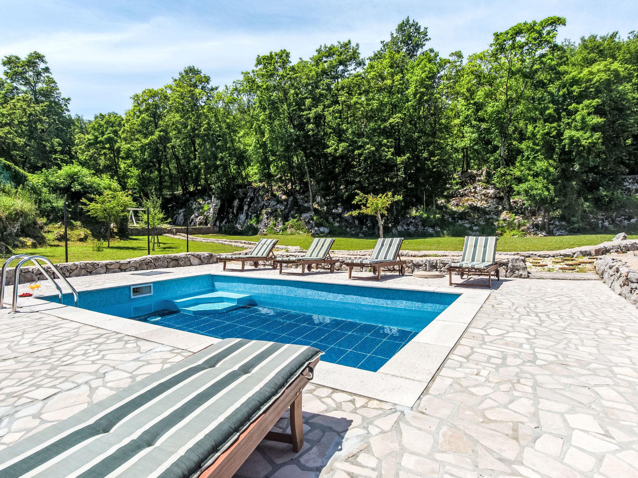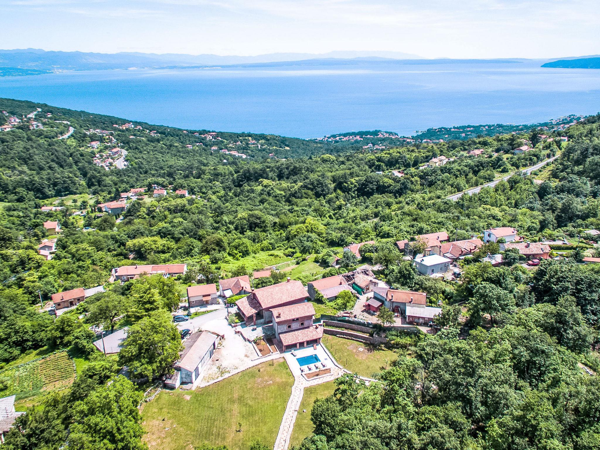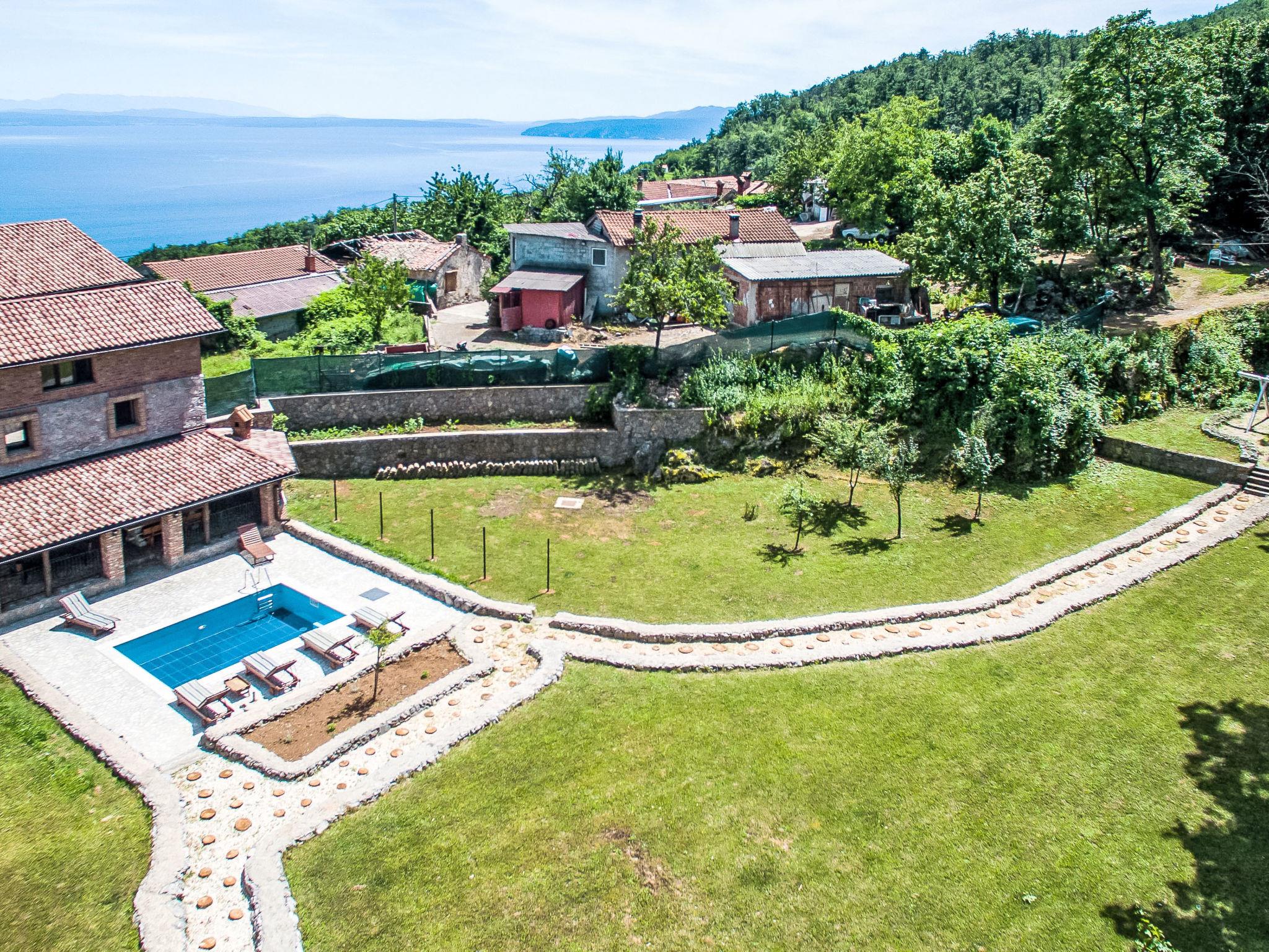 Einfamilienhaus "Natura", auf 2 Stockwerken. Oberhalb von Icici, im Weiler Puhari, 9 km vom Zentrum von Lovran, 8 km vom Zentrum von Icici, 9 km vom Zentrum von Opatija, 8 km vom Meer. Zur Alleinbenutzung: Grundstück 4'200 m2, Rasen und Bäumen, Schwimmbad (24 m2, 120 cm tief, saisonale Verfügbarkeit: 02.Mai. - 07.Okt.). Aussendusche, Terrasse (40 m2), Gartenmöbel, Grill, Poolpflege durch den Besitzer/Gärtner. Im Hause: Internetzugang, Billard, Trampolin, Waschmaschine. Parkplatz (für 4 Autos) beim Haus auf dem Grundstück. Einkaufsgeschäft 4 km, Supermarkt 8 km, Bushaltestelle 1 km, Kieselstrand 8 km. Der Besitzer akzeptiert keine Jugendgruppen.