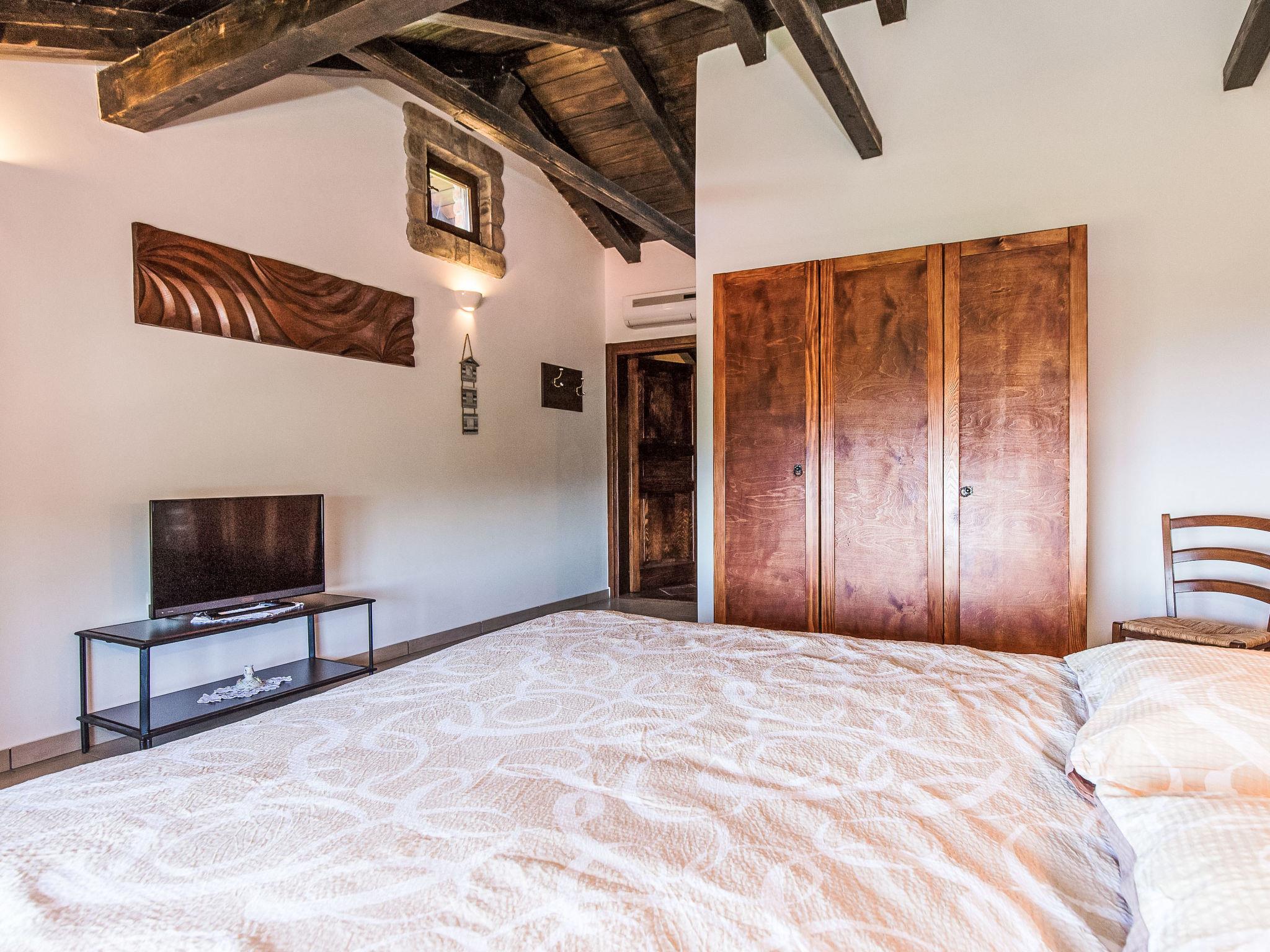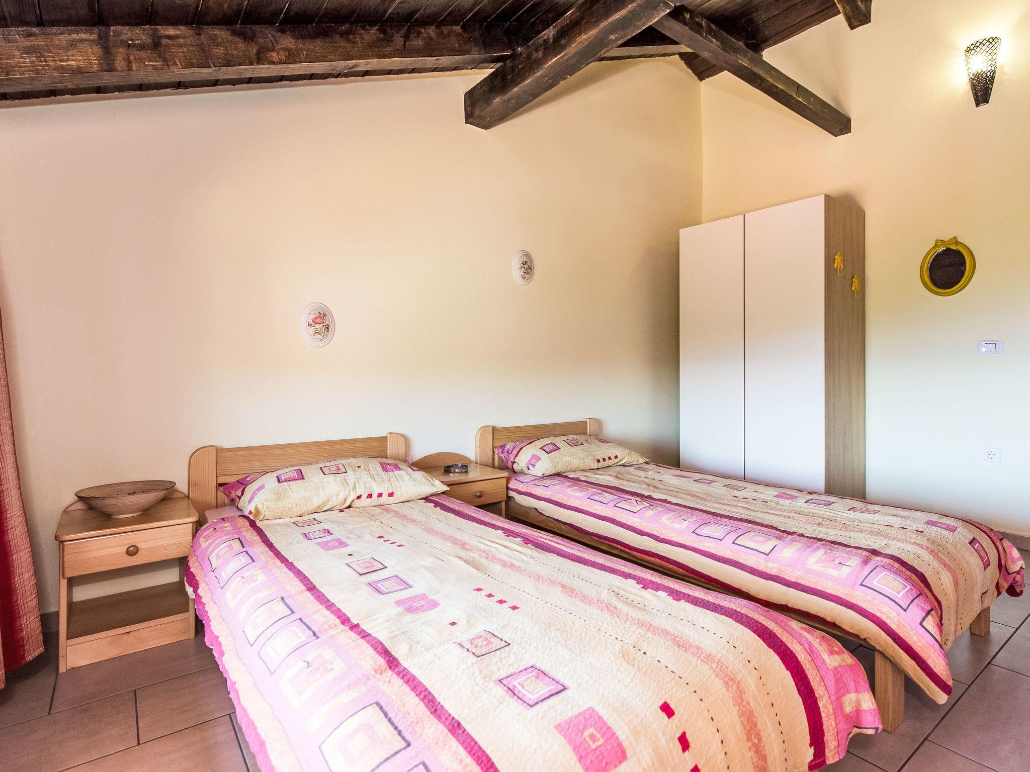 5-Zimmer-Haus 200 m2 auf 2 Stockwerken. Wohn-/Esszimmer mit offenem Kamin, Sat-TV und Klimaanlage. Ausgang zum Balkon. 1 Zimmer mit 1 Doppelbett, Dusche/WC und Klimaanlage. Offene Küche (4 Kochplatten, Geschirrspüler, Tiefkühler, elektrische Kaffeemaschine). Sep. WC. Obergeschoss: 1 Zimmer mit 1 Doppelbett, Dusche/WC und Klimaanlage. 1 Zimmer mit 1 franz. Bett (180 cm, Länge 200 cm), Dusche/WC und Klimaanlage. 1 Zimmer mit 2 Betten und Klimaanlage. Dusche/WC. Balkon. Terrassenmöbel, Liegestühle. Fernsicht auf das Meer. Zur Verfügung: Safe, Bügeleisen. Internet (WLAN, gratis). Bitte beachten: Nichtraucher-Haus. Maximal 1 Haustier/Hund erlaubt.