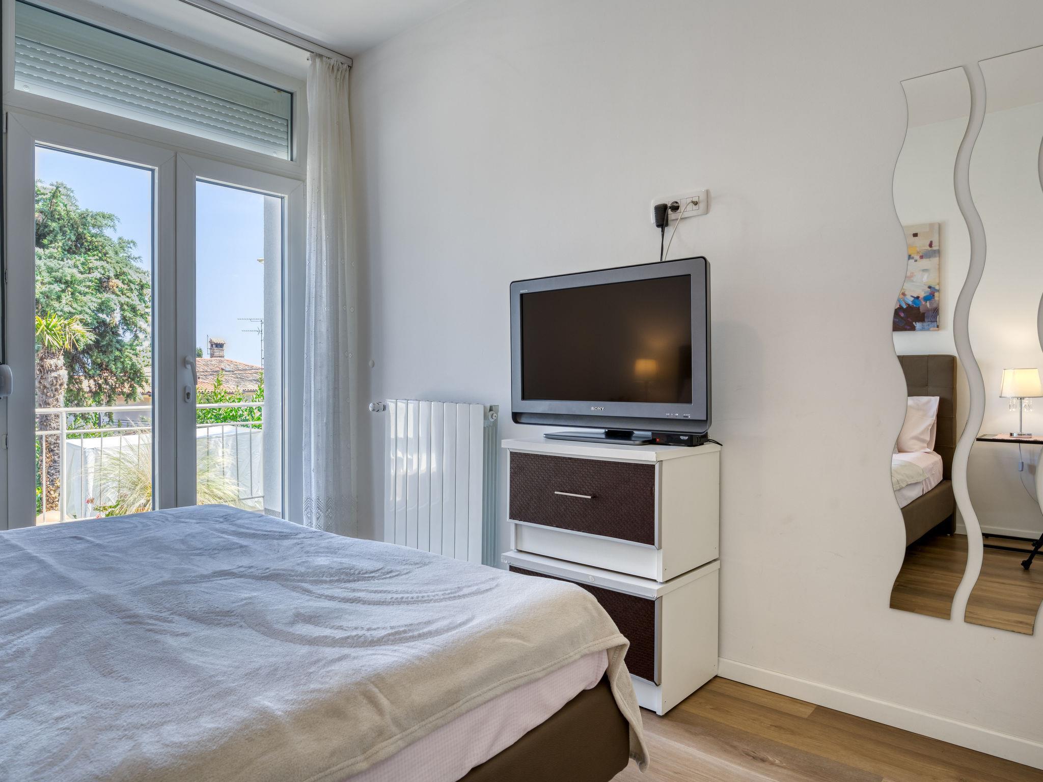 2-Zimmer-Wohnung 50 m2, im Erdgeschoss, Südlage. Wohn-/Esszimmer mit 1 Doppeldiwanbett (150 cm, Länge 200 cm), Kabel-TV und Klimaanlage. Ausgang zur Terrasse. 1 Zimmer mit 2 Betten (90 cm, Länge 200 cm), Sat-TV. Ausgang zur Terrasse. Offene Küche (2 Kochplatten, Wasserkocher, Mikrowelle, elektrische Kaffeemaschine). Bad/Bidet/WC, Dusche/WC. Warmluftheizung. Terrasse 8 m2, Terrasse 12 m2. Terrassenmöbel. Zur Verfügung: Waschmaschine. Internet (Wireless LAN, gratis). Bitte beachten: Nichtraucher-Haus. Eigener Eingang.