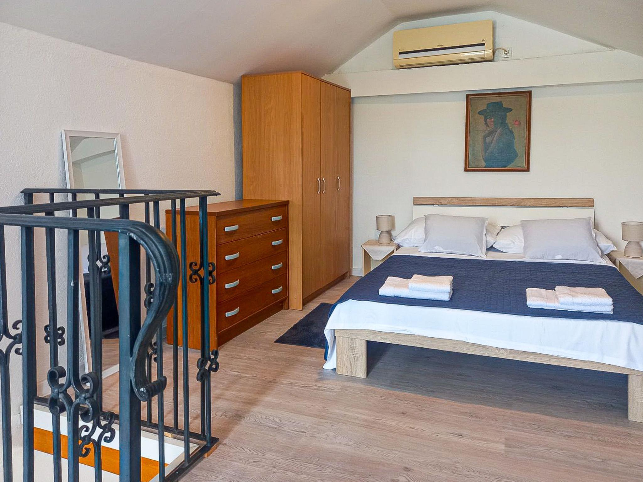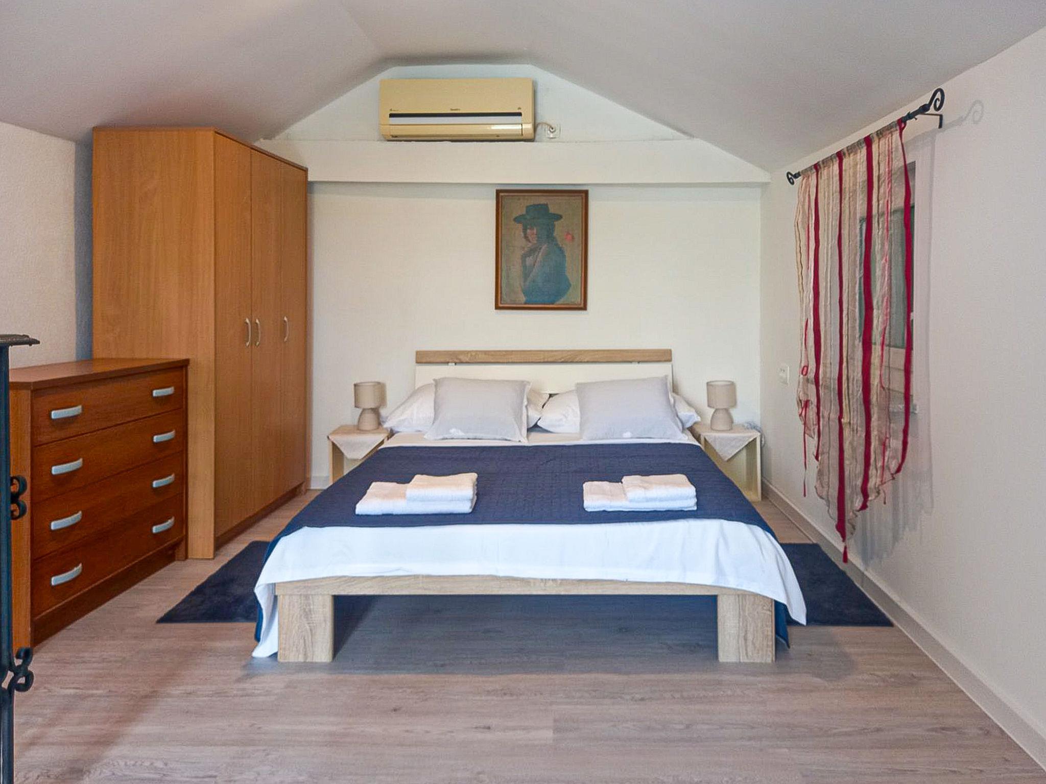 2-Zimmer-Haus 60 m2 auf 2 Stockwerken. Wohnzimmer mit 1 Diwanbett (100 cm, Länge 200 cm), Kabel-TV. Ausgang zum Balkon. 1 Zimmer mit Schiebetür mit 1 franz. Bett (140 cm, Länge 200 cm), Klimaanlage. Unteres Geschoss: offene Küche (4 Kochplatten, Backofen, Geschirrspüler, Tiefkühler, elektrische Kaffeemaschine). Dusche/WC. Keine Heizmöglichkeit. Balkonmöbel. Sicht auf die Landschaft. Zur Verfügung: Waschmaschine. Internet (Wireless LAN, gratis). Parkplatz (1 Auto). Bitte beachten: Nichtraucher-Haus. 1 kleines Haustier/Hund erlaubt.