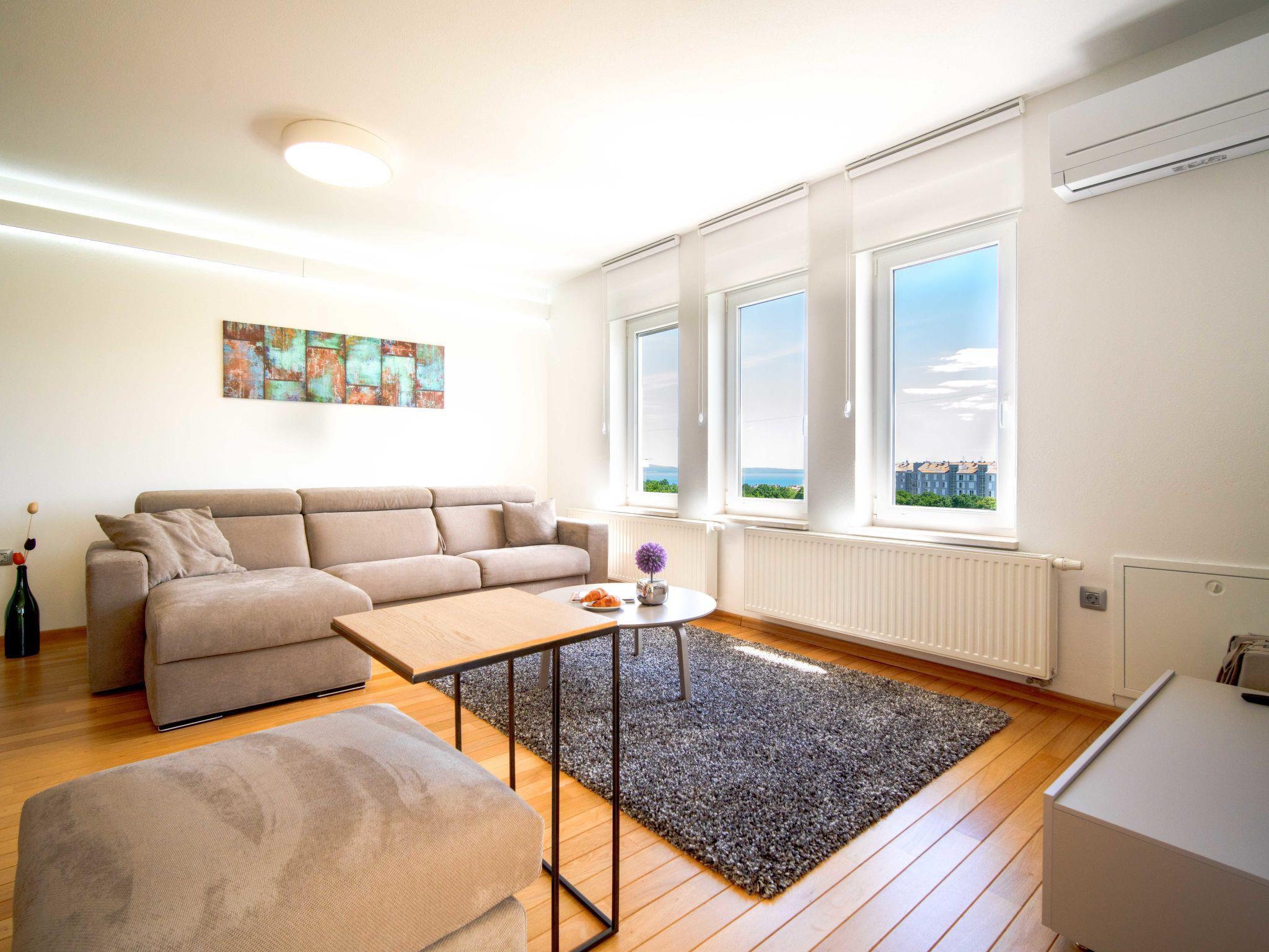 Kastav 7 km von Opatija: Dreifamilienhaus "Kvarner house". 850 m vom Zentrum von Kastav, 9.5 km vom Zentrum von Rijeka, ruhige, sonnige, erhöhte Lage, 5.5 km vom Meer. Zur Mitbenutzung: Grundstück 2'000 m2 mit Rasen und Pflanzen, Schwimmbad eckig (7 x 4 m, 150 cm tief, saisonale Verfügbarkeit: 01.Mai. - 01.Okt.) mit Innentreppe und Salzelektrolyse-Reinigungssystem. Aussendusche, Sprudelbad, Terrasse (30 m2), Gartenmöbel, Grill. Im Hause: Internetzugang. Parkplatz beim Haus auf dem Grundstück. Einkaufsgeschäft, Supermarkt 650 m, Restaurant 850 m, Bushaltestelle 500 m, Kieselstrand 5.5 km, betonierter Strand 5.5 km.