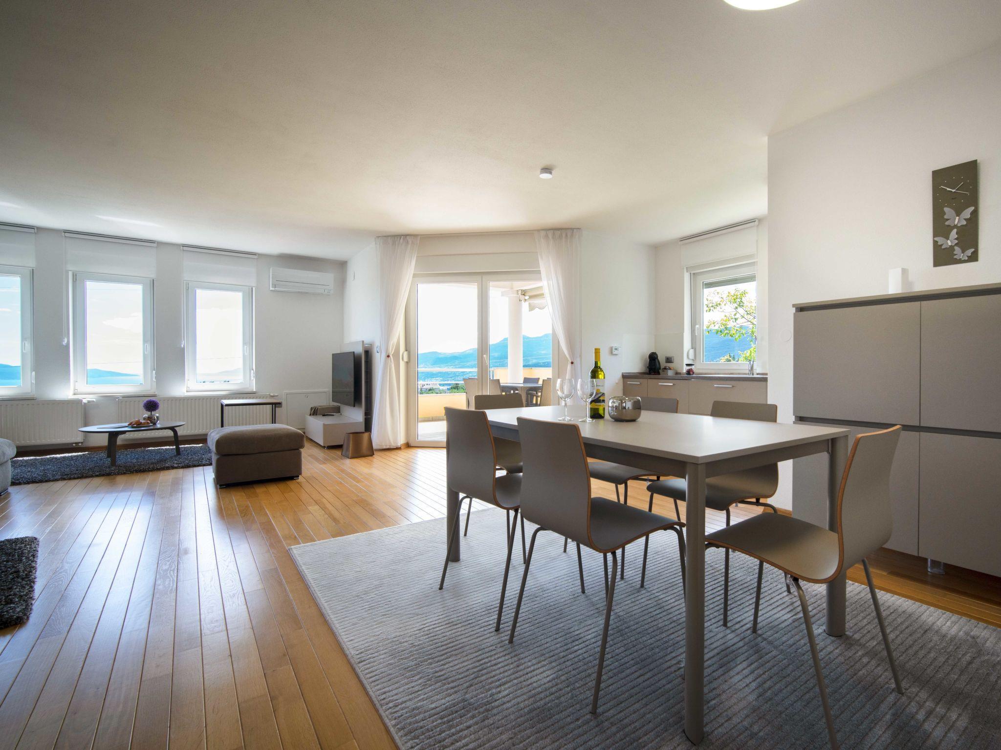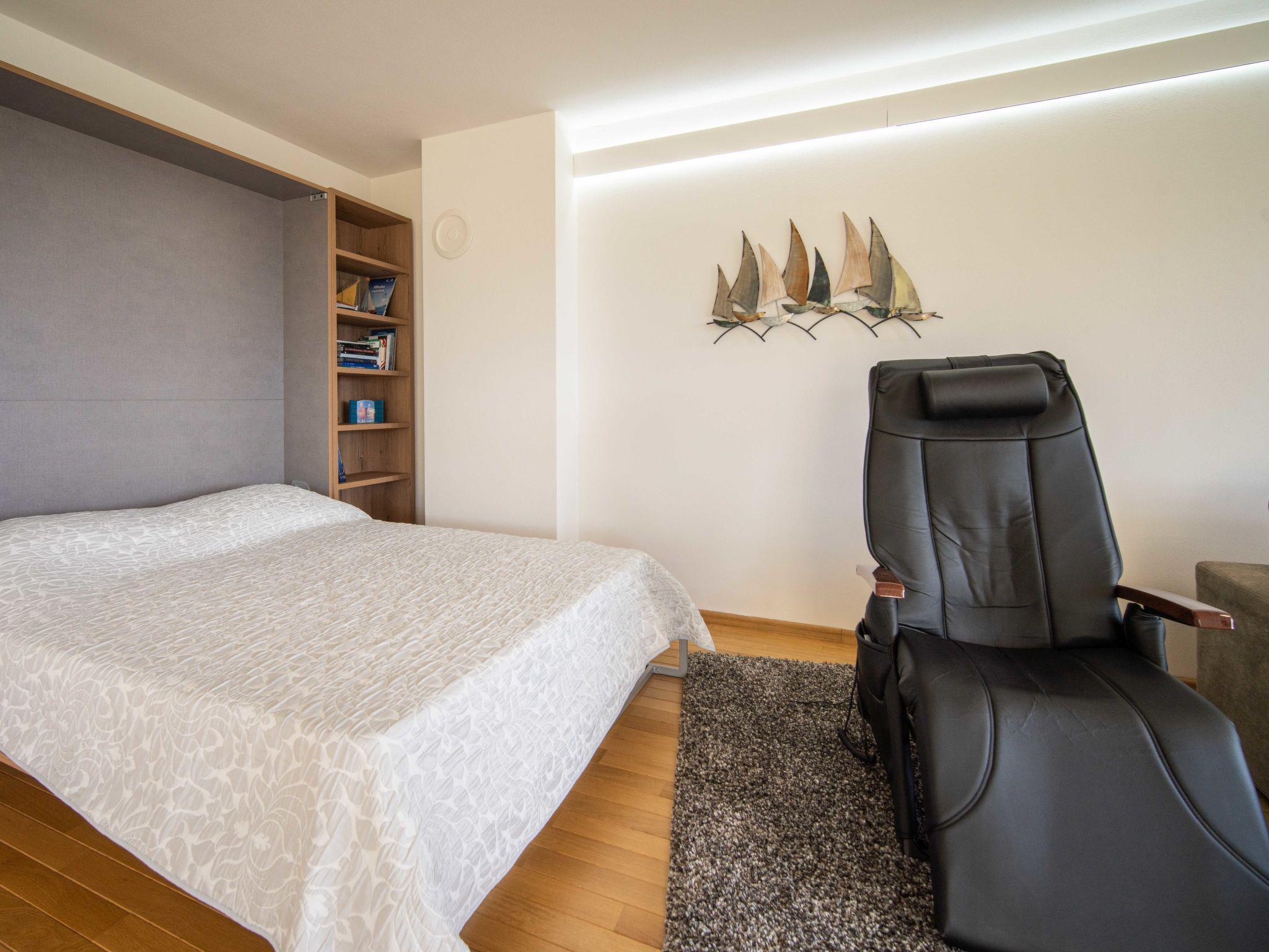 2-Zimmer-Wohnung 93 m2 im 1. Stock, Südlage. Schön und modern eingerichtet: Wohn-/Esszimmer 40 m2 mit 1 franz. Wandklappbett (140 cm, Länge 190 cm), Sat-TV und Klimaanlage. Ausgang zur Terrasse. 1 Zimmer mit 1 franz. Bett (180 cm, Länge 200 cm), Sat-TV. Offene Küche (Backofen, Geschirrspüler, 4 Induktionskochplatten, Wasserkocher, Tiefkühler, elektrische Kaffeemaschine). Dusche/Bidet/WC. Heizung. Terrasse 15 m2, überdacht. Terrassenmöbel. Sicht auf das Meer und die Landschaft. Zur Verfügung: Waschmaschine, Safe, Babybett, Haartrockner. Internet (Wireless LAN, gratis). Bitte beachten: eigener Eingang. Heizungist nur im Zeitraum ab 01.09. bis 30.06. (inklusive).