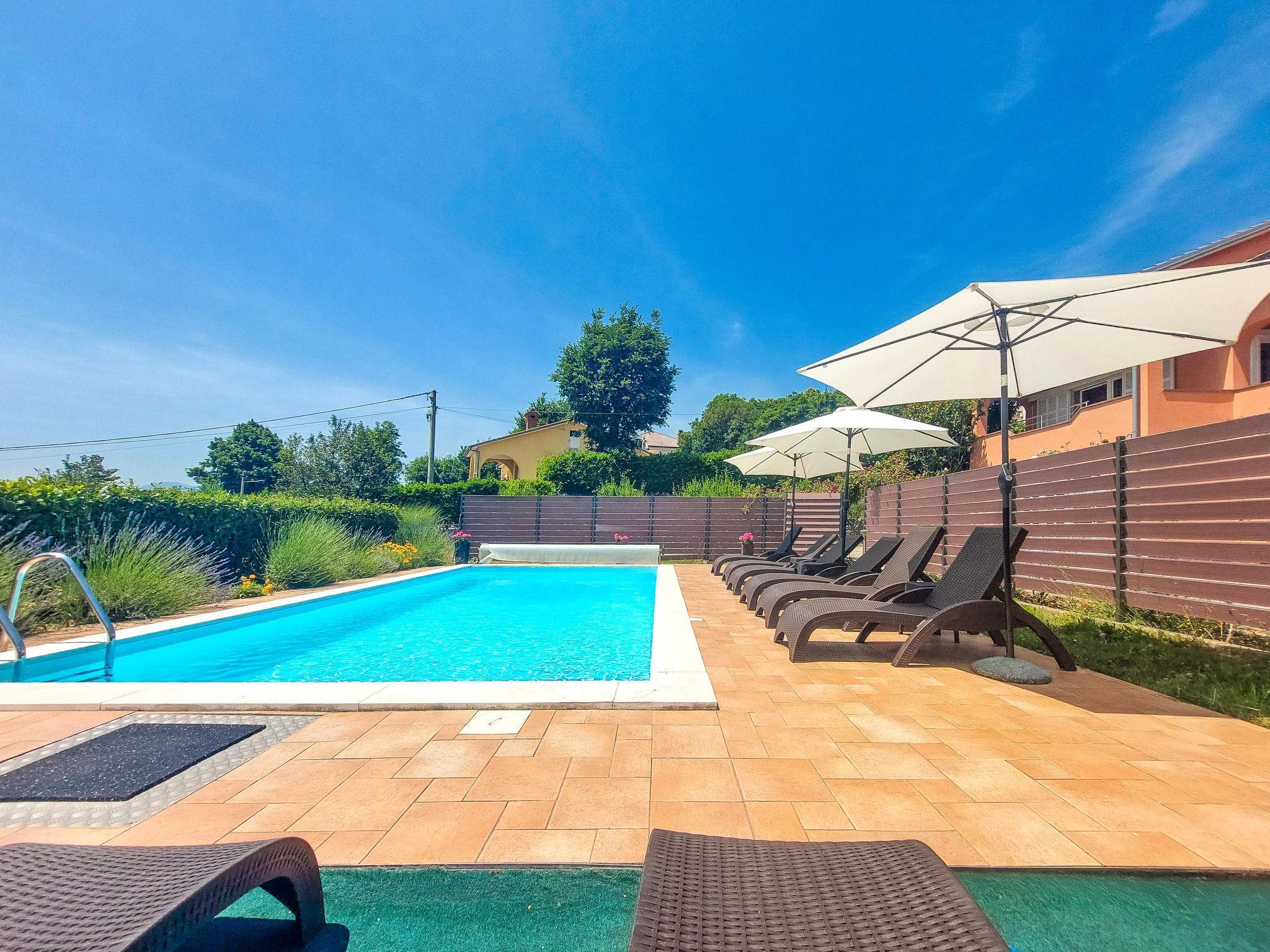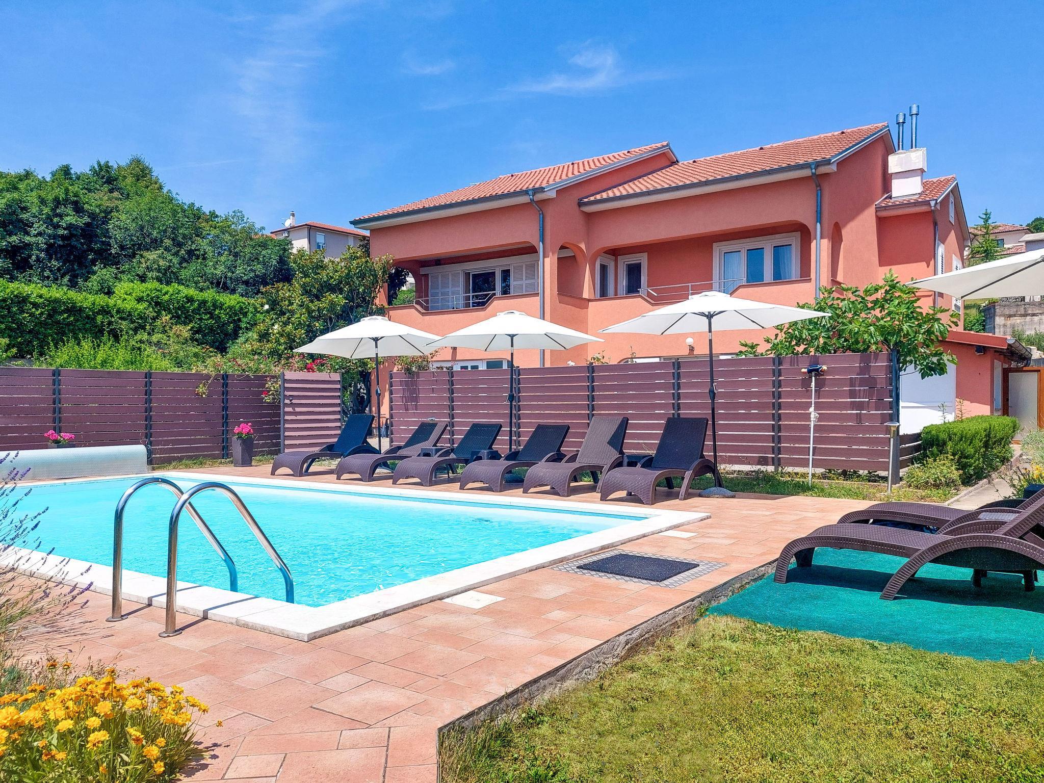 Kastav 6 km von Opatija: Komfortables Zweifamilienhaus "Adrian". Im Weiler Krajevac, 3 km vom Zentrum von Viškovo, 3.3 km vom Zentrum von Kastav, 9 km vom Zentrum von Opatija, sonnige Lage, 8 km vom Meer. Zur Mitbenutzung: Grundstück 2'000 m2 (eingezäunt), gepflegter Garten mit Rasen 300 m2, Blumen, Schwimmbad eckig nicht einsehbar (8 x 4 m, 140 cm tief, saisonale Verfügbarkeit: 15.Mai. - 20.Sep.). WC im Poolbereich, Aussendusche, Poolhaus mit Kühlschrank, Tischtennis, Grill, Kinderspielplatz (Schaukel), Poolpflege durch den Besitzer/Gärtner. Im Hause: Internetzugang. Parkplatz beim Haus auf dem Grundstück. Supermarkt 3 km, Einkaufszentrum 3 km, Restaurant 2.5 km, Bäckerei 3 km, Café 3 km, Bushaltestelle 500 m, Kieselstrand 8 km (klein), Strandbad 10 km, betonierter Strand 8 km. Jugendgruppen nur auf Anfrage.