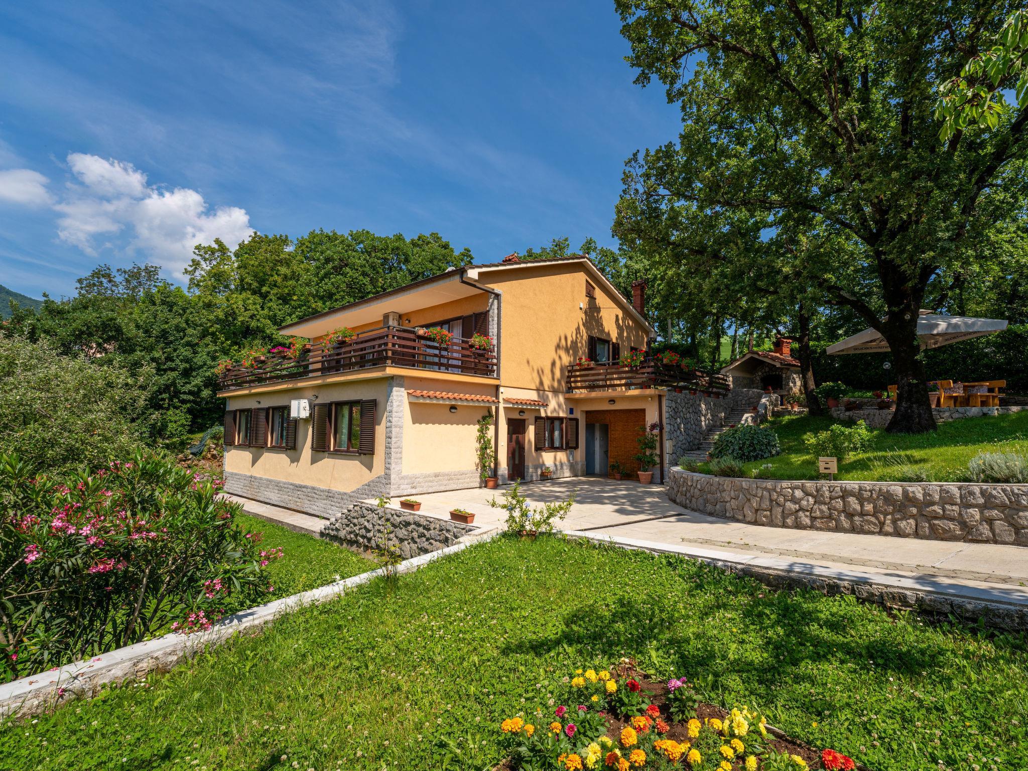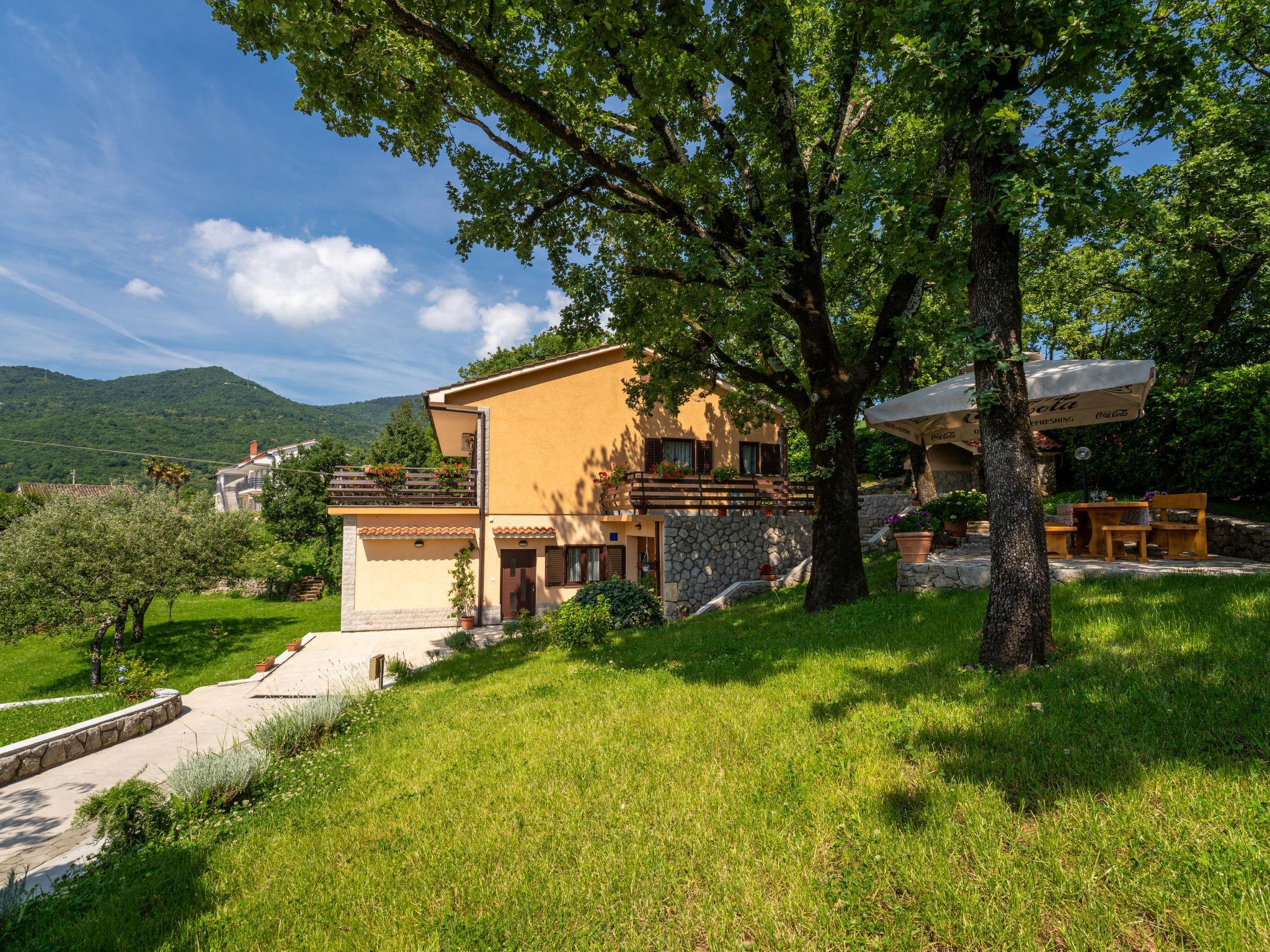Matulji: Zweifamilienhaus "Marijo". 900 m vom Zentrum von Matulji, 3.5 km vom Zentrum von Opatija, ruhige, sonnige Lage, 3.5 km vom Meer, 3.5 km vom Strand, in einer Sackgasse, im Grünen. Zur Mitbenutzung: Grundstück 1'200 m2, Garten mit Rasen 100 m2, Bäumen. Gartenmöbel, Grill. Im Hause: Internetzugang. Parkplatz beim Haus auf dem Grundstück. Supermarkt 550 m, Restaurant 1 km, Bushaltestelle 650 m, Kieselstrand 3.5 km, Strandbad 3.5 km, betonierter Strand 3.5 km.