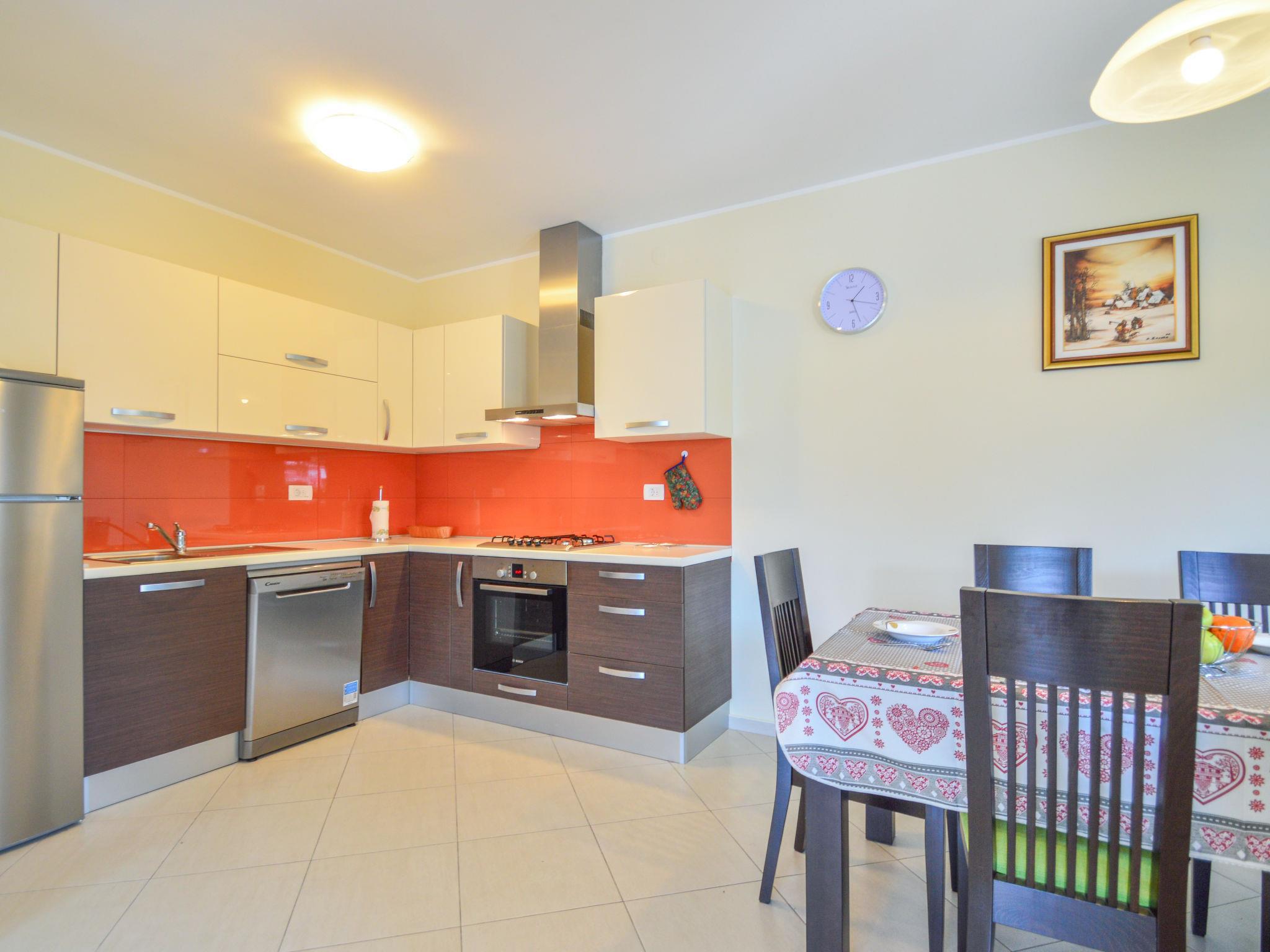 3-Zimmer-Wohnung 97 m2, im Erdgeschoss, Südostlage. Wohn-/Esszimmer 30 m2 mit 1 Diwanbett (125 cm, Länge 180 cm), Sat-TV (Flachbildschirm), Klimaanlage. 1 Zimmer mit 1 franz. Bett (160 cm, Länge 200 cm). 1 Zimmer mit 1 franz. Bett (180 cm, Länge 200 cm). Offene Küche (4 Kochplatten, Backofen, Geschirrspüler, Tiefkühler, elektrische Kaffeemaschine). Dusche/WC, Dusche/Bidet/WC. Keine Heizmöglichkeit. Zur Verfügung: Waschmaschine, Babybett. Internet (Wireless LAN, gratis).