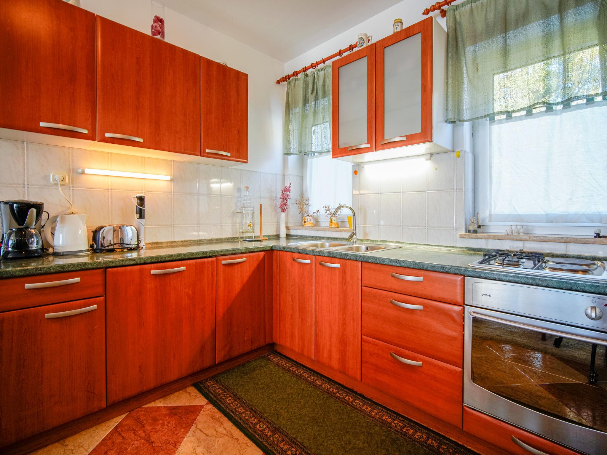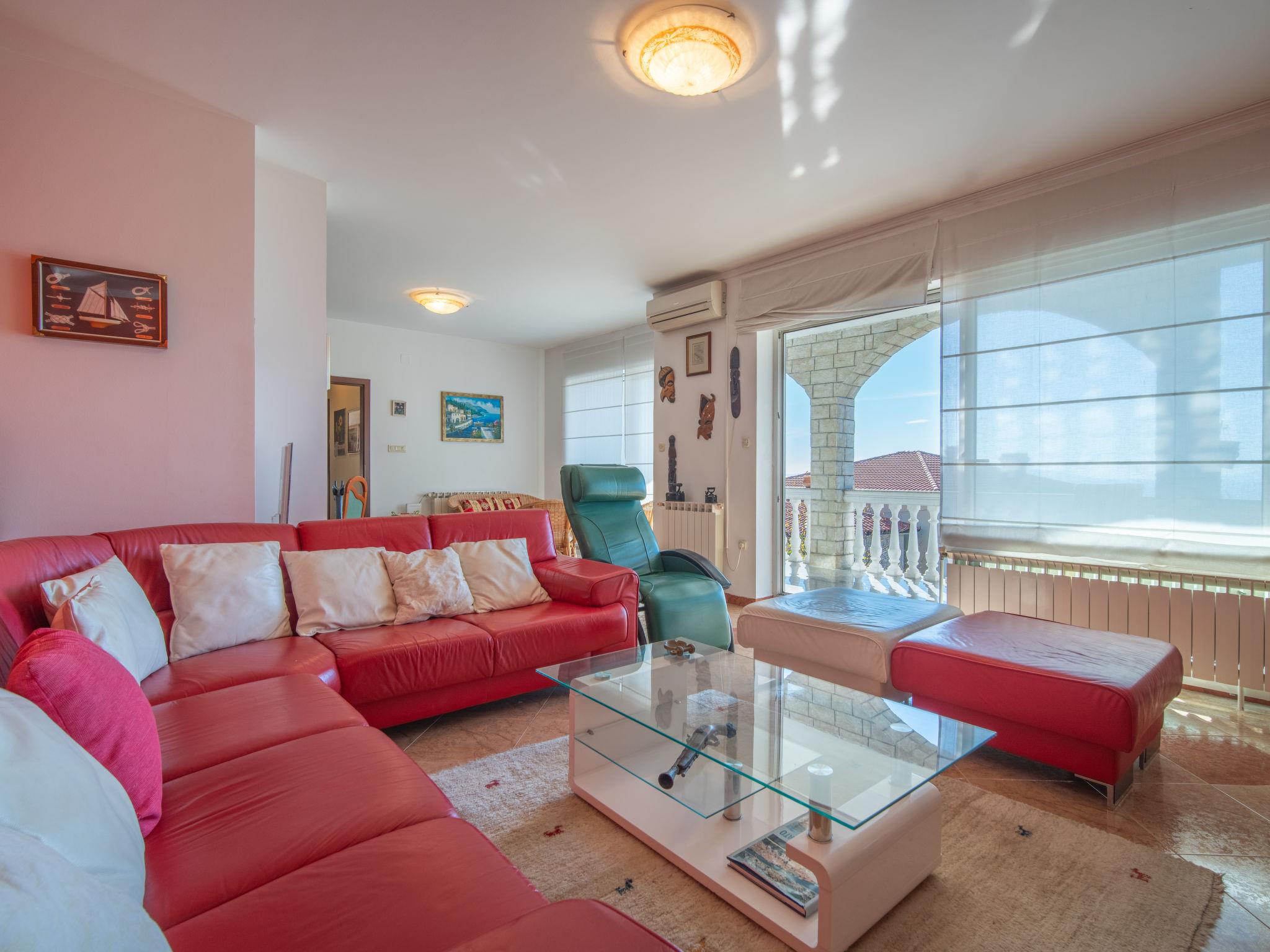 "Sea View 1", 5-Zimmer-Wohnung 135 m2 im 1. Stock. Geräumig, komfortabel eingerichtet: Wohn-/Esszimmer mit Sat-TV und Klimaanlage. Ausgang zum Balkon. 4 Zimmer, jedes Zimmer mit 4 franz. Betten (180 cm, Länge 200 cm) mit Dusche/WC. Offene Küche (Backofen, Geschirrspüler, 4 Glaskeramikplatten, Toaster, Wasserkocher, Tiefkühler, elektrische Kaffeemaschine). Bad/Bidet/WC, Doppelwaschbecken. Keine Heizmöglichkeit. Balkonmöbel, Loggia. Schöne Sicht auf das Meer. Zur Verfügung: Waschmaschine. Internet (WLAN). Parkplatz (2 Autos). Bitte beachten: Feuerlöscher.