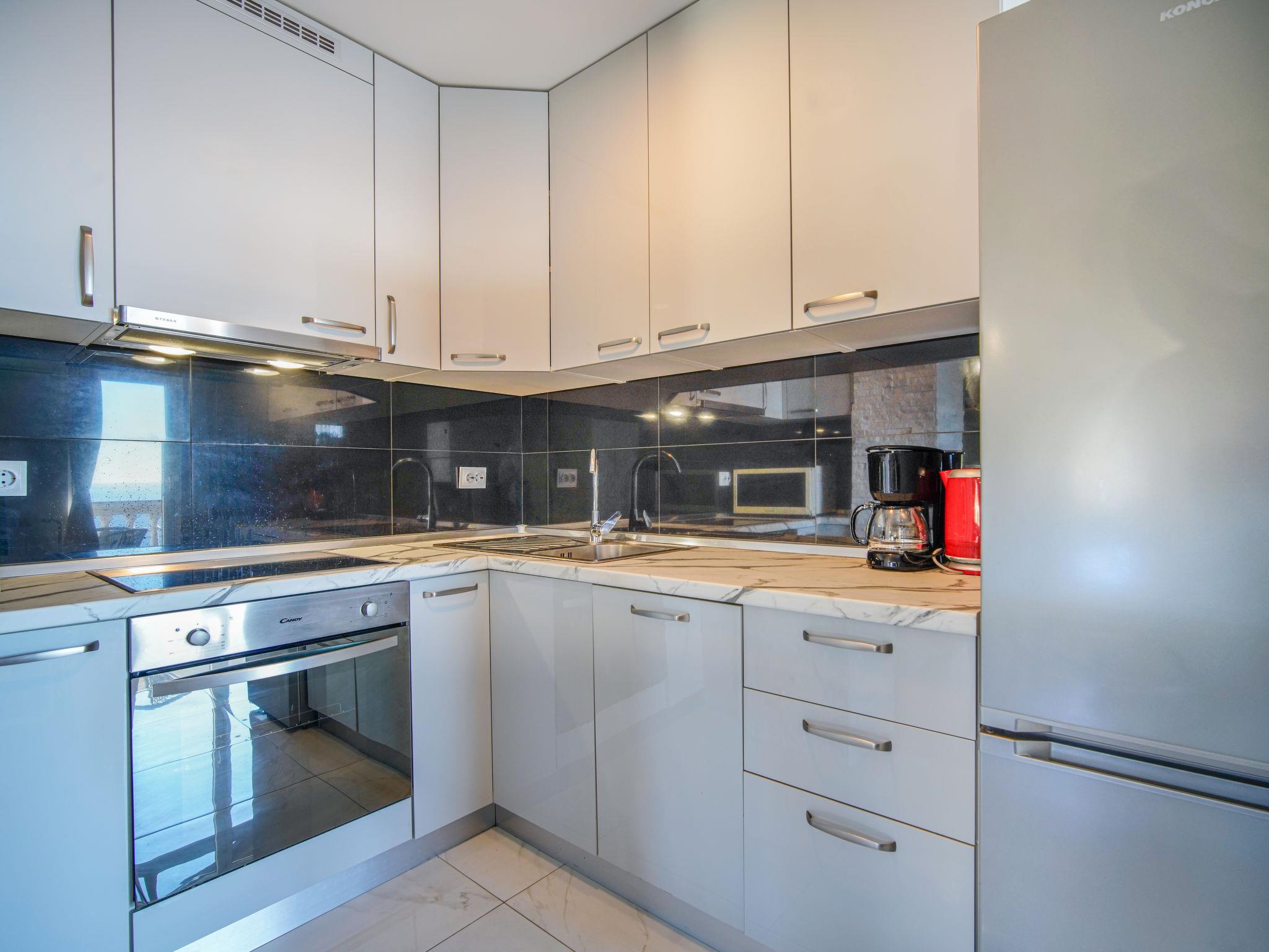 "Sea View 3", 3-Zimmer-Wohnung 84 m2 im 3. Stock. Abgeschrägt: abgeschrägtes Wohn-/Esszimmer mit Sat-TV und Klimaanlage. 1 abgeschrägtes Zimmer, Deckenhöhe 120 - 220 cm mit 1 franz. Bett (180 cm, Länge 200 cm). 1 abgeschrägtes Zimmer mit 1 franz. Bett (140 cm, Länge 200 cm). Offene Küche (Backofen, Geschirrspüler, 4 Glaskeramikplatten, Toaster, Wasserkocher, Tiefkühler, elektrische Kaffeemaschine). Ausgang zur Loggia. Dusche/Bidet/WC. Keine Heizmöglichkeit. Die maximale Deckenhöhe im Badezimmer ist 1,85 m.