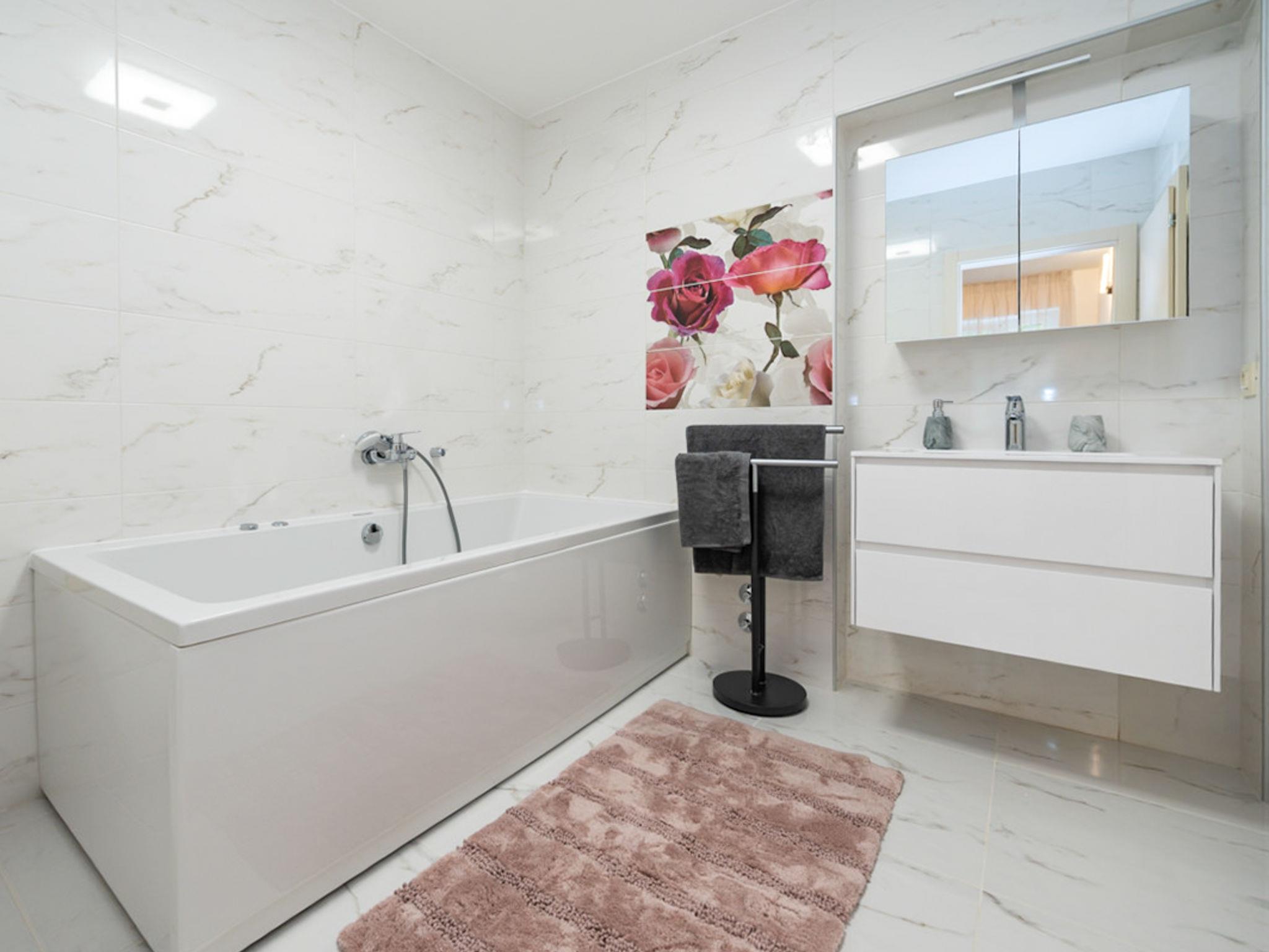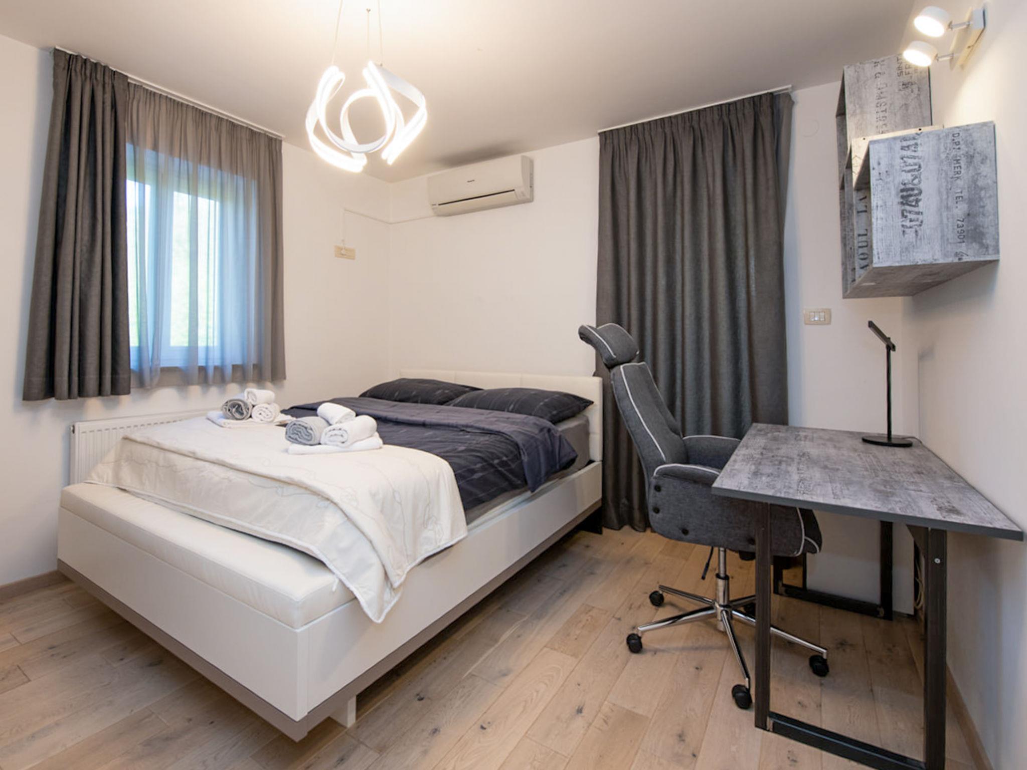 3-Zimmer-Wohnung 150 m2 auf 2 Stockwerken. Modern eingerichtet: grosses Wohnzimmer mit offenem Kamin, Kabel-TV und Klimaanlage. Ausgang zur Terrasse. Grosse, offene Küche (Backofen, Geschirrspüler, 4 Induktionskochplatten, Toaster, Wasserkocher, Mikrowelle, Tiefkühler, elektrische Kaffeemaschine) mit Esstisch, Klimaanlage. Ausgang zur Terrasse. Sep. WC. E-Heizung, Klimaanlage. Obergeschoss: 1 Zimmer mit 1 franz. Bett (200 cm, Länge 220 cm), sep. WC und Sprudelbad (privat) Sat-TV (Flachbildschirm), Klimaanlage. Ausgang zum Balkon. 1 Zimmer mit 1 franz. Bett (160 cm, Länge 200 cm), Bad/WC (privat) Sat-TV (Flachbildschirm), Klimaanlage. Balkon 7 m2, Balkon 15 m2, Terrasse 40 m2, überdacht. Terrassenmöbel, Balkonmöbel, Liegestühle (4). Sicht auf die Landschaft. Zur Verfügung: Haartrockner. Internet (WLAN, gratis). Parkplatz (1 Auto), Garage (1 Auto). Bitte beachten: Nichtraucher-Unterkunft.