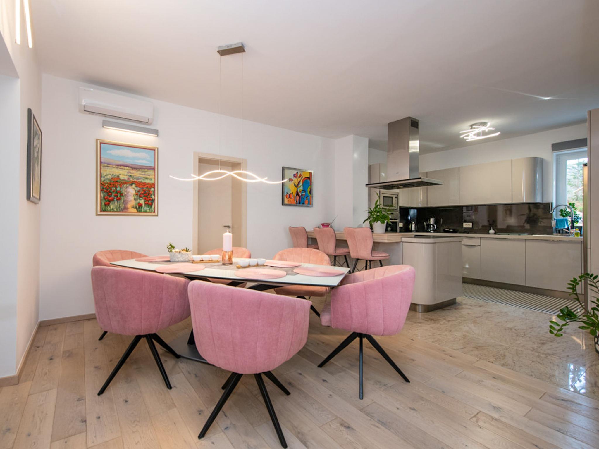 Mihelici 6 km von Opatija: Mehrfamilienhaus "Mihaela". Im Weiler Mihelici, 3.5 km vom Zentrum von Matulji, 5.5 km vom Zentrum von Opatija, ruhige, sonnige, erhöhte Lage im Villenviertel, 5.5 km vom Meer. Zur Mitbenutzung: Grundstück 900 m2 (eingezäunt) mit Rasen und Pflanzen, Schwimmbad eckig (8 x 4 m, 160 cm tief, saisonale Verfügbarkeit: 01.Jun. - 15.Okt.) mit Innentreppe. Aussendusche. Zur Alleinbenutzung: Terrasse (50 m2), Gartenmöbel. Im Hause: Internetzugang, Zentralheizung, Klimaanlage. Parkplatz (für 4 Autos) beim Haus auf dem Grundstück. Einkaufsgeschäft 800 m, Supermarkt 3 km, Restaurant 800 m, Bar 750 m, Bushaltestelle 700 m, Kieselstrand 5.5 km, betonierter Strand 5.5 km. Jugendgruppen nur auf Anfrage.