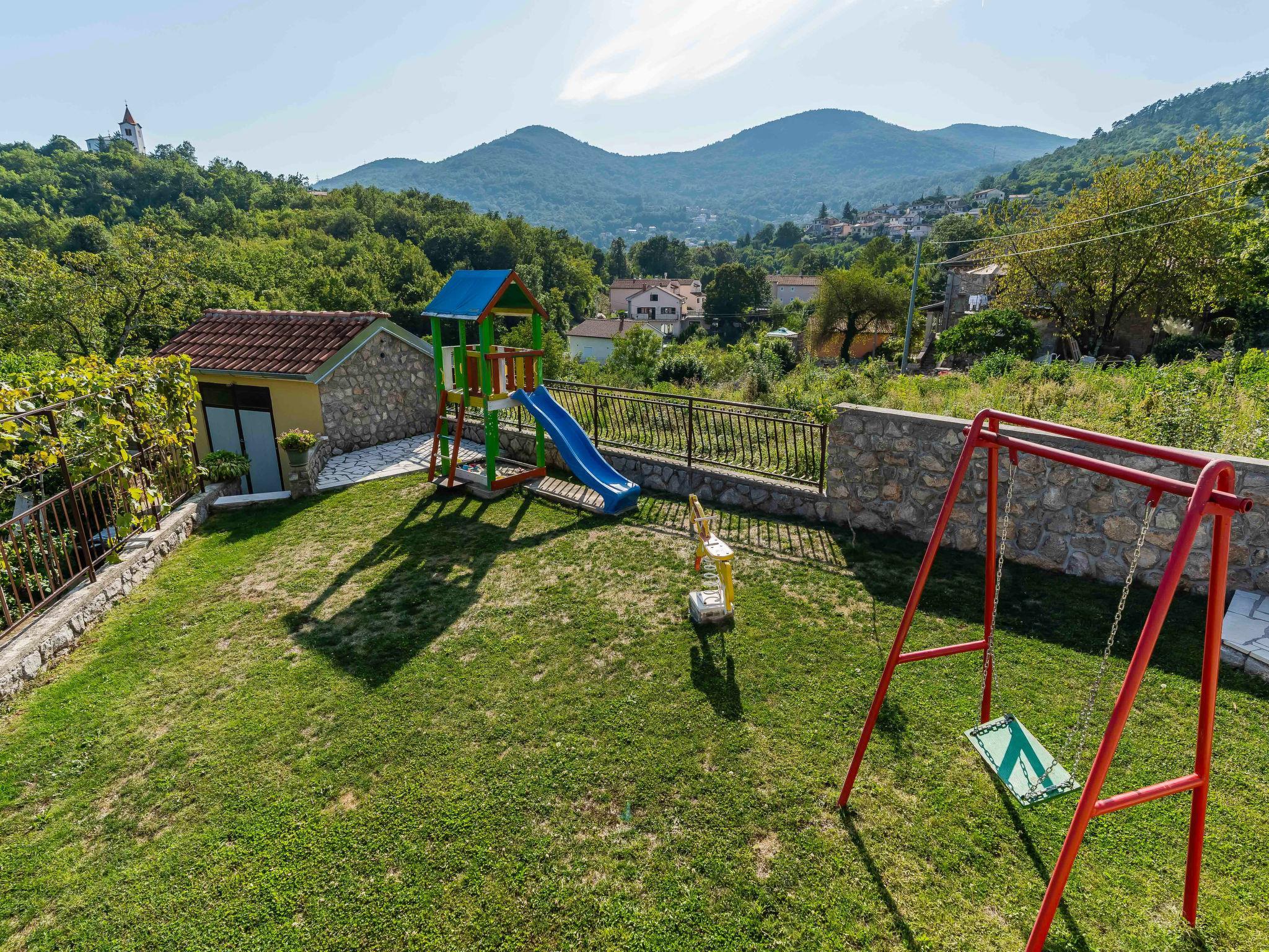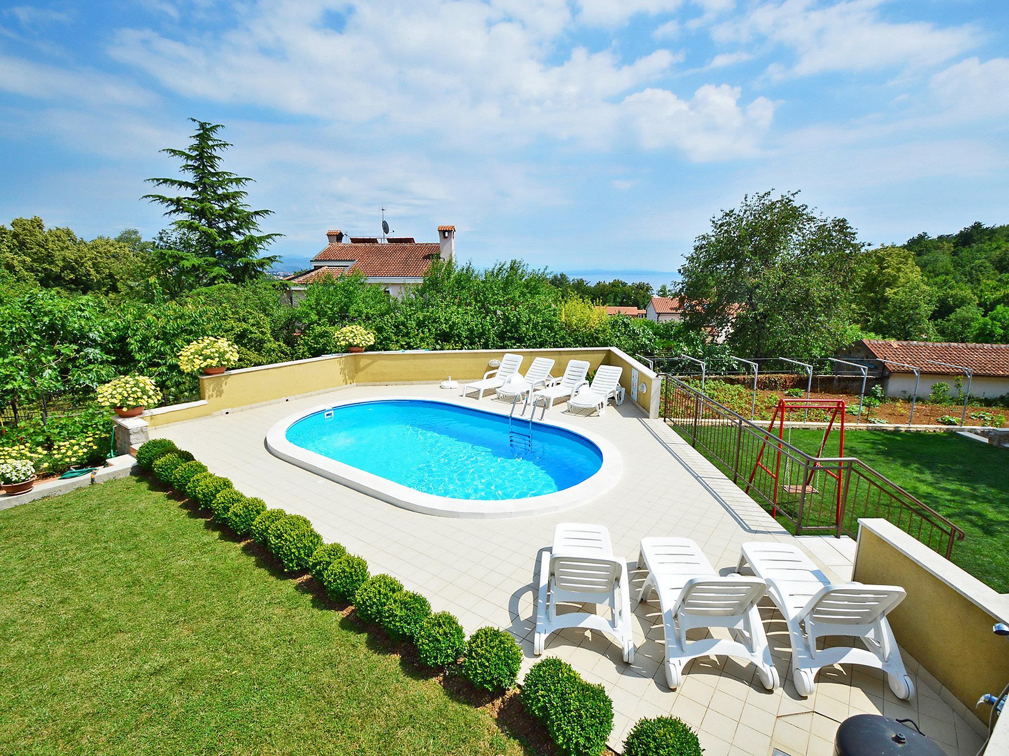Mihelici 5 km von Opatija: Schönes Dreifamilienhaus "Kate". Oberhalb von Opatija, im Weiler Mihelici, 5 km vom Zentrum von Opatija, ruhige, sonnige Lage, 5 km vom Meer, 5 km vom Strand, an einer Strasse, im Grünen. Zur Mitbenutzung: Grundstück 1'400 m2, gepflegter Garten mit Rasen und Blumen, Schwimmbad (23 m2, 150 cm tief, saisonale Verfügbarkeit: 15.Mai. - 15.Sep.). Laube (26 m2), Gartenmöbel, Grill (Schaukel). Im Hause: Internetzugang, Trampolin. Parkplatz beim Haus auf dem Grundstück. Einkaufsgeschäft 2 km, Restaurant 300 m, Bushaltestelle 500 m, Kieselstrand 5 km, Strandbad 6 km, betonierter Strand 5 km. Tennis 1 km. Bitte beachten: Weitere Unterkünfte sind buchbar. Das Schwimmbad ist oval.