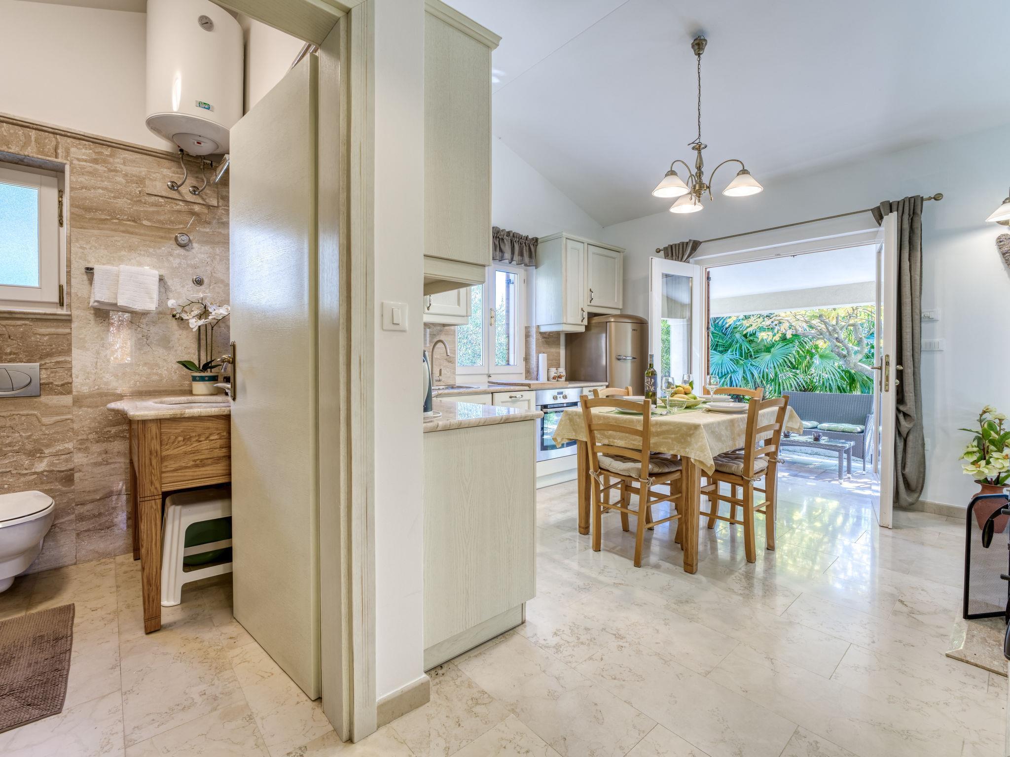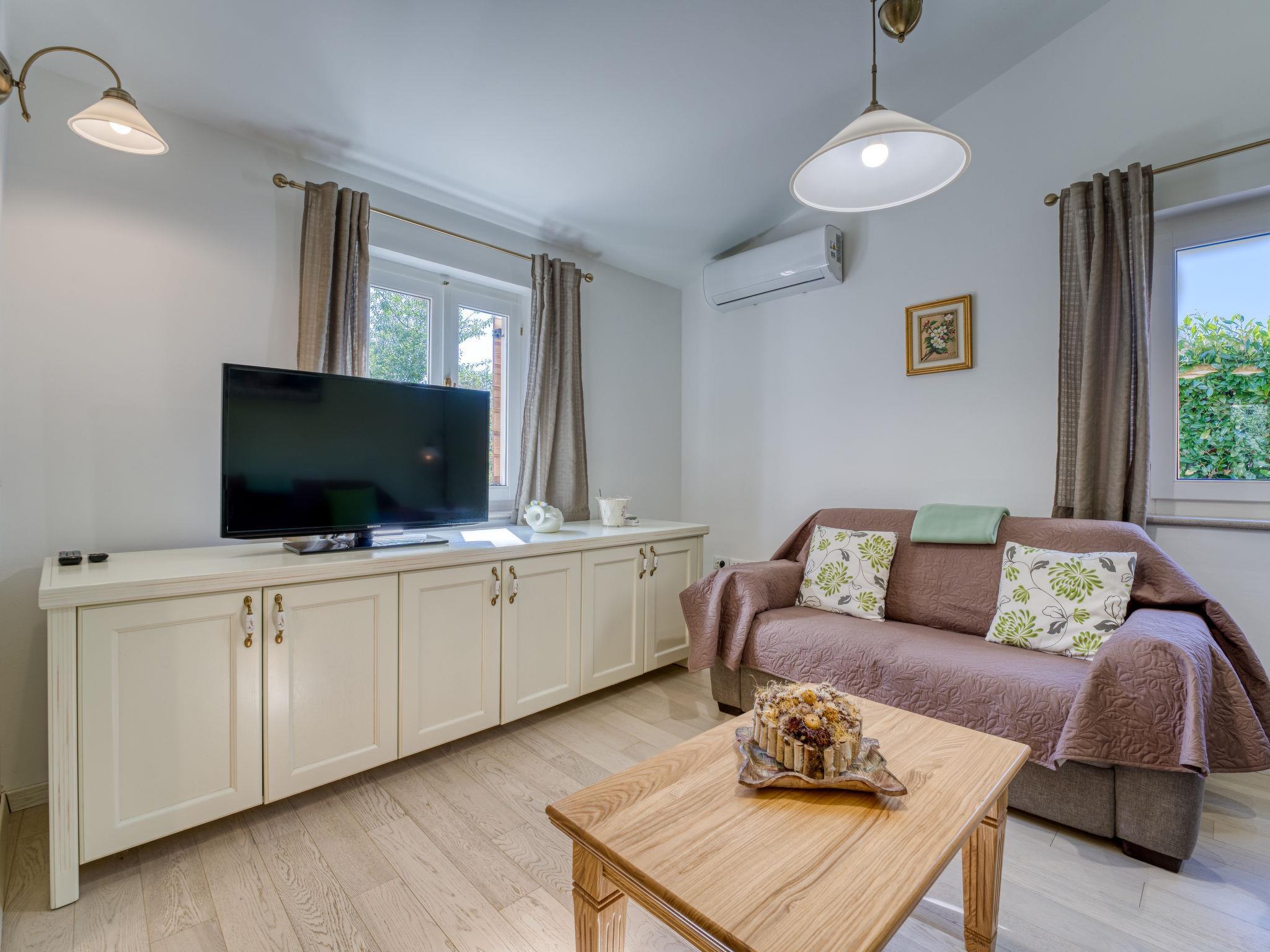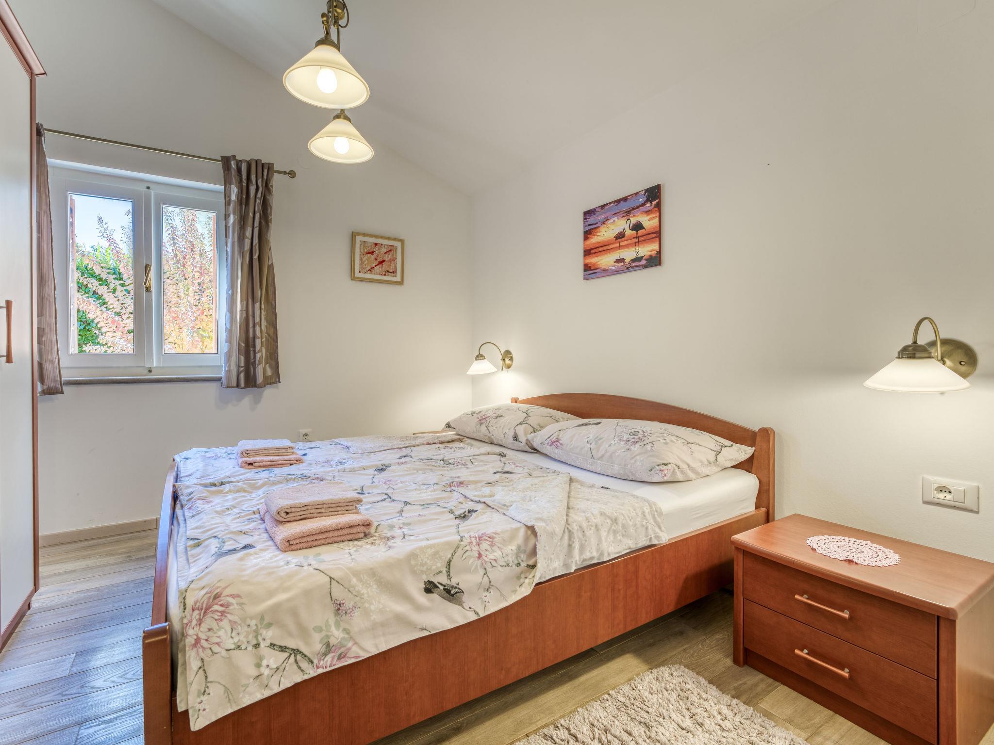 2-Zimmer-Haus 57 m2, Südostlage. Wohn-/Esszimmer mit 1 Doppeldiwanbett (160 cm, Länge 190 cm), Sat-TV (Flachbildschirm), Klimaanlage. Ausgang zur Terrasse. 1 Zimmer mit 1 franz. Bett (160 cm, Länge 200 cm). Offene Küche (4 Kochplatten, Backofen, Geschirrspüler, elektrische Kaffeemaschine). Dusche/WC. Heizung (extra). Terrasse 10 m2, überdacht, Rasen 30 m2. Terrassenmöbel, Liegestühle. Zur Verfügung: Waschmaschine. Internet (Wireless LAN, gratis). Traditionelle istrische Taverne, zur gemeinsamen Nutzung.