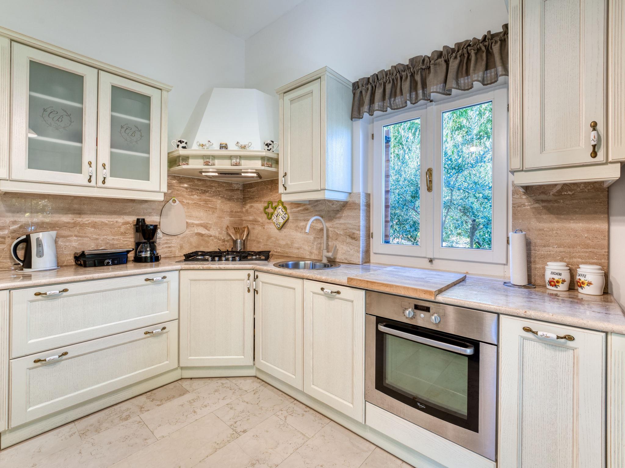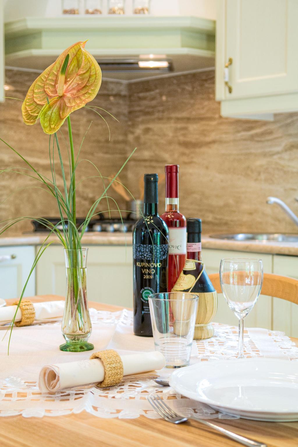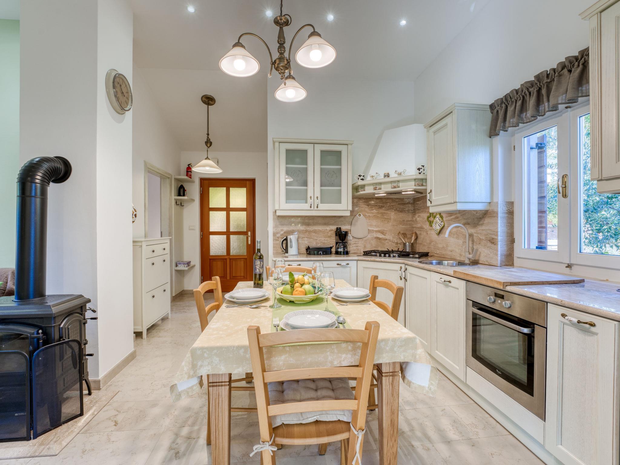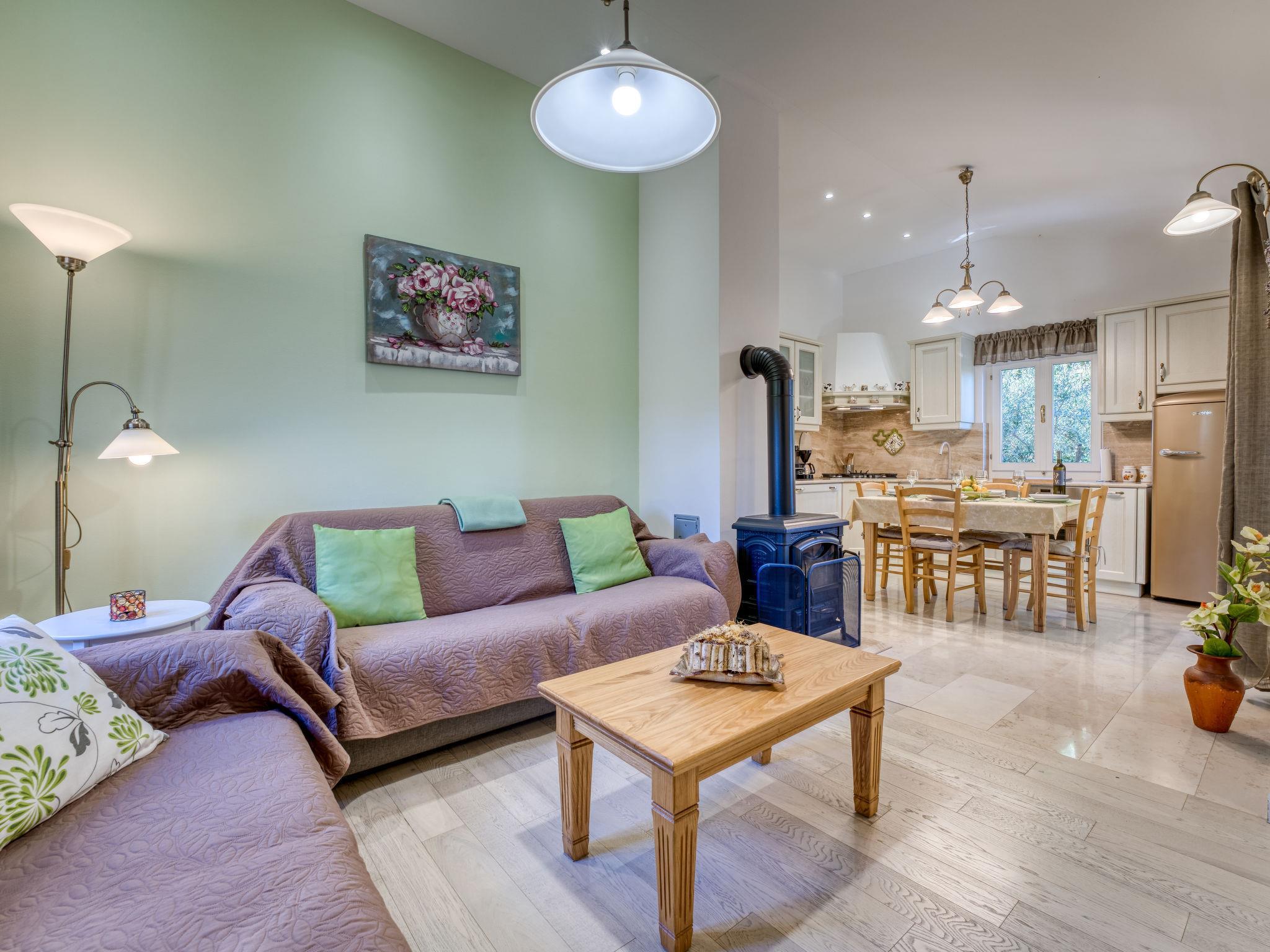 2-Zimmer-Haus 57 m2, Südostlage. Wohn-/Esszimmer mit 1 Doppeldiwanbett (160 cm, Länge 190 cm), Sat-TV (Flachbildschirm), Klimaanlage. Ausgang zur Terrasse. 1 Zimmer mit 1 franz. Bett (160 cm, Länge 200 cm). Offene Küche (4 Kochplatten, Backofen, Geschirrspüler, elektrische Kaffeemaschine). Dusche/WC. Heizung (extra). Terrasse 10 m2, überdacht, Rasen 30 m2. Terrassenmöbel, Liegestühle. Zur Verfügung: Waschmaschine. Internet (Wireless LAN, gratis). Traditionelle istrische Taverne, zur gemeinsamen Nutzung.