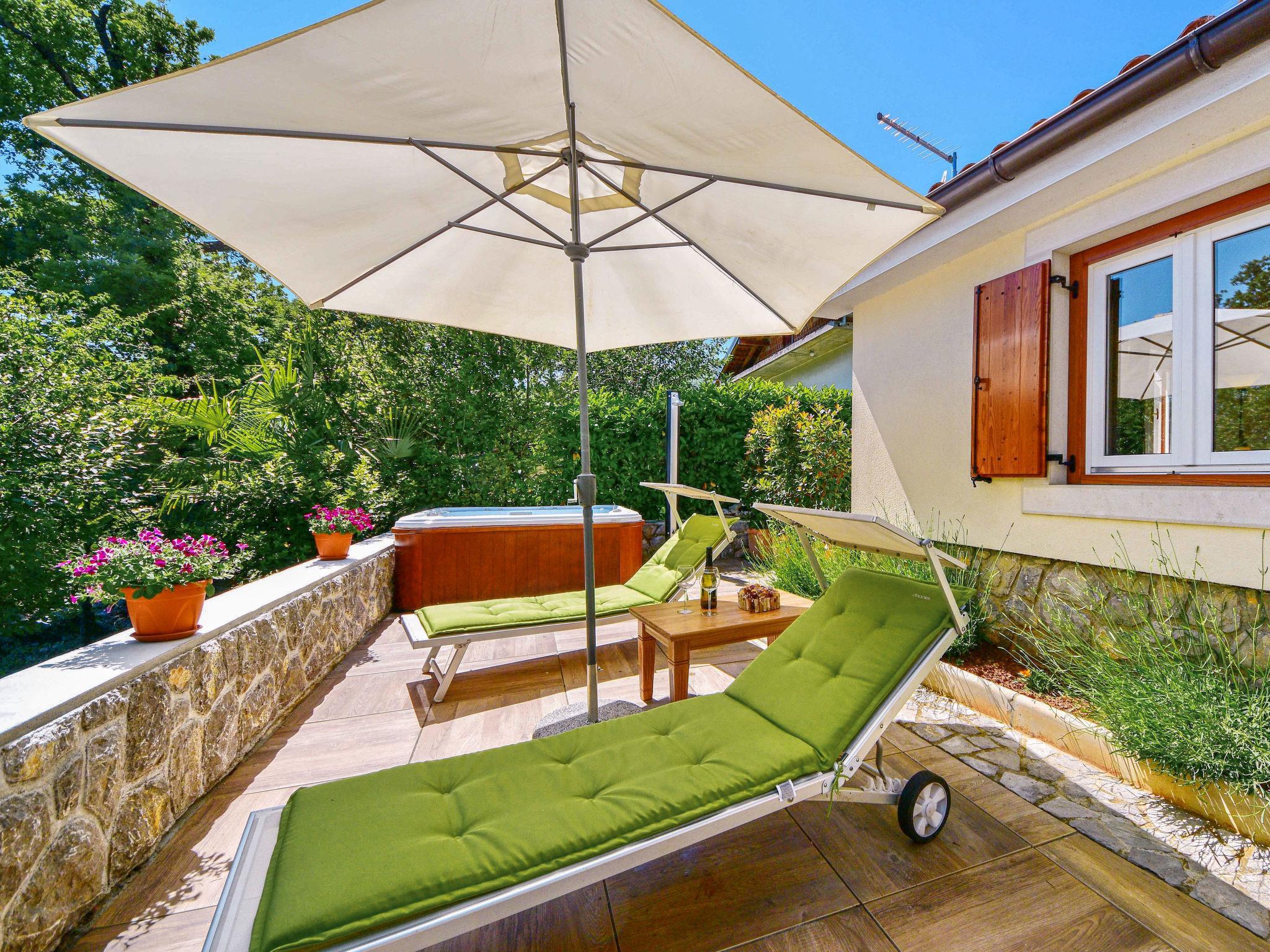 Pobri: Einfamilienhaus "Beni", Baujahr 2013. 2.5 km vom Zentrum von Opatija, 2.5 km vom Meer, 2.5 km vom Strand, im Grünen. Zur Mitbenutzung: Grundstück 850 m2. Gartenmöbel, Grill. Zur Alleinbenutzung: Sprudelbad. Im Hause: Internetzugang. Parkplatz beim Haus auf dem Grundstück. Einkaufsgeschäft 350 m, Supermarkt 1.8 km, Restaurant 500 m, Bushaltestelle 16 m, Kieselstrand 2.5 km, betonierter Strand 2.5 km.