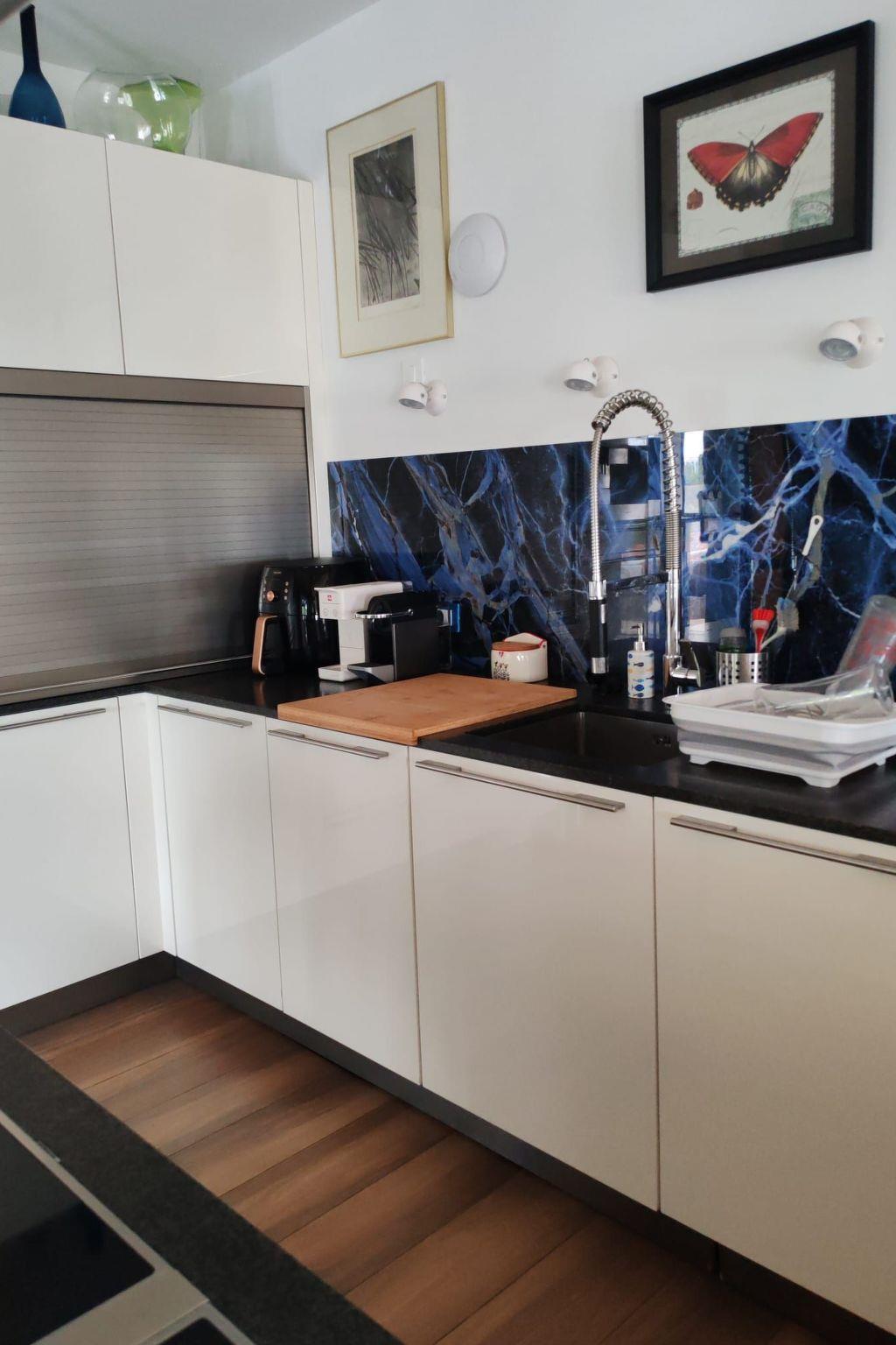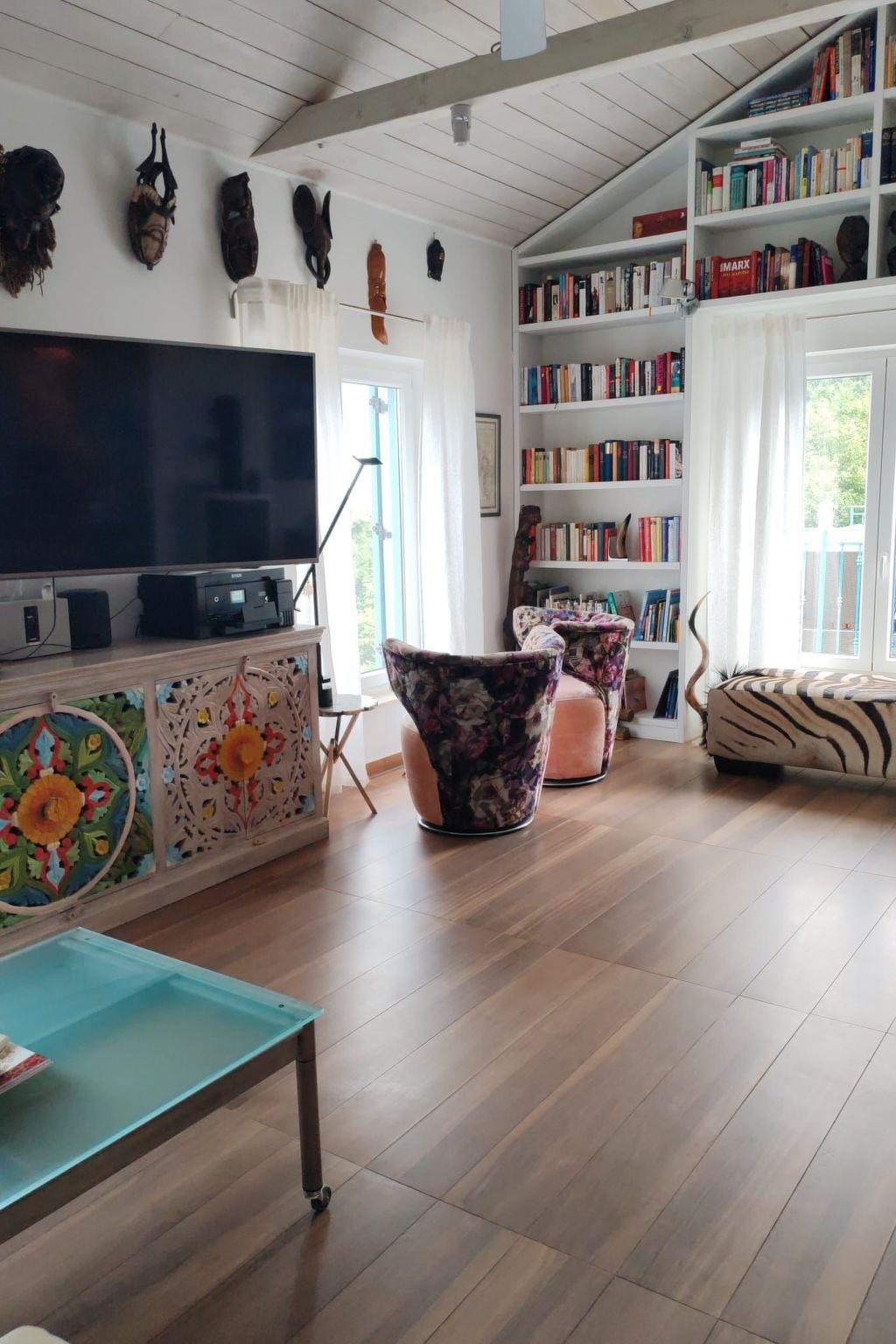 Im Inneren wartet das Haus mit einer durchdachten Ausstattung auf, die einen angenehmen Aufenthalt für alle verspricht. Die Klimaanlage sorgt überall für angenehme Temperaturen, während die Fußbodenheizung an kühleren Tagen für Wärme sorgt. Die Abende können gemütlich vor dem Kamin verbracht oder mit dem Smart-TV für Unterhaltung genutzt werden. Eine voll ausgestattete Küche mit Cerankochfeld, Kapsel-Kaffeemaschine, Spülmaschine und Wasserkocher unterstützt bei der Zubereitung von Mahlzeiten für die Familie oder Freunde.