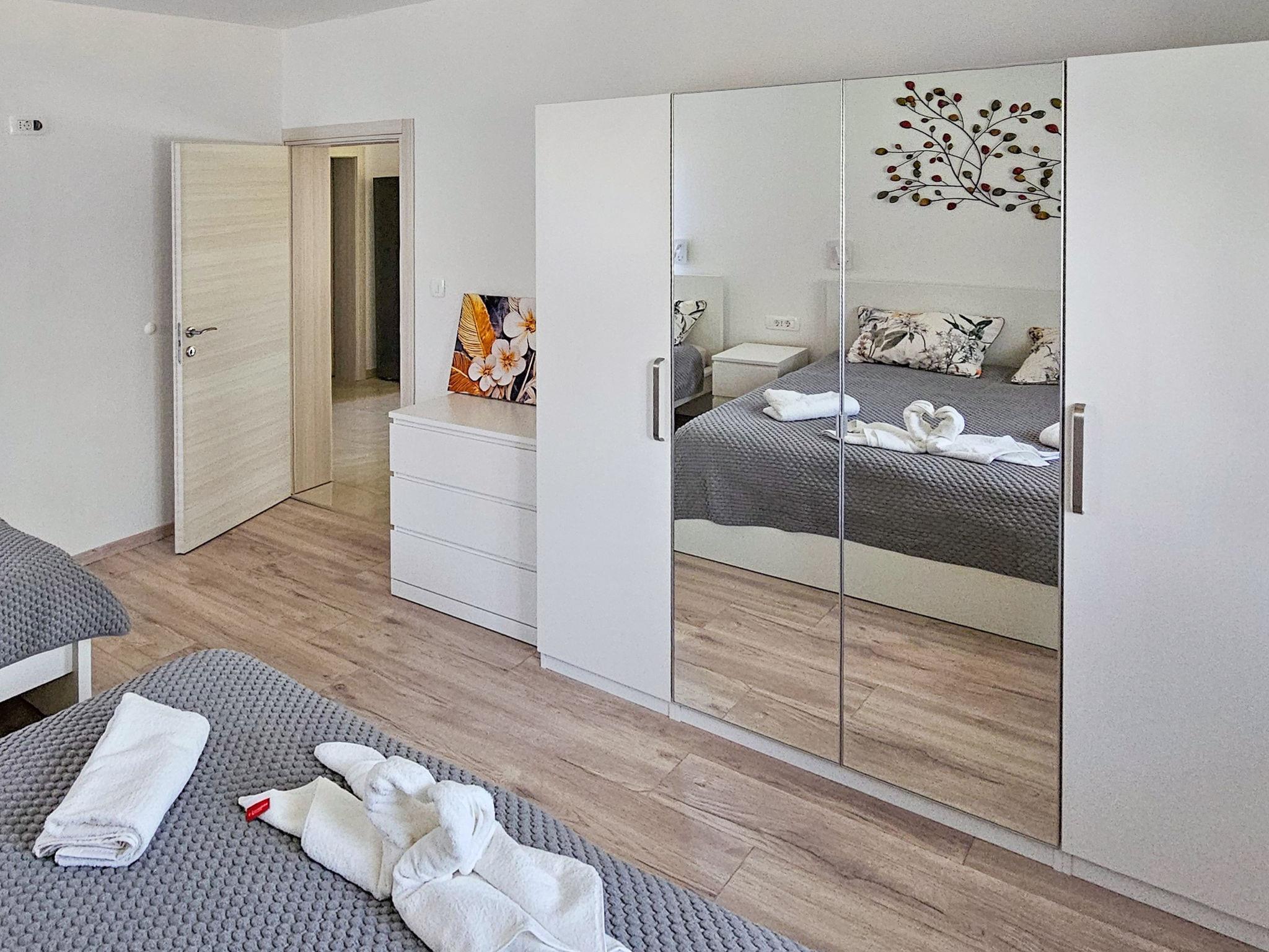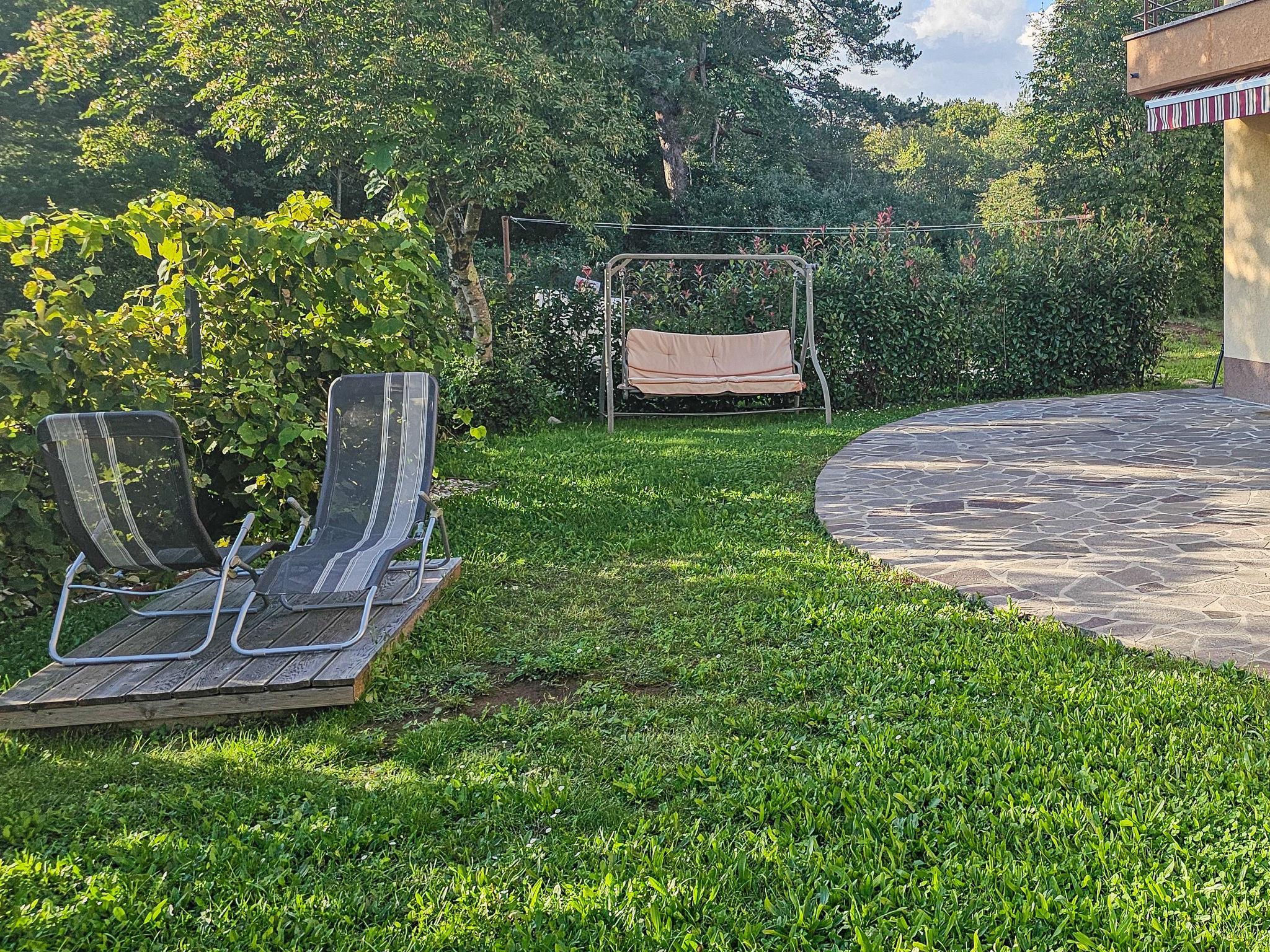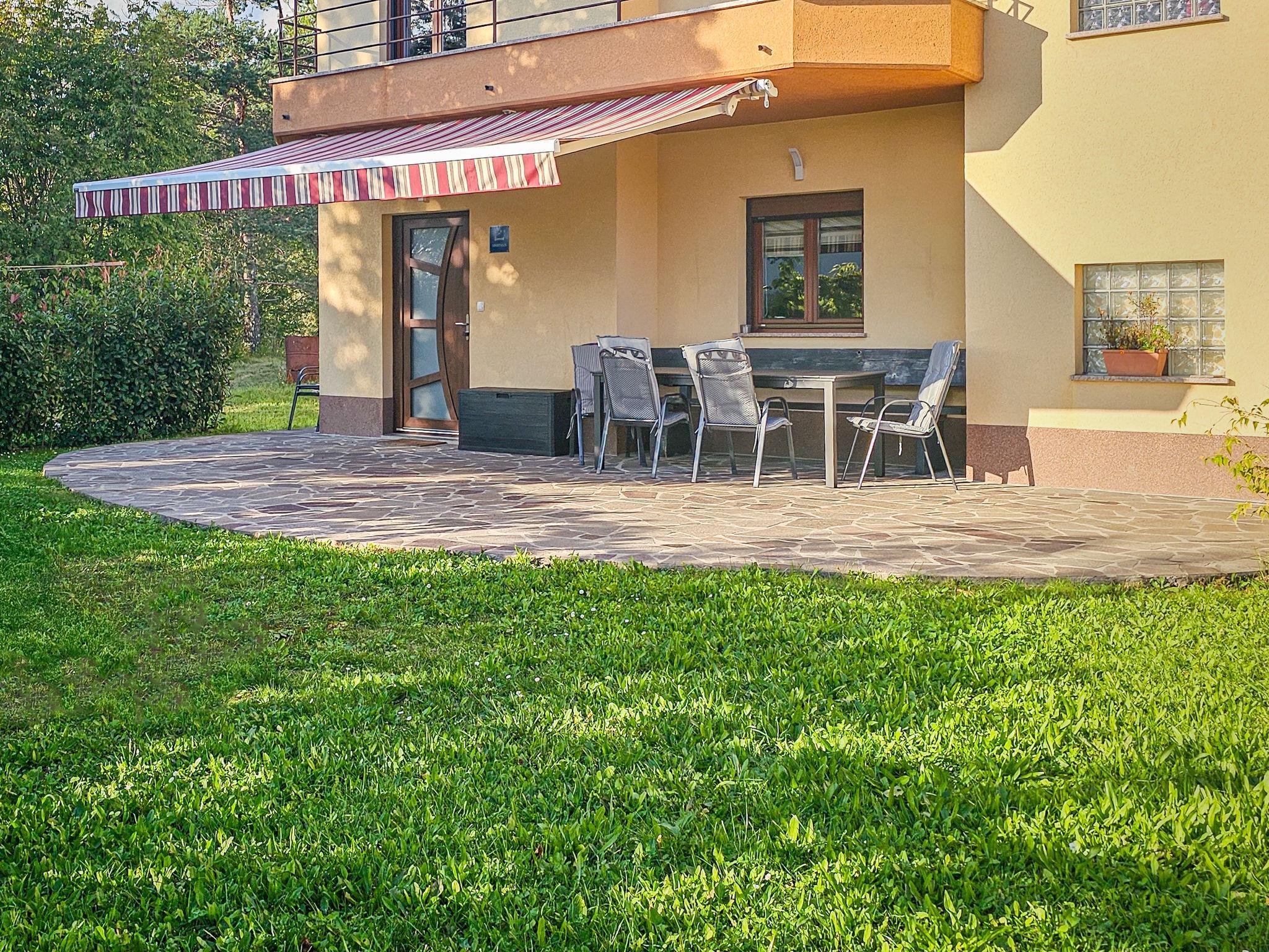 2-Zimmer-Wohnung 60 m2, im Erdgeschoss. Vollständig renoviert im Jahre 2025: Wohn-/Esszimmer mit 1 Diwanbett (120 cm, Länge 200 cm), Kabel-TV (Flachbildschirm), Klimaanlage. Ausgang zur Terrasse. 1 Zimmer mit 1 Bett (90 cm, Länge 200 cm), 1 Doppelbett (2 x 90 cm, Länge 190 cm). Offene Küche (1 Kochplatte, Backofen, Geschirrspüler, 3 Flammen, Wasserkocher, Mikrowelle, Tiefkühler). Dusche/WC. Warmluftheizung. Grosse Terrasse 70 m2 teilweise überdacht. Terrassenmöbel, Gartengrill (mobil), Liegestühle. Zur Verfügung: Safe, Haartrockner. Internet (WLAN, gratis). Maximal 1 Haustier/Hund erlaubt.