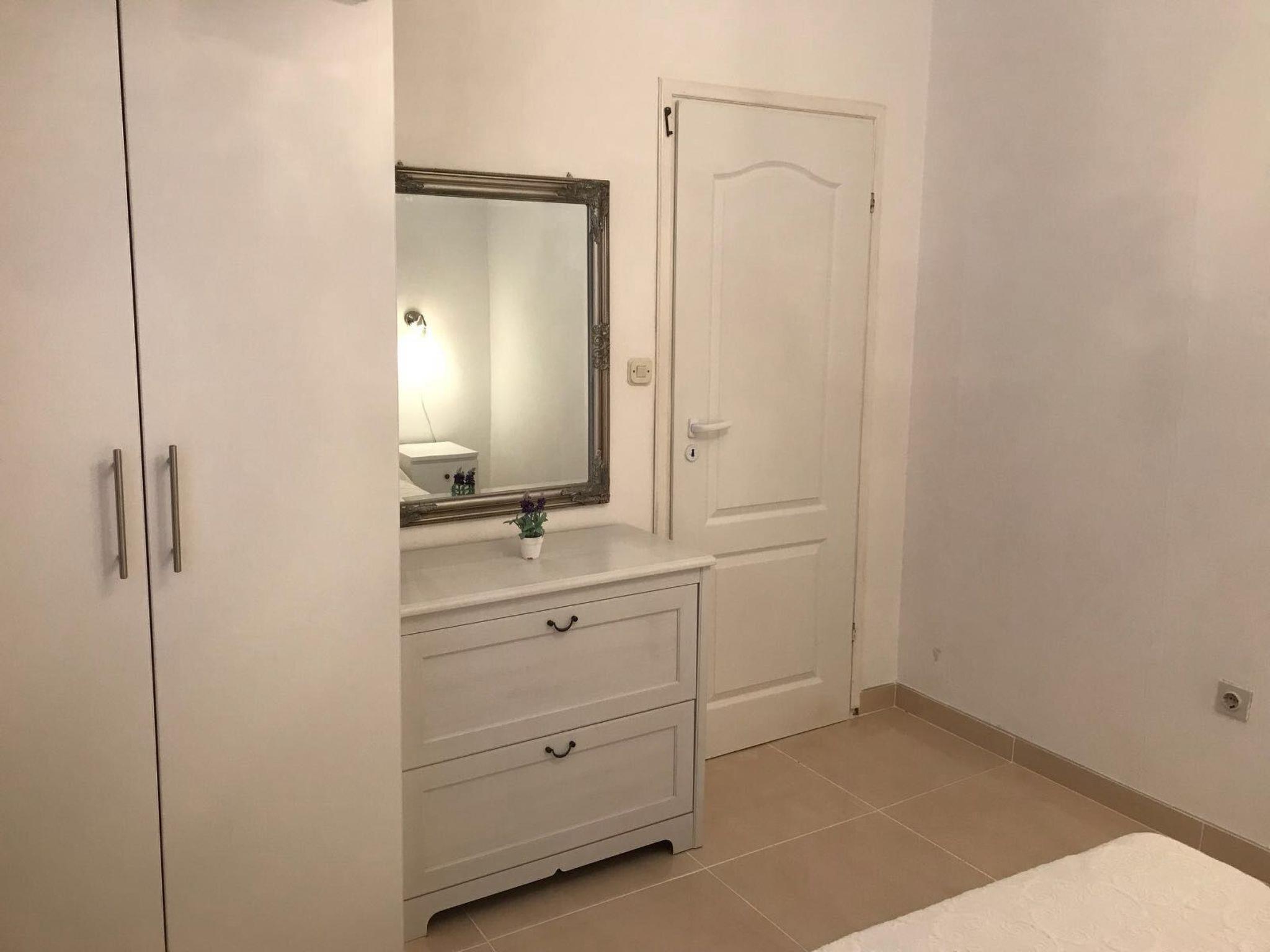 Innen bietet das Apartment ein einladendes Schlafzimmer mit einem gemütlichen 140x200 Bett, ideal für erholsame Nächte. Für gemeinsame Momente stehen Ihnen eine praktische Induktionsherd und eine Filter-Kaffeemaschine zur Verfügung, perfekt um entspannte Mahlzeiten zuzubereiten oder den Tag mit einer frischen Tasse Kaffee zu beginnen. Auch für Ihre Bequemlichkeit ausgestattet mit Klimaanlage, Wasserkocher und einer zur gemeinschaftlichen Nutzung vorgesehenen Waschmaschine im Gebäude.