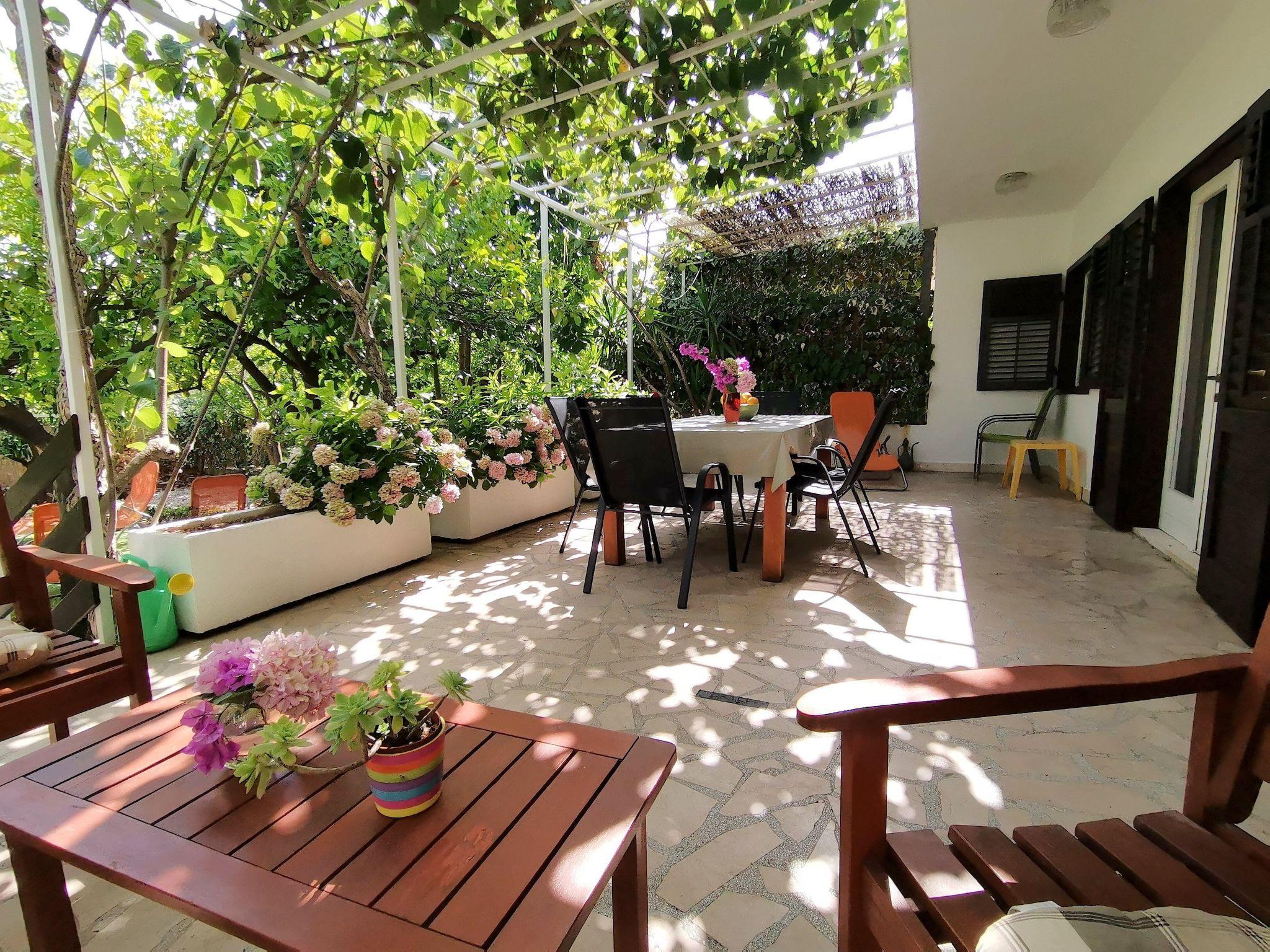 Außerdem verfügt es über zwei Terrassen mit insgesamt 60 qm Oberfläche und einen Garten mit 160 qm Oberfläche, in dem Zitronen und Olivenbäumen für Ruhe und eine Privatsphäre sorgen, dazu kommt noch ein offener Grillplatz im Garten. Vor dem Haus ist ein privater Parkplatz der genügend Platz bietet für drei Autos.