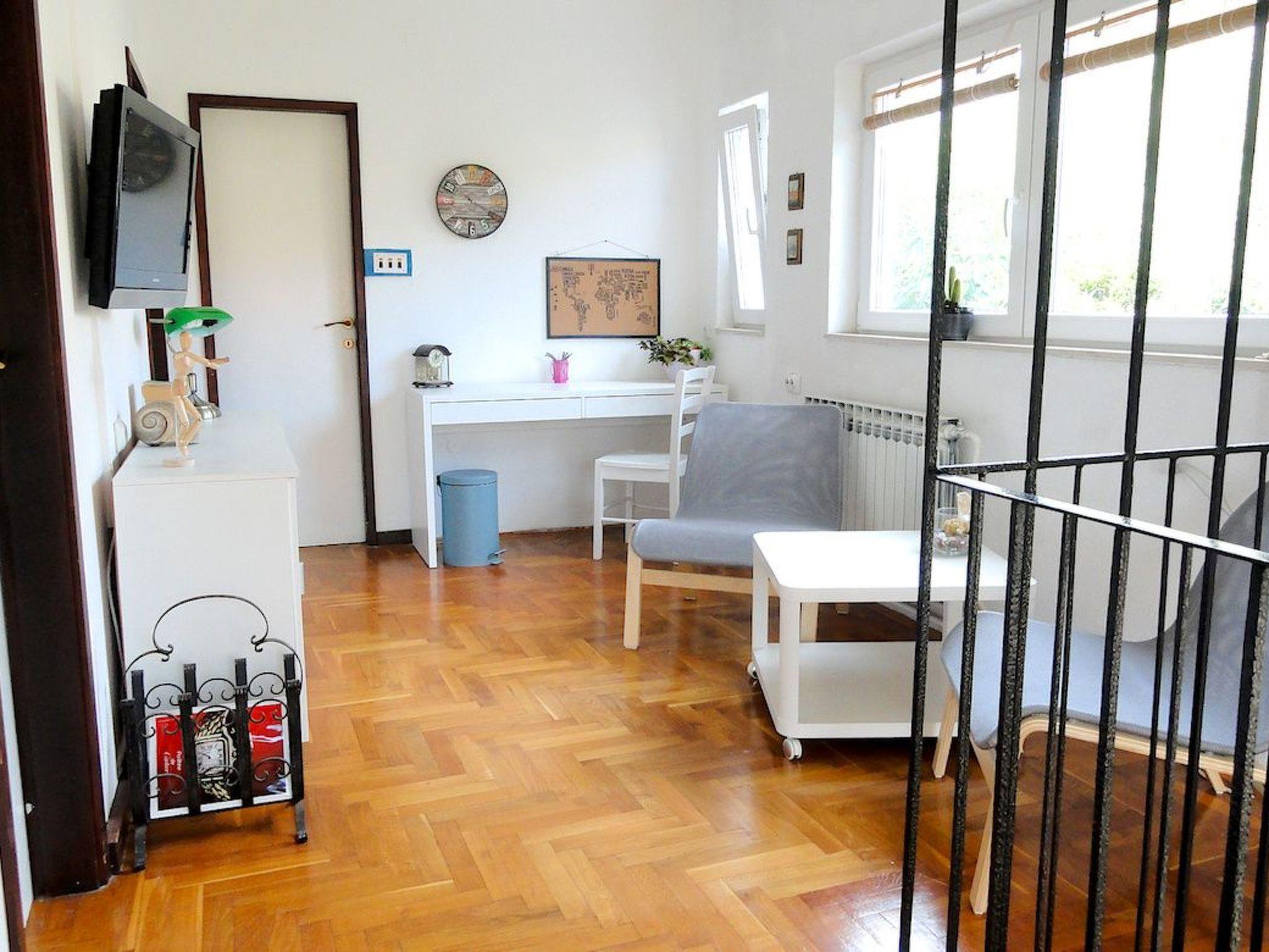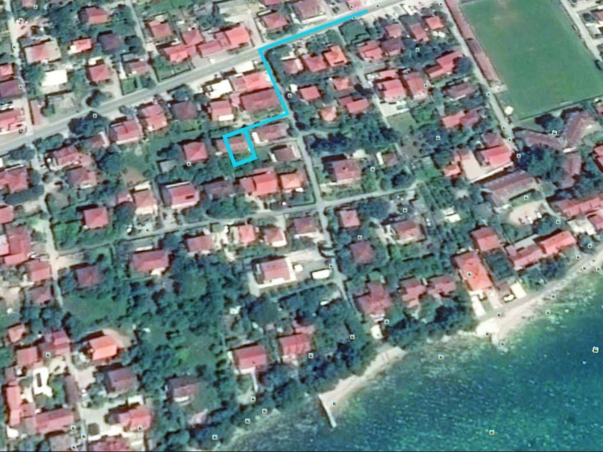 Das Ferienhaus befindet sich unterhalb der Hauptstraße in einer ruhigen und von Autos nicht befahrener Gegend, da die Straße zum Meer (ca. 100 Meter Entfernung) mit Treppen endet.