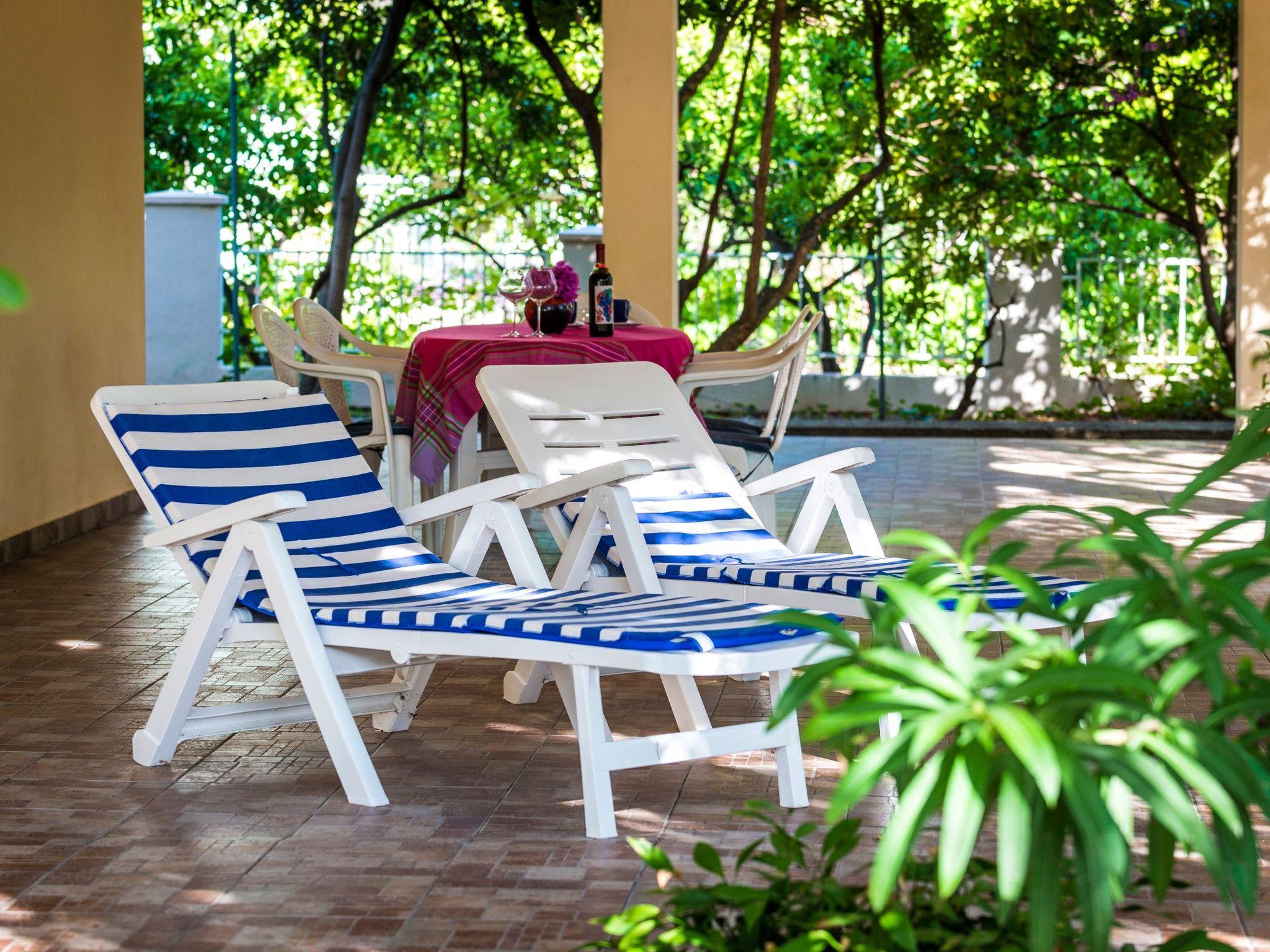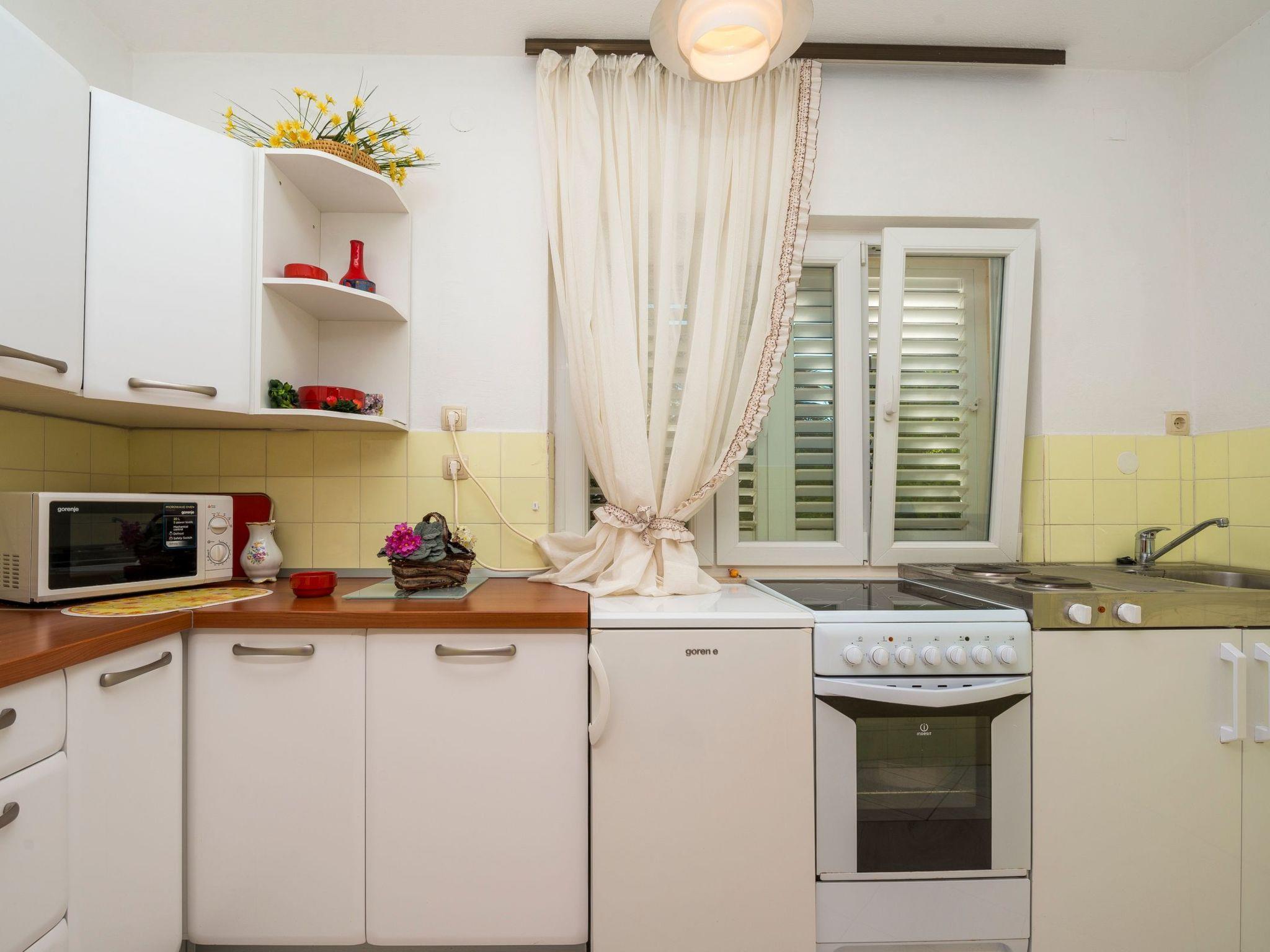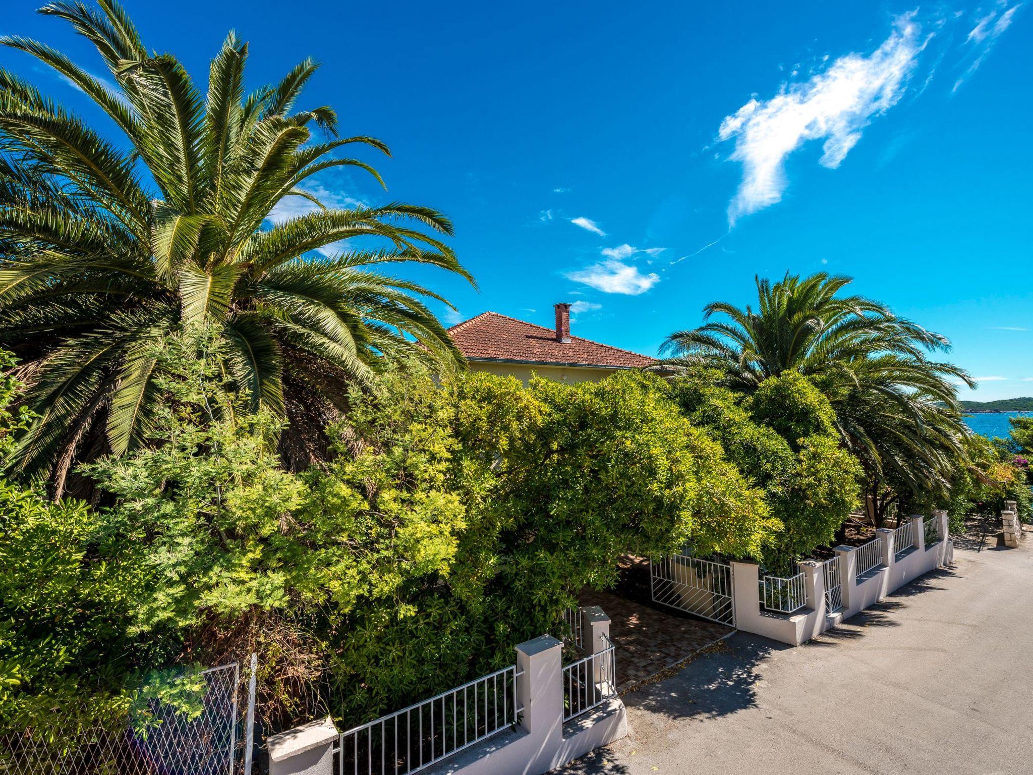 The outdoor area of the property is just as inviting, with 500 m2 of private, fenced grounds featuring trees and a natural garden. Just a stone'ist nur 30 Meter entfernt ein Kieselstrand für diejenigen, die gerne schwimmen oder sich sonnen, während der größte Sandstrand "Trstenica" nur 200 Meter entfernt ist. Dieser Strand erstreckt sich über 1000 Meter und bietet einen perfekten Ort für einen Tag in der Sonne. Zwei Parkplätze stehen zur Verfügung - einer in der Garage und einer vor der Garage - und die Gäste können direkt am Haus sicher parken.