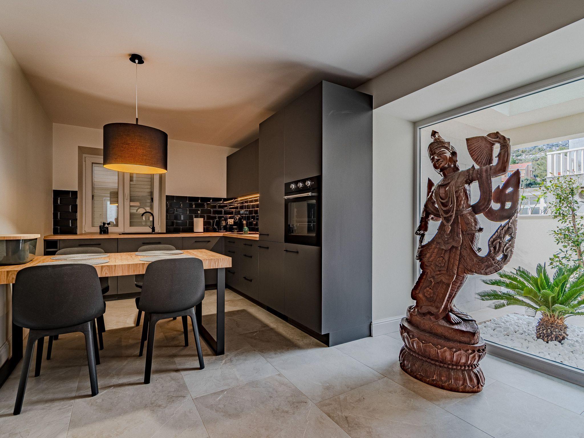Entdecken Sie den Charme der traditionellen kroatischen Architektur in unserem historischen Haus in Orebic, das direkt am Wasser liegt. Dieses Appartement befindet sich im Obergeschoss und verfügt über einen eigenen Balkon mit Grill und Whirlpool im Garten.