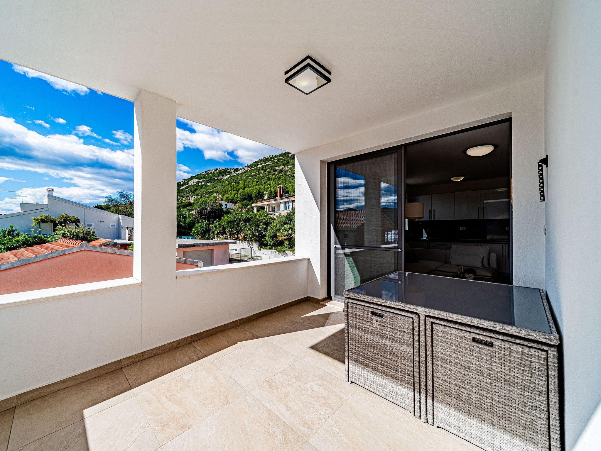 Ferienwohnung bietet Platz für 2 Gäste. Die Betten sind in Schlafzimmern, die es 1 gibt, innerhalb einer Gesamtfläche von 44m2, angeordnet. Die Gäste haben eine eigene Terrasse zur Verfügung, auf der sie in warmen Sommernächten genießen können. Das Apartment bietet Meerblick. Es ist erlaubt, Speisen auf dem Gemeinschafts-Grill vorzubereiten. IM PREIS INBEGRIFFEN: Kurtaxe, Endreinigung, Klimatisierung, Parkplatz, Internet, Wäschewaschen, Fahrrad, Bügeleisen, Bügelbrett, Föhn, tragbarer Grill. Die Verfügbarkeit zusätzlicher Dienstleistungen in Ihrem reservierten Termin und die Preise derselben (falls nicht aufgeführt) müssen im Voraus überprüft werden. Zusätzliche Dienstleistungen die in der Zahlungsaufforderung nicht aufgeführt sind werden direkt beim Vermieter bezahlt, angenommen der Gast nutzt auch diese. Ermäßigung auf den Grundpreis: Gratistag 14=13 (bei einem Aufenthalt von 14 Tagen oder mehr erhalten Sie einen Gratistag für den Aufenthalt bis 31.12.26).