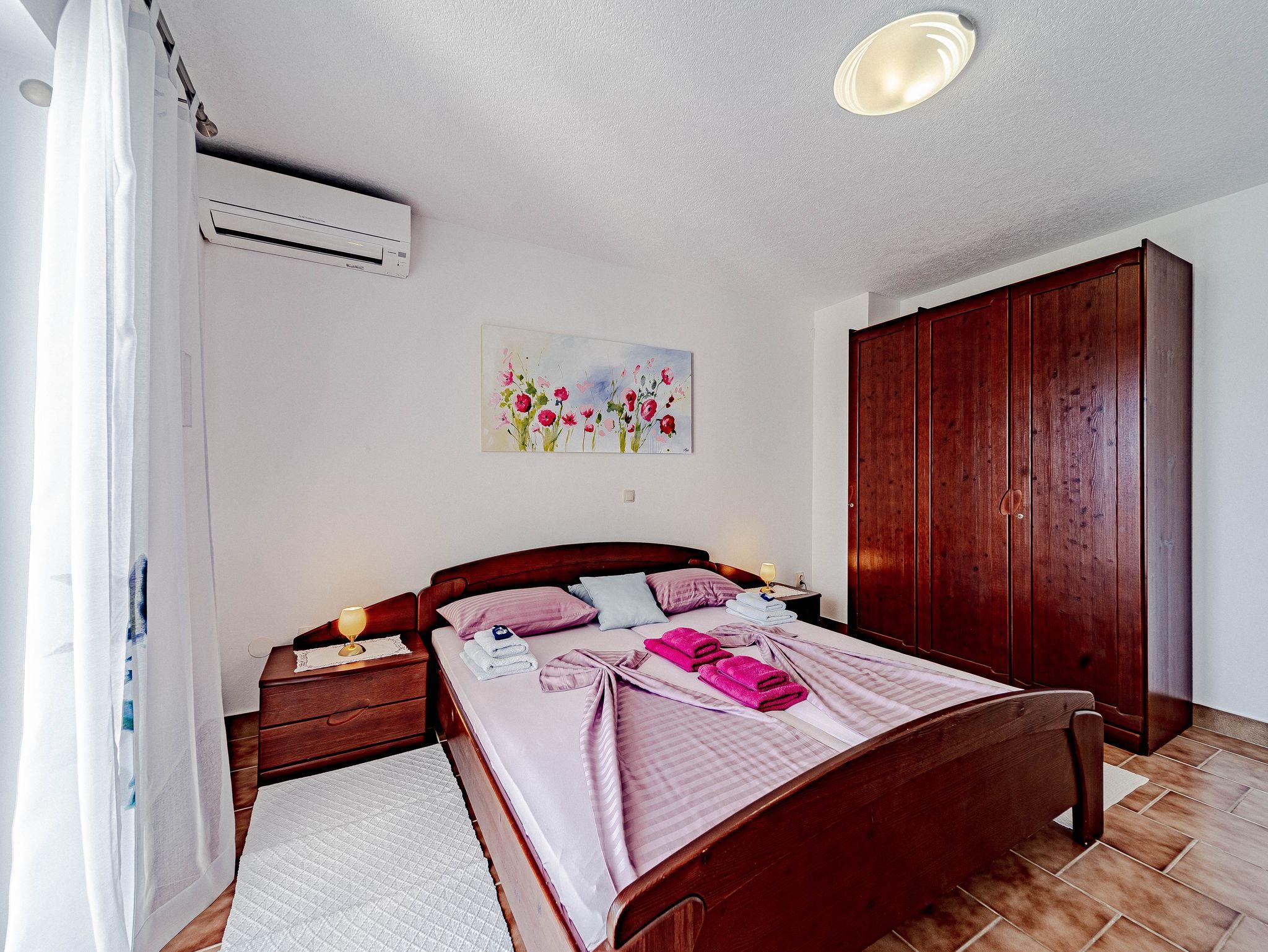 Ferienwohnung bietet Platz für 2 Gäste. Die Betten sind in Schlafzimmern, die es 1 gibt, innerhalb einer Gesamtfläche von 31m2, angeordnet. Die Gäste haben eine eigene Terrasse zur Verfügung, auf der sie in warmen Sommernächten genießen können. Das Apartment bietet Meerblick. Es ist erlaubt, Speisen auf dem Gemeinschafts-Grill vorzubereiten. IM PREIS INBEGRIFFEN: Kurtaxe, Endreinigung, Klimatisierung, Parkplatz, Internet, Bootsanlegeplatz, Kinderbett, Bügeleisen, Bügelbrett, Föhn, Sonnenschirm. Die Verfügbarkeit zusätzlicher Dienstleistungen in Ihrem reservierten Termin und die Preise derselben (falls nicht aufgeführt) müssen im Voraus überprüft werden. Zusätzliche Dienstleistungen die in der Zahlungsaufforderung nicht aufgeführt sind werden direkt beim Vermieter bezahlt, angenommen der Gast nutzt auch diese. Ermäßigung auf den Grundpreis: Gratistag 14=13 (bei einem Aufenthalt von 14 Tagen oder mehr erhalten Sie einen Gratistag für den Aufenthalt bis 31.12.26).