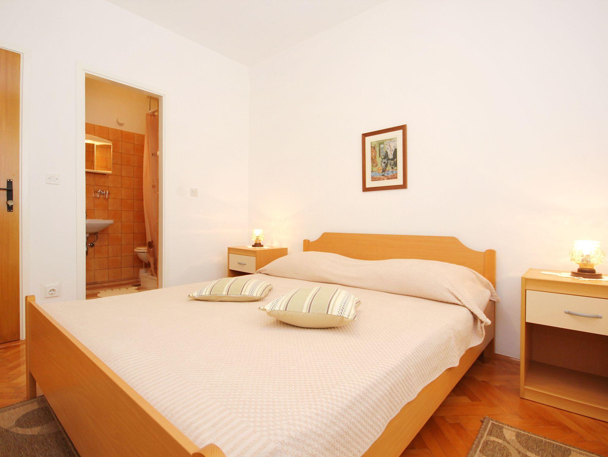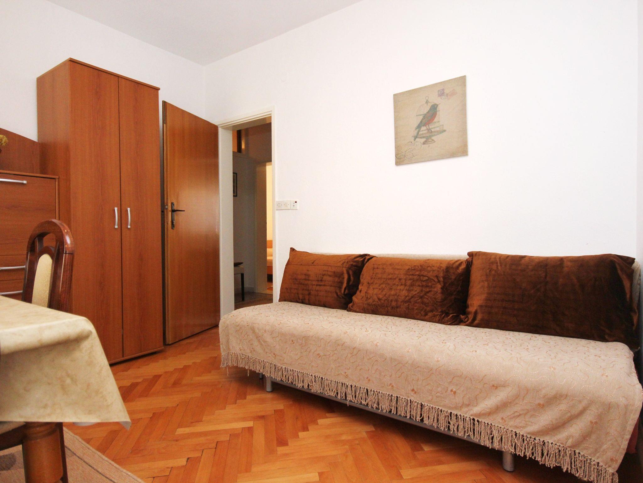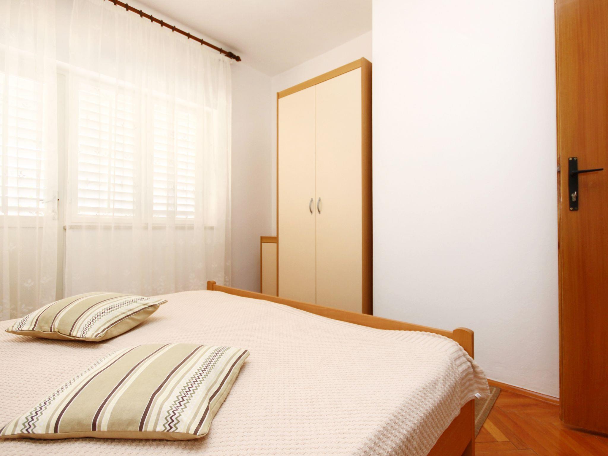 Ferienwohnung bietet Platz für 5 Gäste. Die Betten sind in Schlafzimmern, die es 2 gibt, und in Esszimmer, innerhalb einer Gesamtfläche von 48m2, angeordnet. Die Gäste haben eine eigene Terrasse zur Verfügung, auf der sie in warmen Sommernächten genießen können. Das Apartment bietet Meerblick. Es ist erlaubt, Speisen auf dem Gemeinschafts-Grill vorzubereiten. IM PREIS INBEGRIFFEN: Kurtaxe, Endreinigung, Klimatisierung, Parkplatz, Internet, Bügeleisen, Bügelbrett, Föhn. VERBINDLICHE ZUSÄTZLICHE KOSTEN: Aufzahlung für Kurzaufenthalte (prozentualer Zuschlag pro Nächtigungsanzahl: 30% - 1, 20% - 2, 10% - 3). Die Verfügbarkeit zusätzlicher Dienstleistungen in Ihrem reservierten Termin und die Preise derselben (falls nicht aufgeführt) müssen im Voraus überprüft werden. Zusätzliche Dienstleistungen die in der Zahlungsaufforderung nicht aufgeführt sind werden direkt beim Vermieter bezahlt, angenommen der Gast nutzt auch diese.