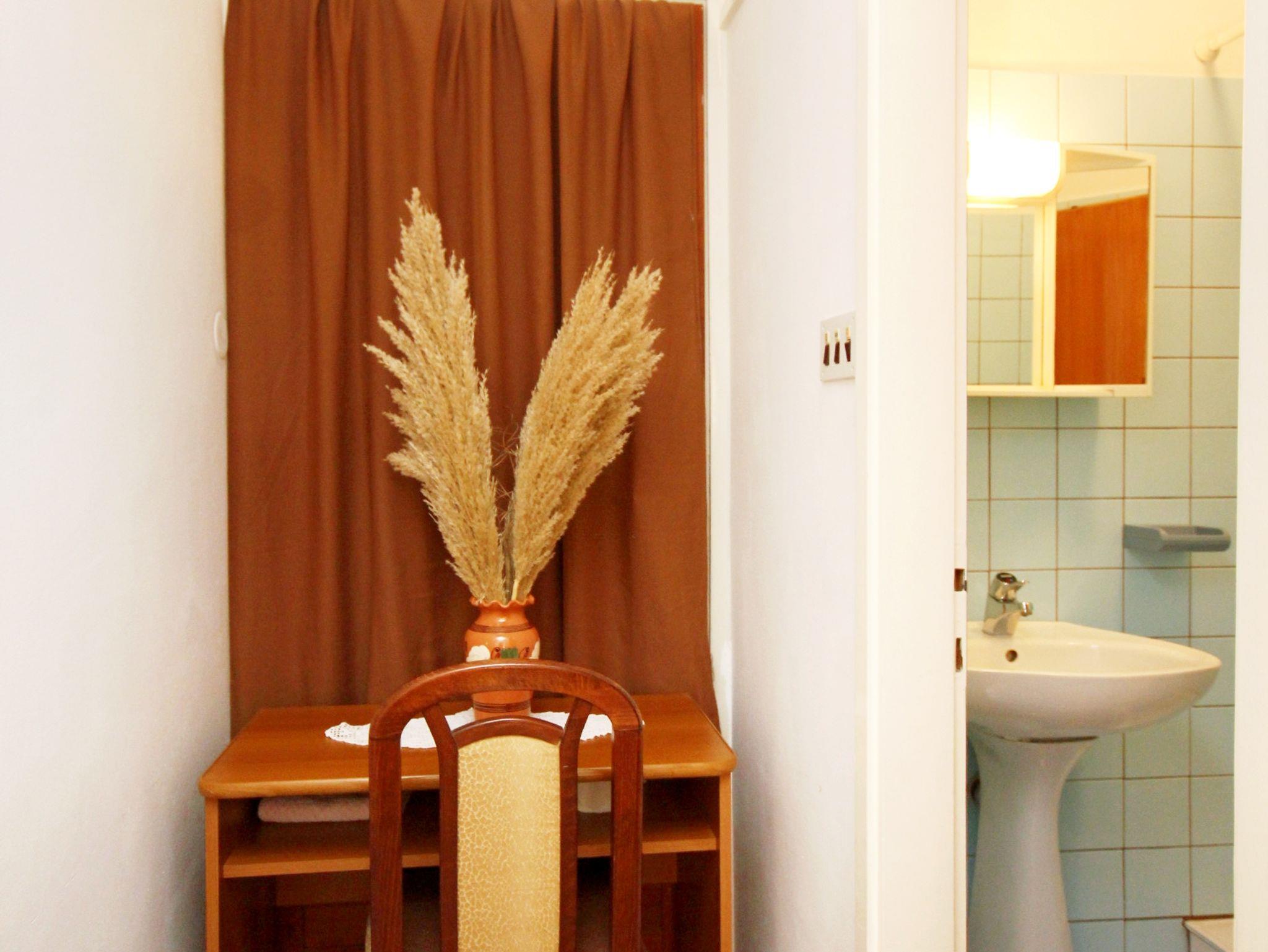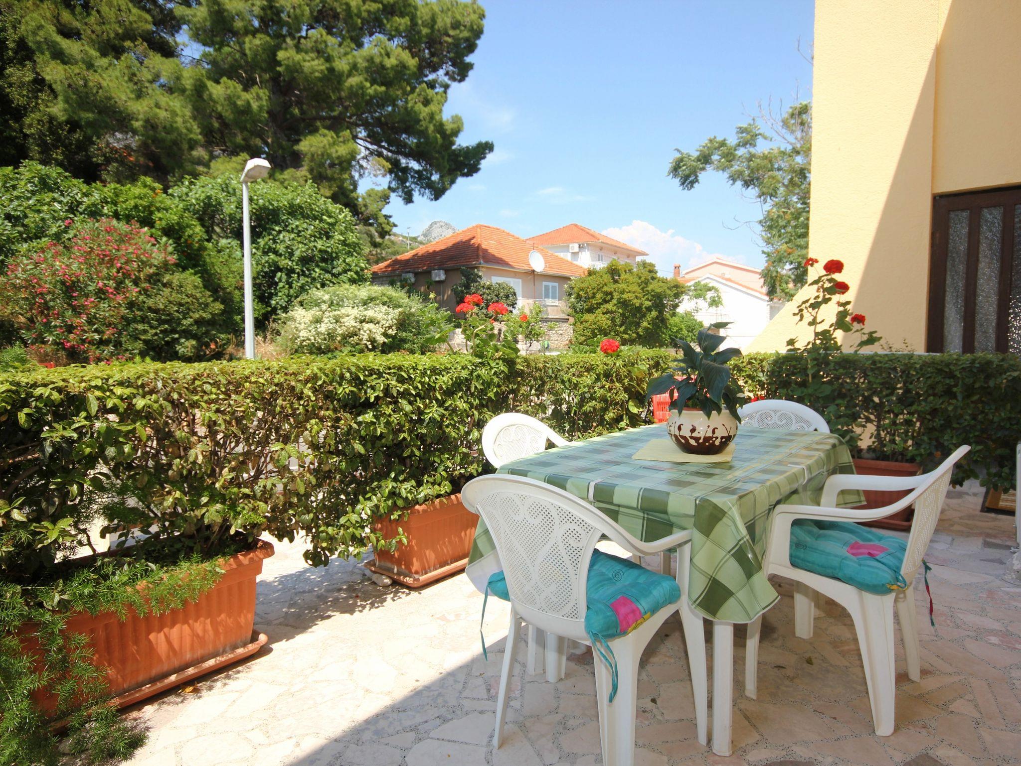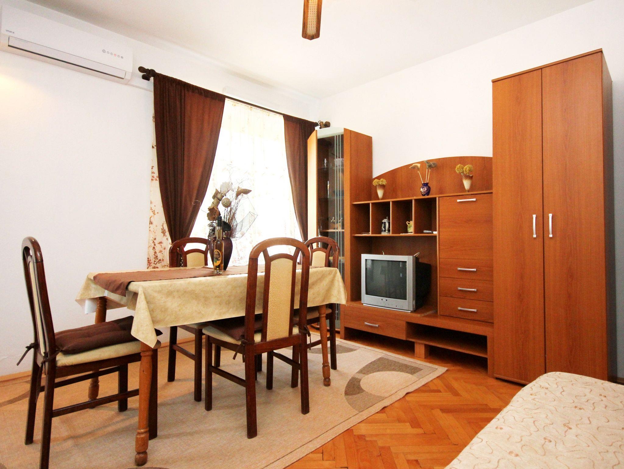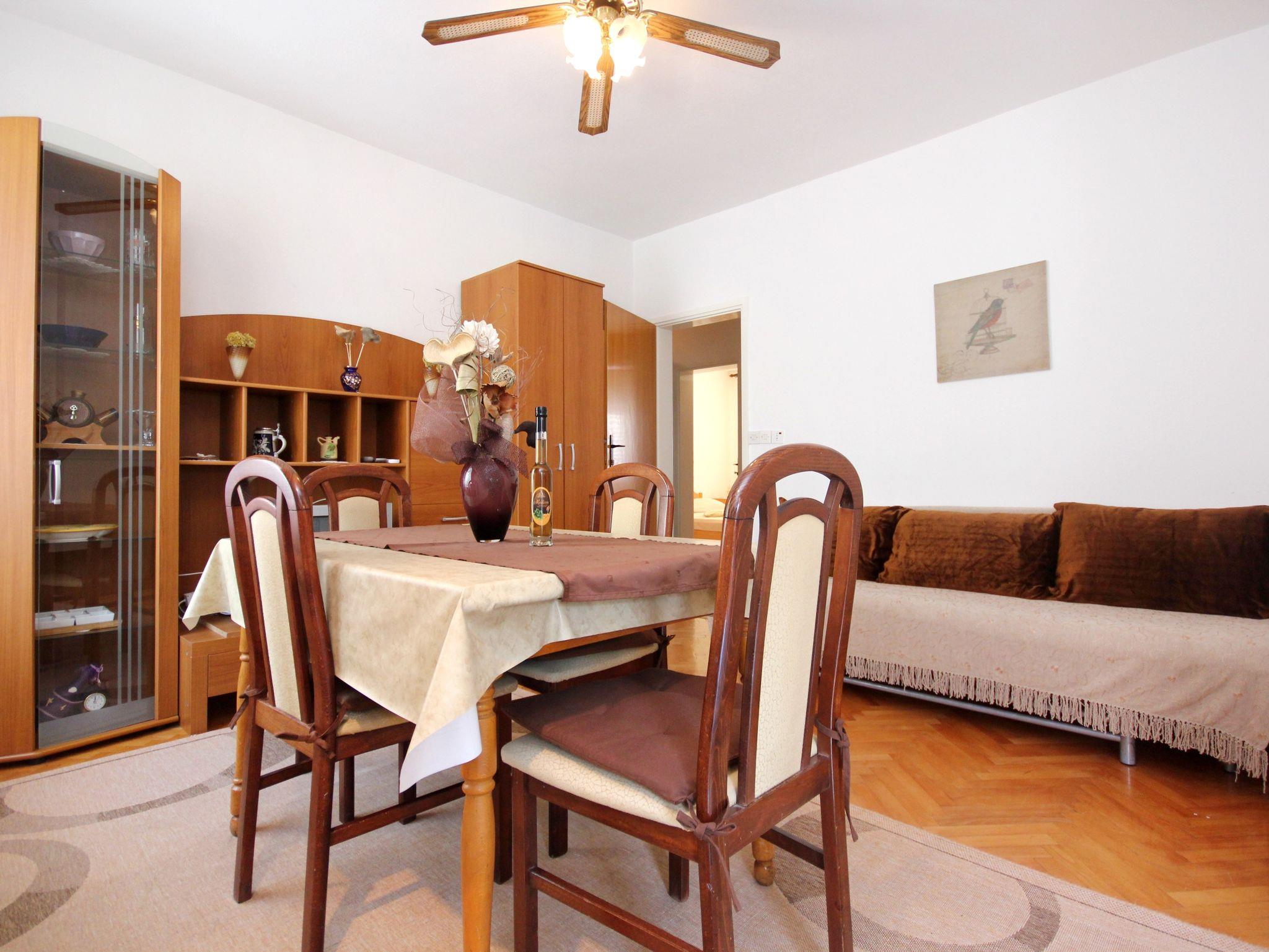 Ferienwohnung bietet Platz für 5 Gäste. Die Betten sind in Schlafzimmern, die es 2 gibt, und in Esszimmer, innerhalb einer Gesamtfläche von 48m2, angeordnet. Die Gäste haben eine eigene Terrasse zur Verfügung, auf der sie in warmen Sommernächten genießen können. Das Apartment bietet Meerblick. Es ist erlaubt, Speisen auf dem Gemeinschafts-Grill vorzubereiten. IM PREIS INBEGRIFFEN: Kurtaxe, Endreinigung, Klimatisierung, Parkplatz, Internet, Bügeleisen, Bügelbrett, Föhn. VERBINDLICHE ZUSÄTZLICHE KOSTEN: Aufzahlung für Kurzaufenthalte (prozentualer Zuschlag pro Nächtigungsanzahl: 30% - 1, 20% - 2, 10% - 3). Die Verfügbarkeit zusätzlicher Dienstleistungen in Ihrem reservierten Termin und die Preise derselben (falls nicht aufgeführt) müssen im Voraus überprüft werden. Zusätzliche Dienstleistungen die in der Zahlungsaufforderung nicht aufgeführt sind werden direkt beim Vermieter bezahlt, angenommen der Gast nutzt auch diese.