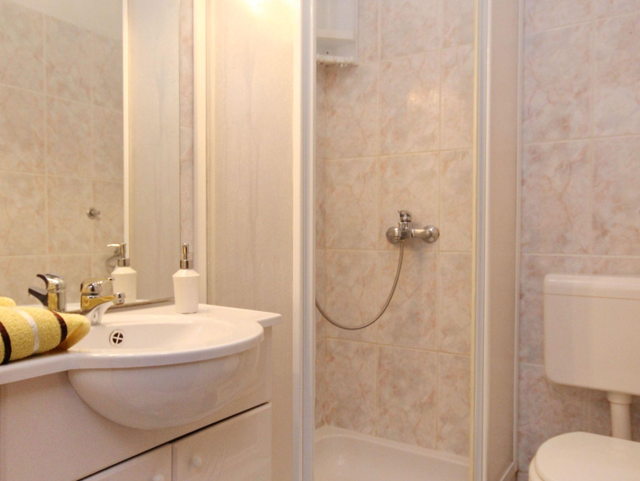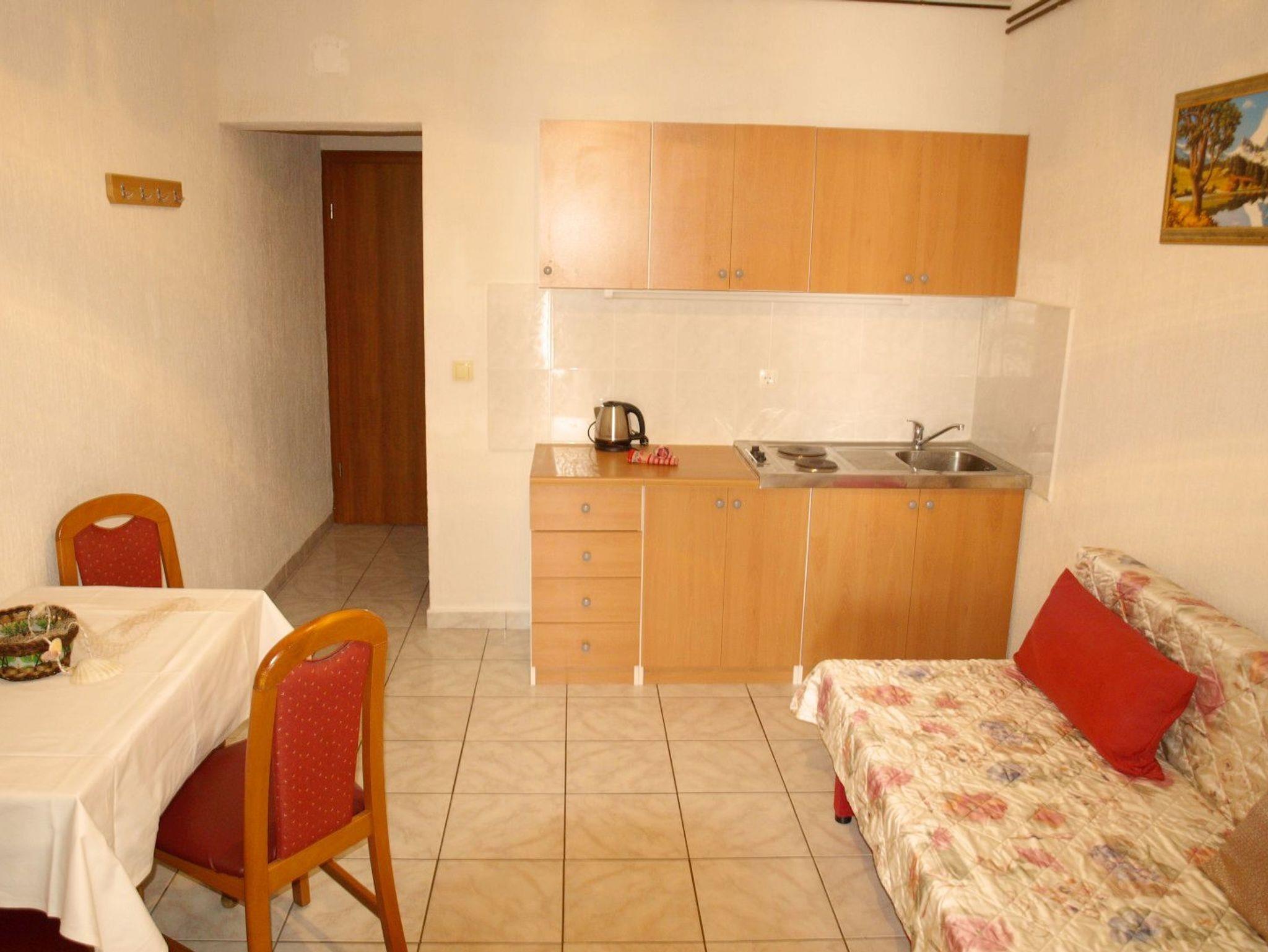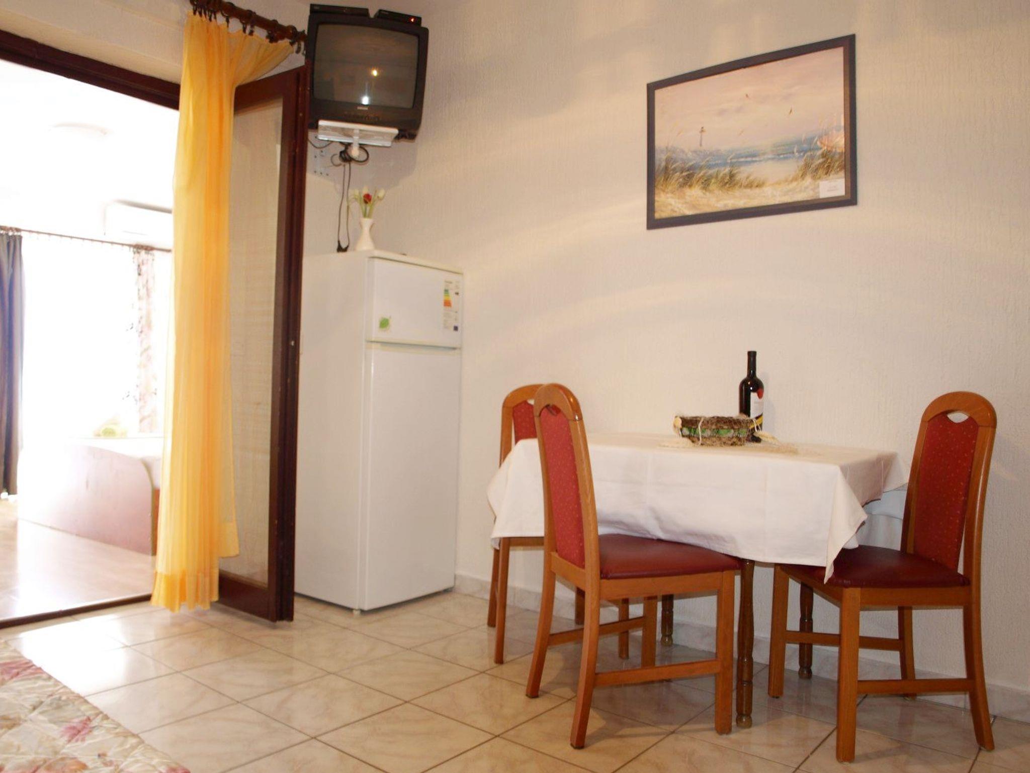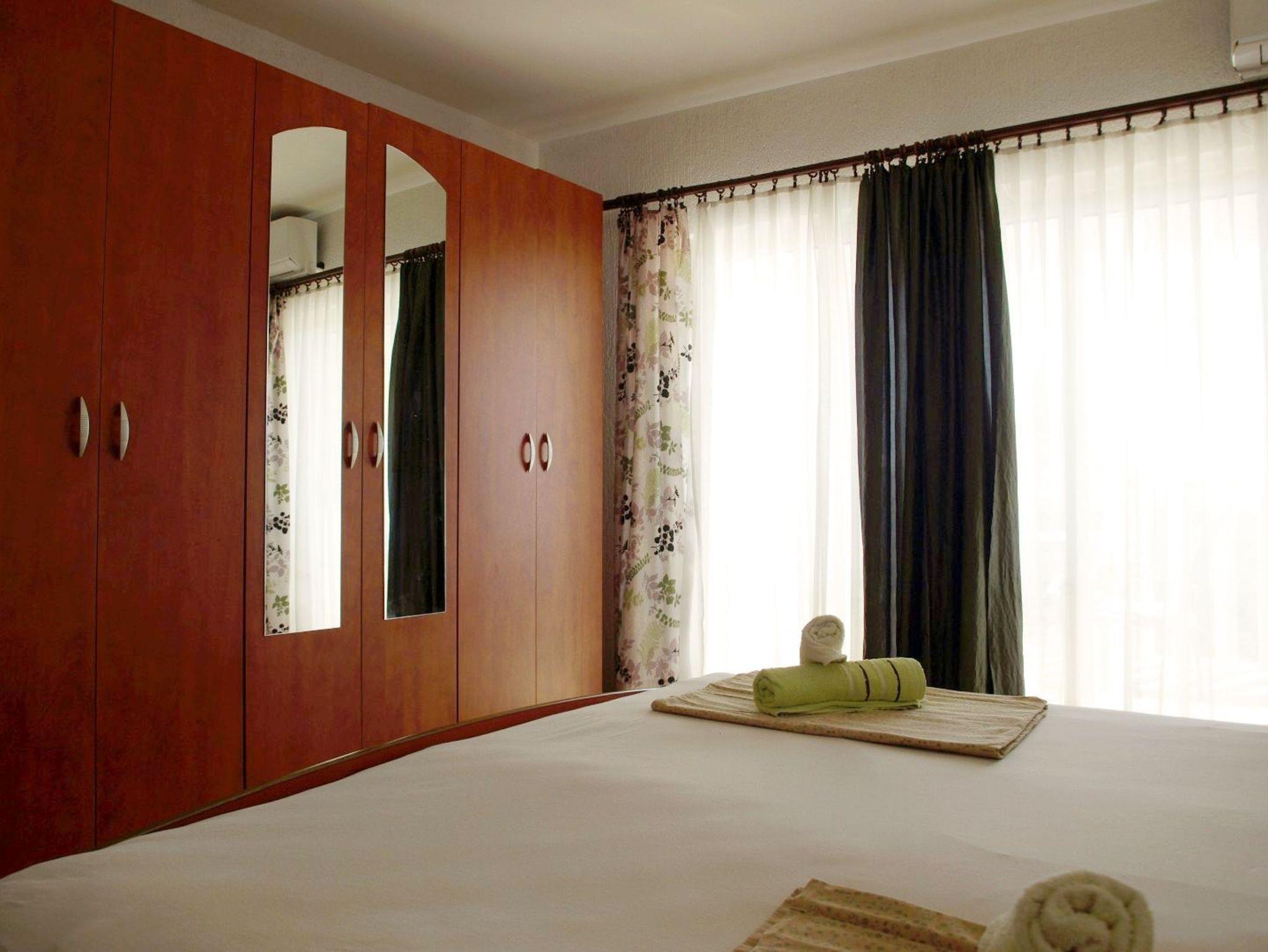 Ferienwohnung bietet Platz für 4 Gäste. Die Betten sind in Schlafzimmern, die es 1 gibt, und in Esszimmer, innerhalb einer Gesamtfläche von 30m2, angeordnet. Die Gäste haben eine eigene Terrasse zur Verfügung, auf der sie in warmen Sommernächten genießen können. Das Apartment bietet Meerblick. Es ist erlaubt, Speisen auf dem Gemeinschafts-Grill vorzubereiten. IM PREIS INBEGRIFFEN: Kurtaxe, Endreinigung, Klimatisierung, Parkplatz, Internet, Kinderbett, Bügeleisen, Bügelbrett, Föhn. VERBINDLICHE ZUSÄTZLICHE KOSTEN: Aufzahlung für Kurzaufenthalte (prozentualer Zuschlag pro Nächtigungsanzahl: 30% - 1, 20% - 2, 10% - 3). Die Verfügbarkeit zusätzlicher Dienstleistungen in Ihrem reservierten Termin und die Preise derselben (falls nicht aufgeführt) müssen im Voraus überprüft werden. Zusätzliche Dienstleistungen die in der Zahlungsaufforderung nicht aufgeführt sind werden direkt beim Vermieter bezahlt, angenommen der Gast nutzt auch diese.