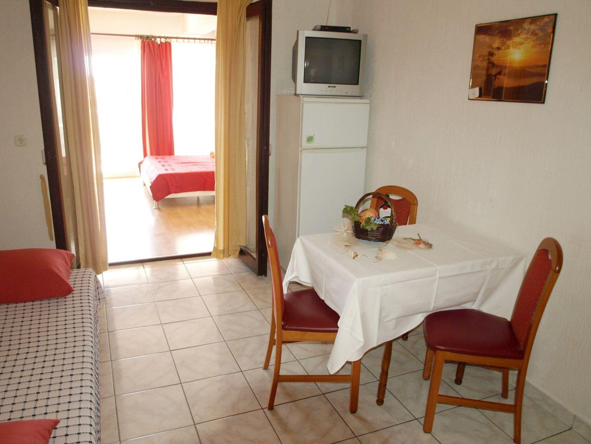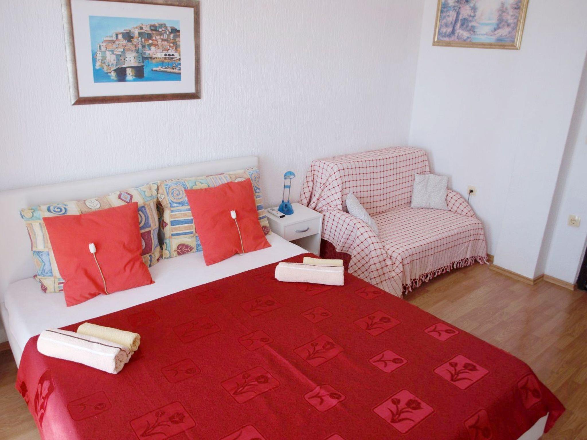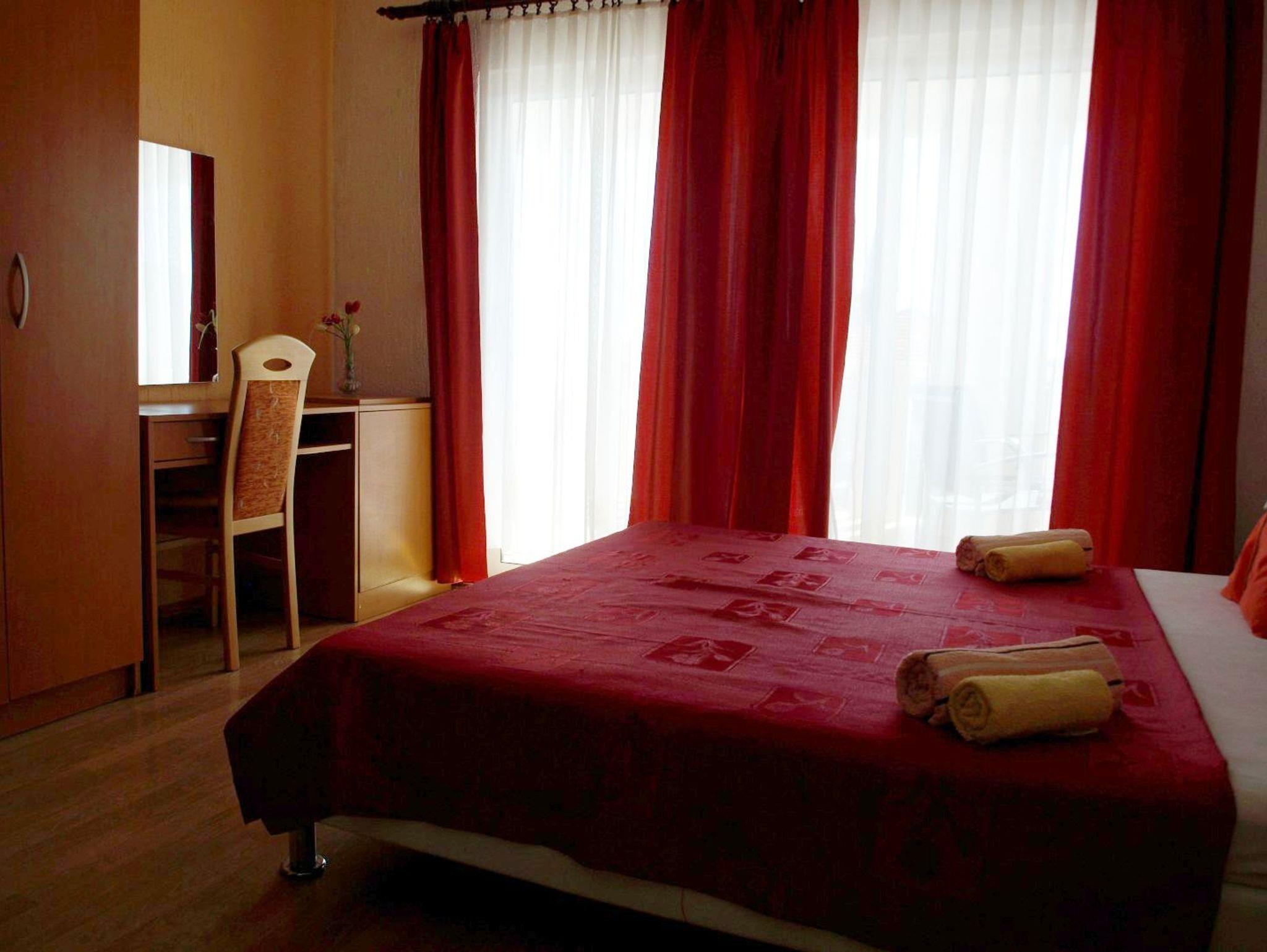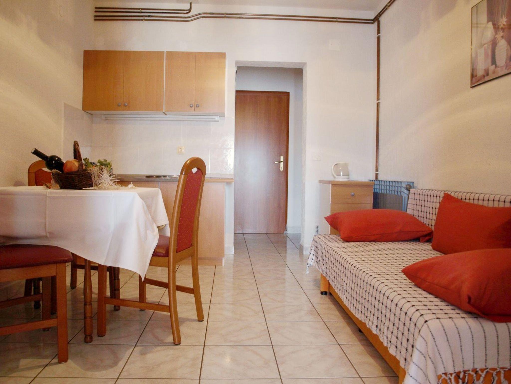 Ferienwohnung bietet Platz für 4 Gäste. Die Betten sind in Schlafzimmern, die es 1 gibt, und in Esszimmer, innerhalb einer Gesamtfläche von 31m2, angeordnet. Die Gäste haben eine eigene Terrasse zur Verfügung, auf der sie in warmen Sommernächten genießen können. Das Apartment bietet Meerblick. Es ist erlaubt, Speisen auf dem Gemeinschafts-Grill vorzubereiten. IM PREIS INBEGRIFFEN: Kurtaxe, Endreinigung, Klimatisierung, Parkplatz, Internet, Kinderbett, Bügeleisen, Bügelbrett, Föhn. VERBINDLICHE ZUSÄTZLICHE KOSTEN: Aufzahlung für Kurzaufenthalte (prozentualer Zuschlag pro Nächtigungsanzahl: 30% - 1, 20% - 2, 10% - 3). Die Verfügbarkeit zusätzlicher Dienstleistungen in Ihrem reservierten Termin und die Preise derselben (falls nicht aufgeführt) müssen im Voraus überprüft werden. Zusätzliche Dienstleistungen die in der Zahlungsaufforderung nicht aufgeführt sind werden direkt beim Vermieter bezahlt, angenommen der Gast nutzt auch diese.