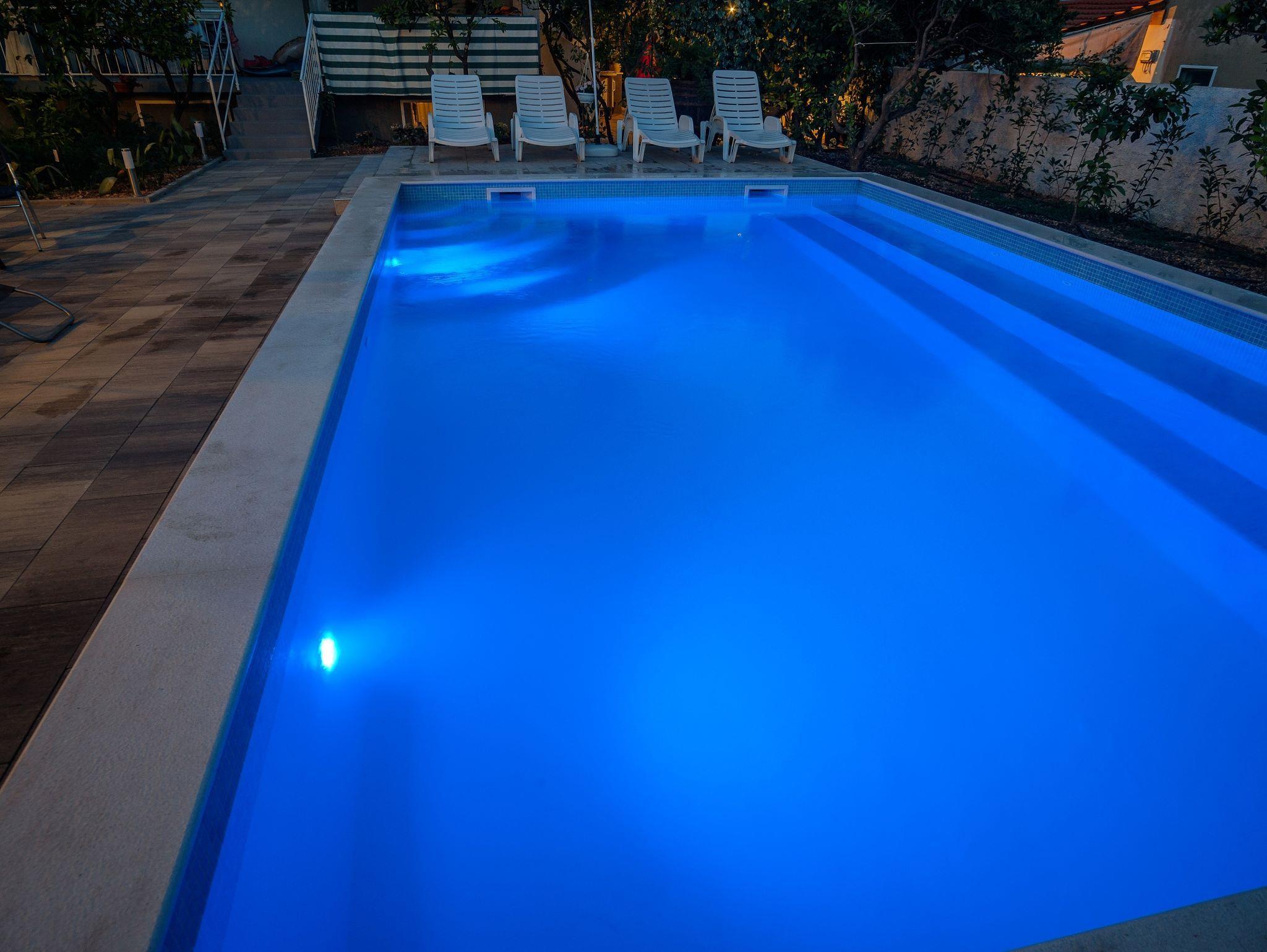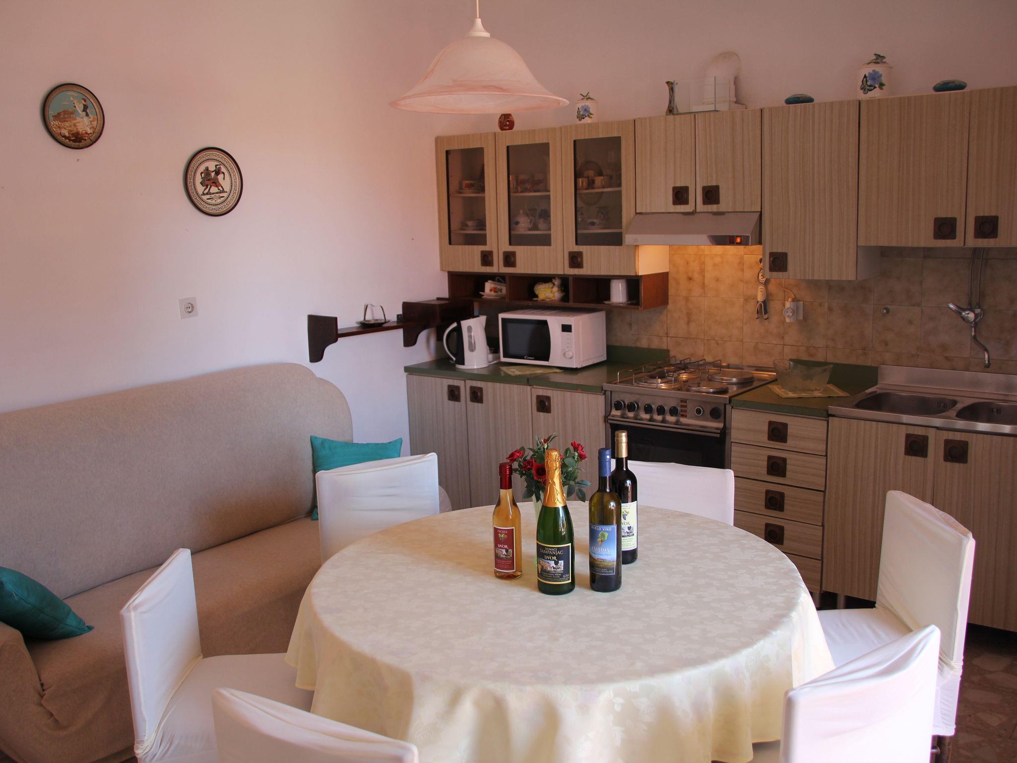 Ferienwohnung bietet Platz für 4 Gäste. Die Betten sind in Schlafzimmern, die es 2 gibt, innerhalb einer Gesamtfläche von 53m2, angeordnet. Die Gäste haben einen eigenen Balkon zur Verfügung, auf der sie in warmen Sommernächten genießen können. Es ist erlaubt, Speisen auf dem Gemeinschafts-Grill vorzubereiten. Während ihres Aufenthalts können Gäste das gemeinsam zur Nutzung stehende Schwimmbad benutzen. In der Unterkunftseinheit besteht die Möglichkeit des Mitbringens von Haustieren gegen Aufpreis. IM PREIS INBEGRIFFEN: Kurtaxe, Endreinigung, Klimatisierung, Pool, Parkplatz, Internet, Kinderbett, Bügeleisen, Bügelbrett, Föhn. VERBINDLICHE ZUSÄTZLICHE KOSTEN: Aufzahlung für Kurzaufenthalte (prozentualer Zuschlag pro Nächtigungsanzahl: 30% - 1, 20% - 2, 10% - 3). UNVERBINDLICHE ZUSÄTZLICHE KOSTEN: Wäschewaschen (3,00 € Waschen), Haustiere (5,00 € pro Nacht), Zusatzbett (20,00 € pro Nacht). Die Verfügbarkeit zusätzlicher Dienstleistungen in Ihrem reservierten Termin und die Preise derselben (falls nicht aufgeführt) müssen im Voraus überprüft werden. Zusätzliche Dienstleistungen die in der Zahlungsaufforderung nicht aufgeführt sind werden direkt beim Vermieter bezahlt, angenommen der Gast nutzt auch diese. Ermäßigung auf den Grundpreis: Gratistag 14=13 (bei einem Aufenthalt von 14 Tagen oder mehr erhalten Sie einen Gratistag für den Aufenthalt bis 31.12.26).