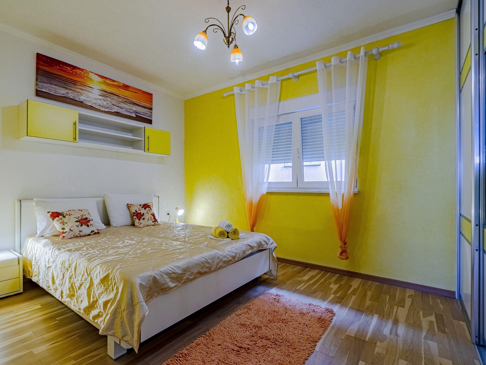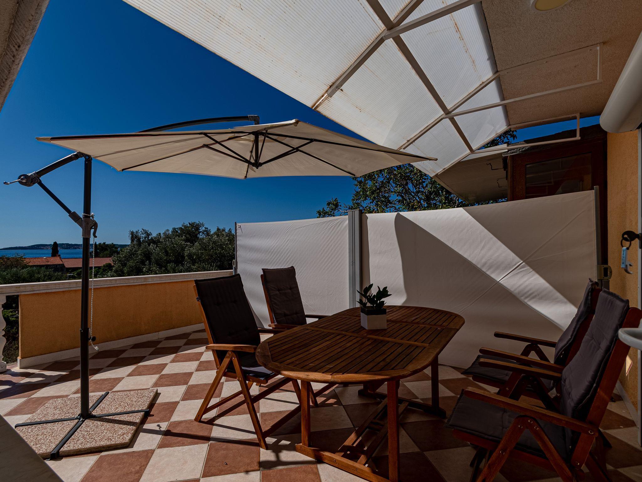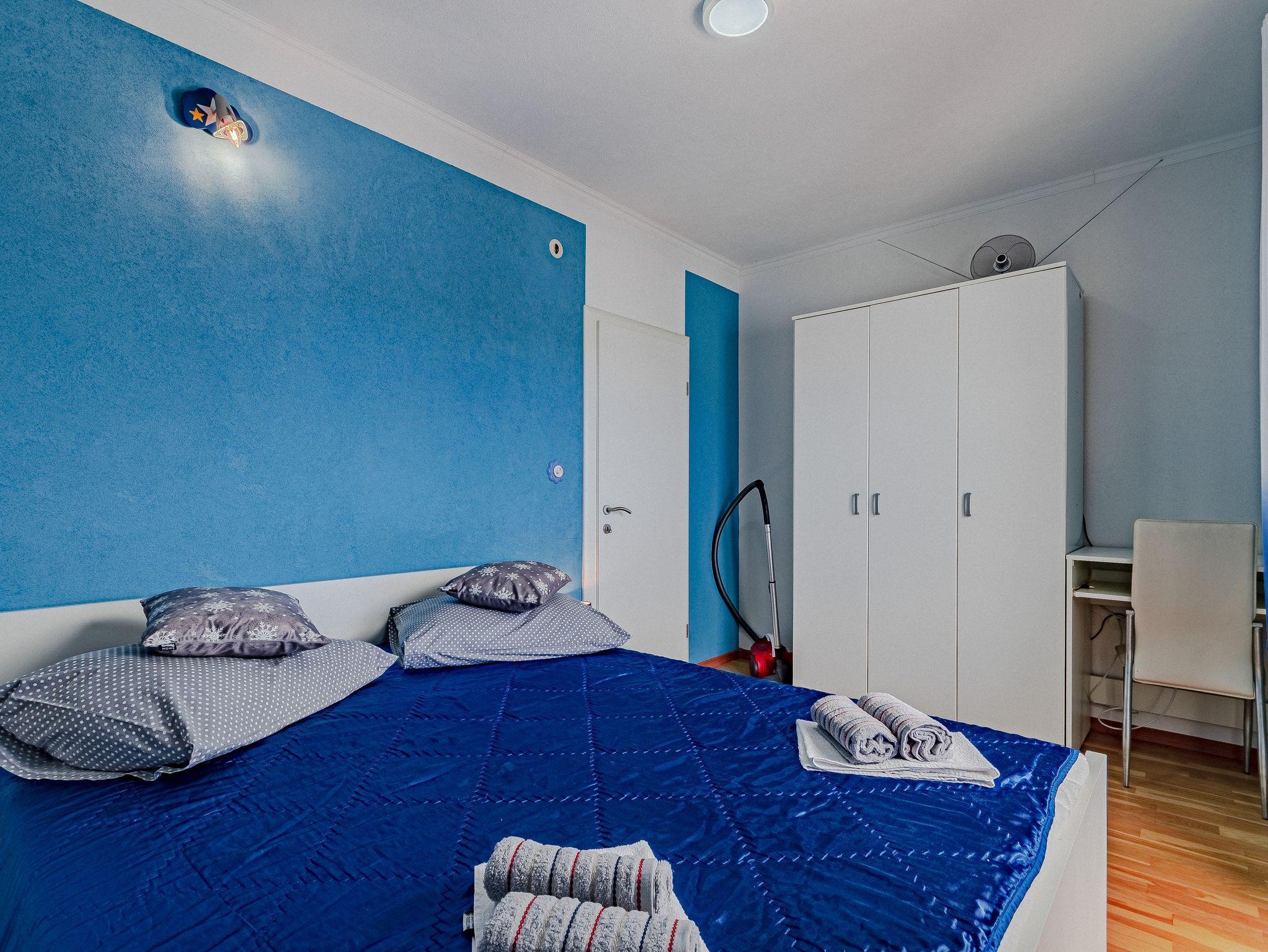Ferienwohnung bietet Platz für 4 Gäste. Die Betten sind in Schlafzimmern, die es 2 gibt, innerhalb einer Gesamtfläche von 58m2, angeordnet. Die Gäste haben eine eigene Terrasse zur Verfügung, auf der sie in warmen Sommernächten genießen können. Das Apartment bietet Meerblick. Es ist erlaubt, Speisen auf dem Gemeinschafts-Grill vorzubereiten. IM PREIS INBEGRIFFEN: Kurtaxe, Endreinigung, Klimatisierung, Parkplatz, Internet. VERBINDLICHE ZUSÄTZLICHE KOSTEN: Aufzahlung für Kurzaufenthalte (prozentualer Zuschlag pro Nächtigungsanzahl: 30% - 1, 20% - 2, 10% - 3). Die Verfügbarkeit zusätzlicher Dienstleistungen in Ihrem reservierten Termin und die Preise derselben (falls nicht aufgeführt) müssen im Voraus überprüft werden. Zusätzliche Dienstleistungen die in der Zahlungsaufforderung nicht aufgeführt sind werden direkt beim Vermieter bezahlt, angenommen der Gast nutzt auch diese. Ermäßigung auf den Grundpreis: Gratistag 14=13 (bei einem Aufenthalt von 14 Tagen oder mehr erhalten Sie einen Gratistag für den Aufenthalt bis 31.12.26).