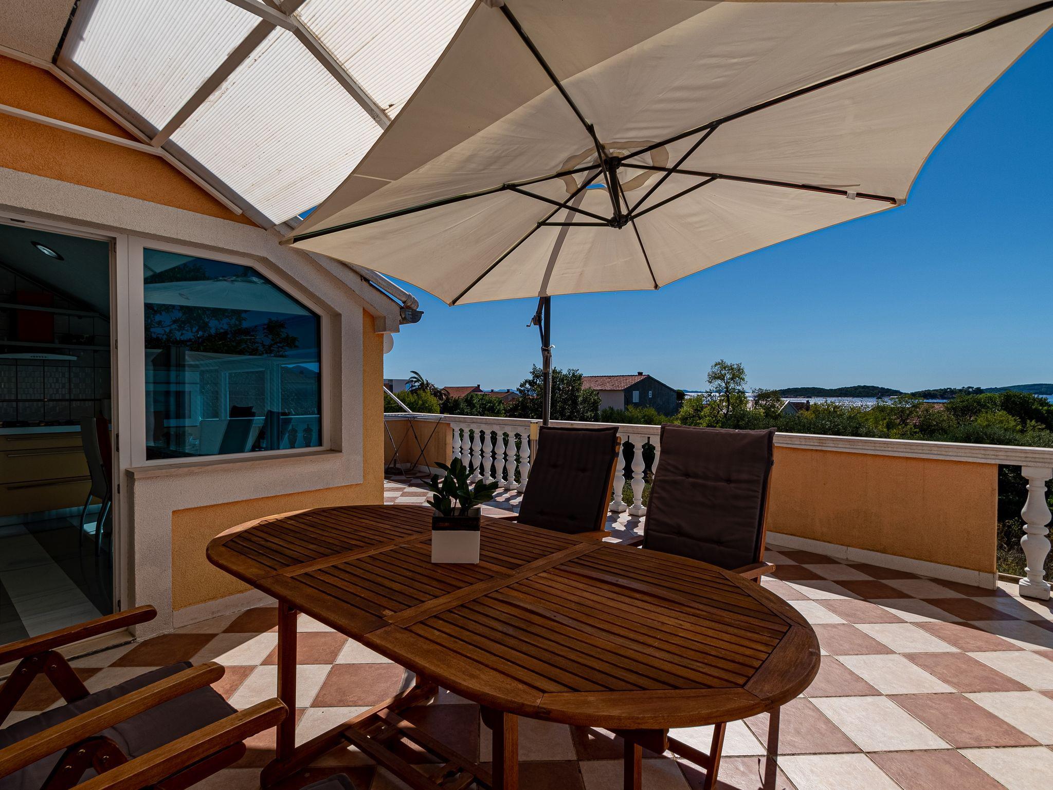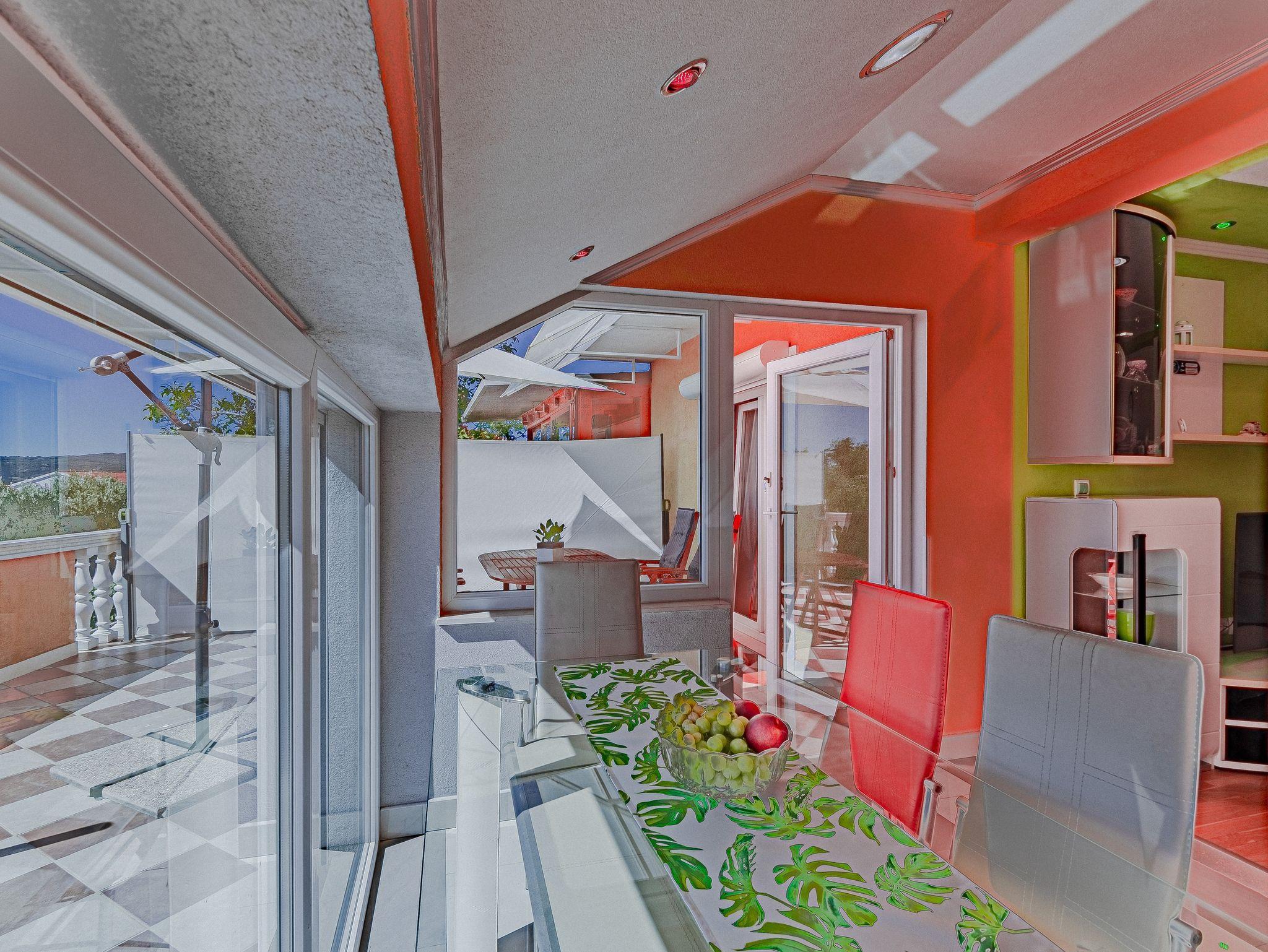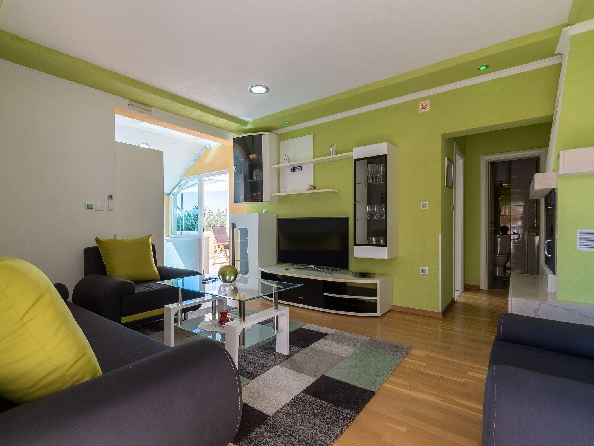 Ferienwohnung bietet Platz für 4 Gäste. Die Betten sind in Schlafzimmern, die es 2 gibt, innerhalb einer Gesamtfläche von 58m2, angeordnet. Die Gäste haben eine eigene Terrasse zur Verfügung, auf der sie in warmen Sommernächten genießen können. Das Apartment bietet Meerblick. Es ist erlaubt, Speisen auf dem Gemeinschafts-Grill vorzubereiten. IM PREIS INBEGRIFFEN: Kurtaxe, Endreinigung, Klimatisierung, Parkplatz, Internet. VERBINDLICHE ZUSÄTZLICHE KOSTEN: Aufzahlung für Kurzaufenthalte (prozentualer Zuschlag pro Nächtigungsanzahl: 30% - 1, 20% - 2, 10% - 3). Die Verfügbarkeit zusätzlicher Dienstleistungen in Ihrem reservierten Termin und die Preise derselben (falls nicht aufgeführt) müssen im Voraus überprüft werden. Zusätzliche Dienstleistungen die in der Zahlungsaufforderung nicht aufgeführt sind werden direkt beim Vermieter bezahlt, angenommen der Gast nutzt auch diese. Ermäßigung auf den Grundpreis: Gratistag 14=13 (bei einem Aufenthalt von 14 Tagen oder mehr erhalten Sie einen Gratistag für den Aufenthalt bis 31.12.26).