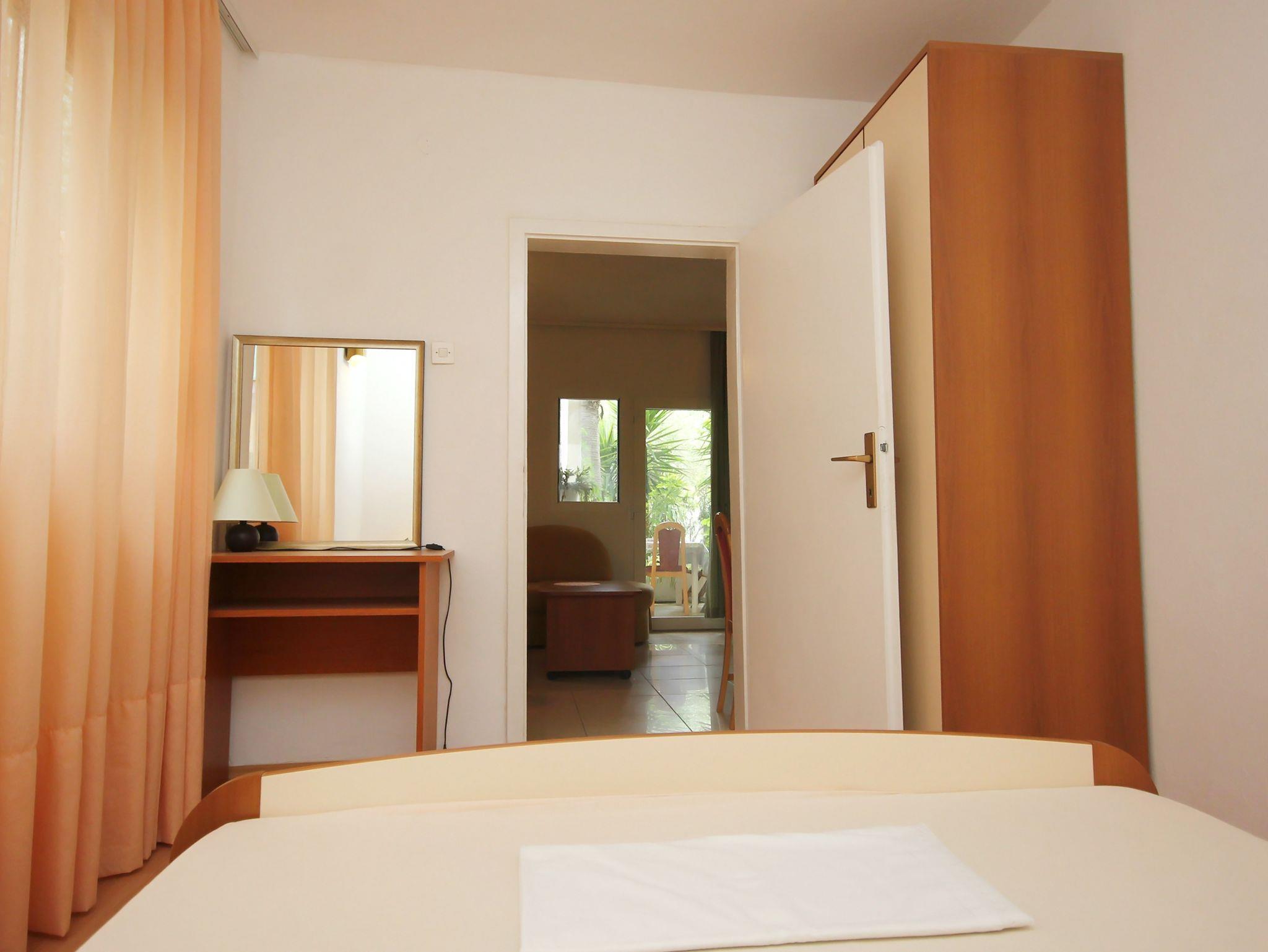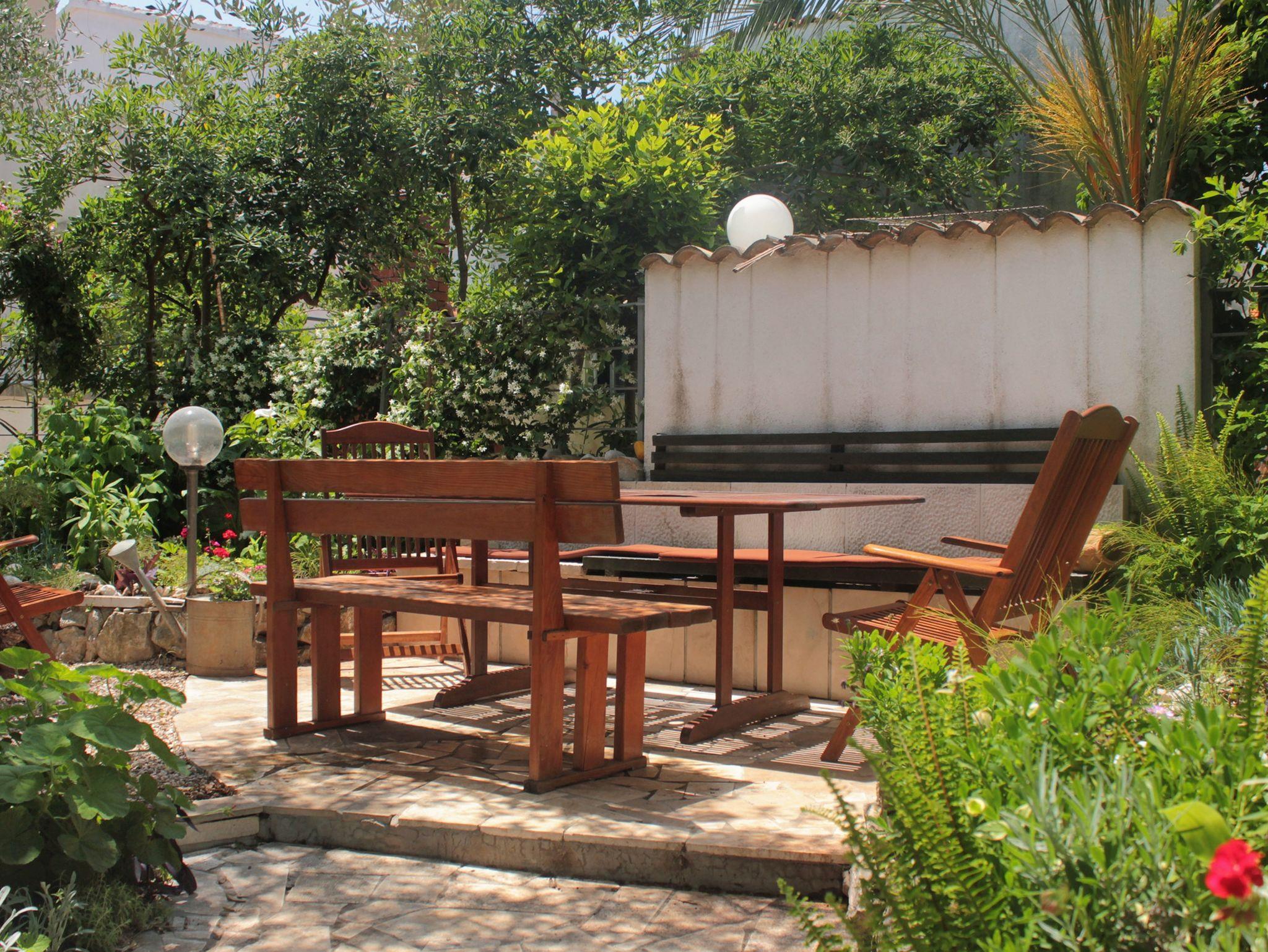 Ferienwohnung bietet Platz für 5 Gäste. Die Betten sind in Schlafzimmern, die es 2 gibt, und in Wohnzimmer, innerhalb einer Gesamtfläche von 46m2, angeordnet. Die Gäste haben eine eigene Terrasse zur Verfügung, auf der sie in warmen Sommernächten genießen können. Es ist erlaubt, Speisen auf dem Gemeinschafts-Grill vorzubereiten. In der Unterkunftseinheit besteht die Möglichkeit des Mitbringens von Haustieren gegen Aufpreis. IM PREIS INBEGRIFFEN: Kurtaxe, Endreinigung, Klimatisierung, Parkplatz, Internet, Kinderbett, Bügeleisen, Bügelbrett, Föhn. VERBINDLICHE ZUSÄTZLICHE KOSTEN: Aufzahlung für Kurzaufenthalte (prozentualer Zuschlag pro Nächtigungsanzahl: 30% - 1, 20% - 2, 10% - 3). UNVERBINDLICHE ZUSÄTZLICHE KOSTEN: Haustiere (5,00 € pro Nacht). Die Verfügbarkeit zusätzlicher Dienstleistungen in Ihrem reservierten Termin und die Preise derselben (falls nicht aufgeführt) müssen im Voraus überprüft werden. Zusätzliche Dienstleistungen die in der Zahlungsaufforderung nicht aufgeführt sind werden direkt beim Vermieter bezahlt, angenommen der Gast nutzt auch diese.
