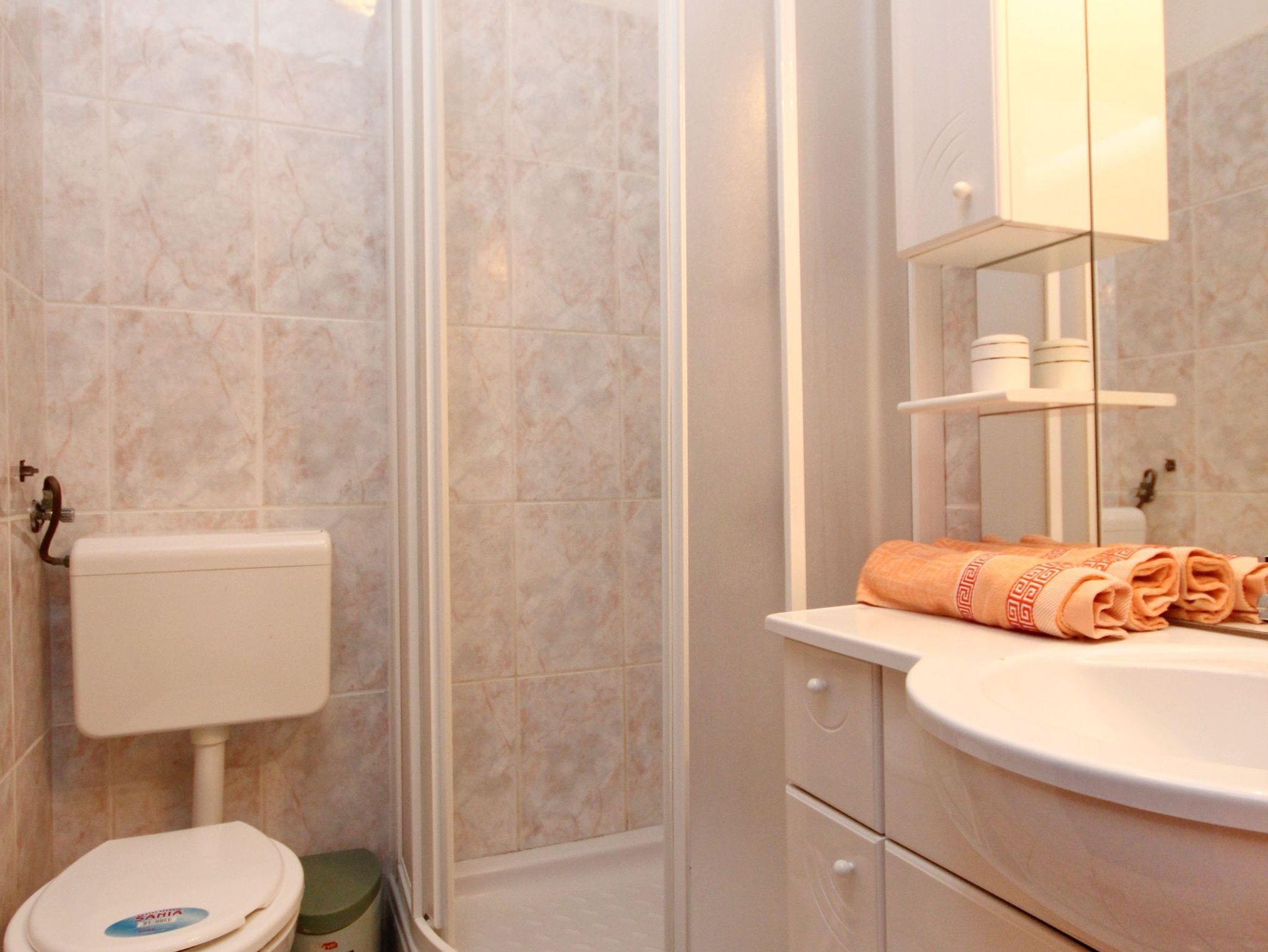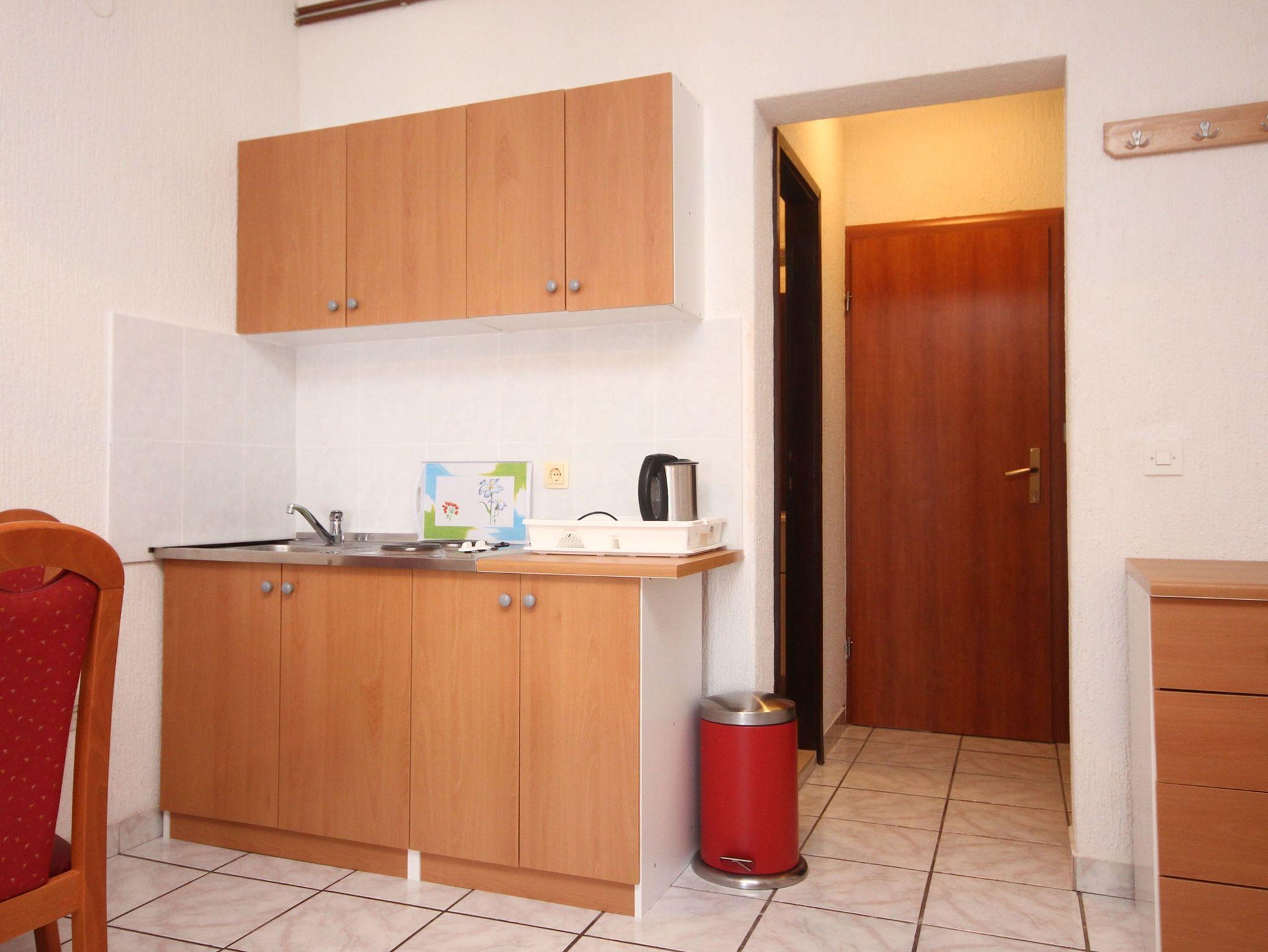 Ferienwohnung bietet Platz für 4 Gäste. Die Betten sind in Schlafzimmern, die es 1 gibt, und in Esszimmer, innerhalb einer Gesamtfläche von 31m2, angeordnet. Die Gäste haben eine eigene Terrasse zur Verfügung, auf der sie in warmen Sommernächten genießen können. Das Apartment bietet Meerblick. Es ist erlaubt, Speisen auf dem Gemeinschafts-Grill vorzubereiten. IM PREIS INBEGRIFFEN: Kurtaxe, Endreinigung, Klimatisierung, Parkplatz, Internet, Kinderbett, Bügeleisen, Bügelbrett, Föhn. VERBINDLICHE ZUSÄTZLICHE KOSTEN: Aufzahlung für Kurzaufenthalte (prozentualer Zuschlag pro Nächtigungsanzahl: 30% - 1, 20% - 2, 10% - 3). Die Verfügbarkeit zusätzlicher Dienstleistungen in Ihrem reservierten Termin und die Preise derselben (falls nicht aufgeführt) müssen im Voraus überprüft werden. Zusätzliche Dienstleistungen die in der Zahlungsaufforderung nicht aufgeführt sind werden direkt beim Vermieter bezahlt, angenommen der Gast nutzt auch diese.