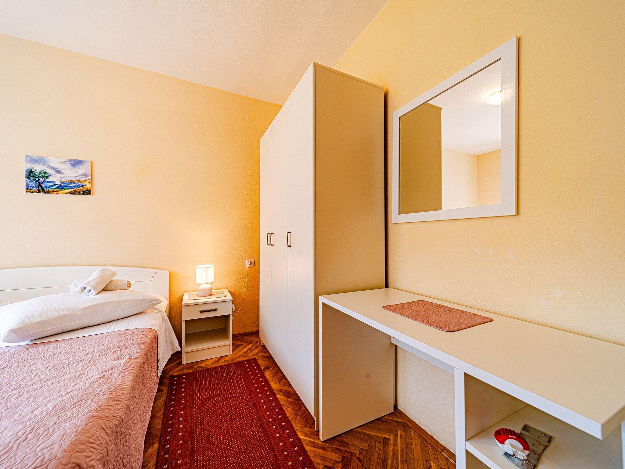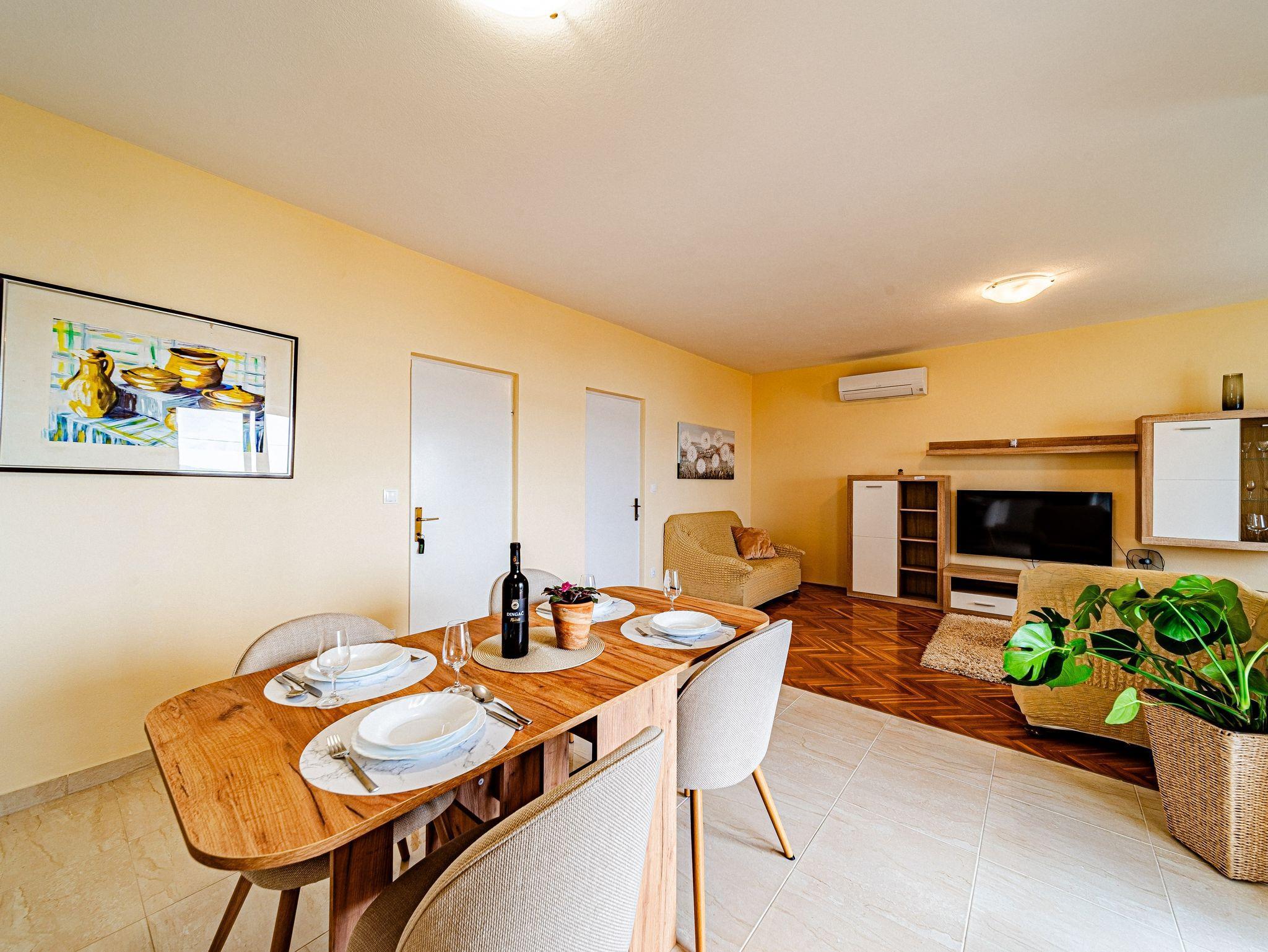 Ferienwohnung bietet Platz für 4 Gäste. Die Betten sind in Schlafzimmern, die es 2 gibt, innerhalb einer Gesamtfläche von 63m2, angeordnet. Die Gäste haben eine eigene Terrasse zur Verfügung, auf der sie in warmen Sommernächten genießen können. Das Apartment bietet Meerblick. Es ist erlaubt, Speisen auf dem Gemeinschafts-Grill vorzubereiten. IM PREIS INBEGRIFFEN: Kurtaxe, Endreinigung, Klimatisierung, Parkplatz, Internet, Wäschewaschen, Bügeleisen, Bügelbrett, Föhn. Die Verfügbarkeit zusätzlicher Dienstleistungen in Ihrem reservierten Termin und die Preise derselben (falls nicht aufgeführt) müssen im Voraus überprüft werden. Zusätzliche Dienstleistungen die in der Zahlungsaufforderung nicht aufgeführt sind werden direkt beim Vermieter bezahlt, angenommen der Gast nutzt auch diese.