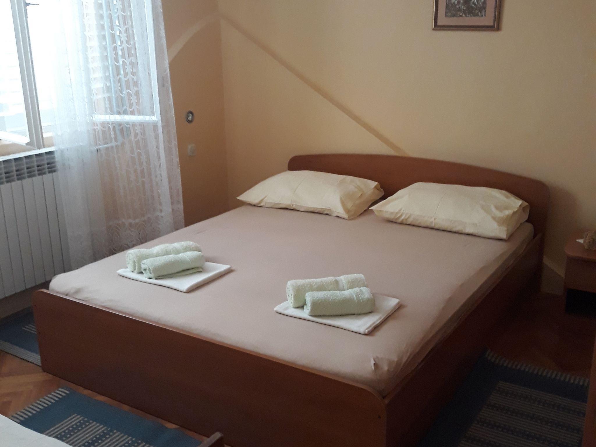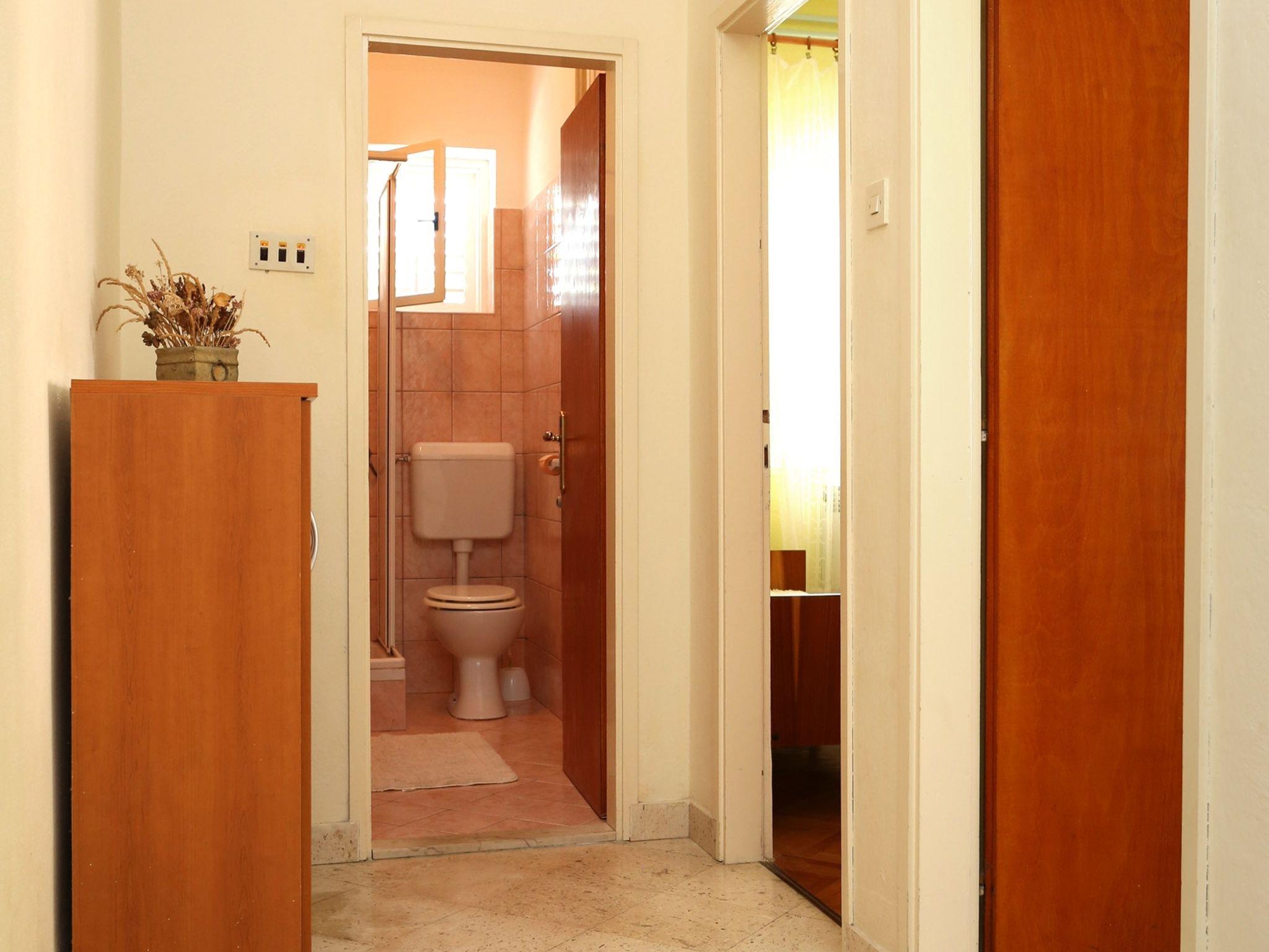 Ferienwohnung bietet Platz für 5 Gäste. Die Betten sind in Schlafzimmern, die es 1 gibt, und in Esszimmer, innerhalb einer Gesamtfläche von 35m2, angeordnet. Die Gäste haben eine eigene Terrasse zur Verfügung, auf der sie in warmen Sommernächten genießen können. Es ist erlaubt, Speisen auf dem Gemeinschafts-Grill vorzubereiten. In der Unterkunftseinheit besteht die Möglichkeit des Mitbringens von Haustieren gegen Aufpreis. IM PREIS INBEGRIFFEN: Kurtaxe, Endreinigung, Zentralheizung, Parkplatz, Internet, Kinderbett, Bügeleisen, Bügelbrett, Föhn, tragbarer Grill. VERBINDLICHE ZUSÄTZLICHE KOSTEN: Aufzahlung für Kurzaufenthalte (prozentualer Zuschlag pro Nächtigungsanzahl: 30% - 1, 20% - 2, 10% - 3). UNVERBINDLICHE ZUSÄTZLICHE KOSTEN: Klimatisierung (5,00 € pro Nacht), Haustiere (5,00 € pro Nacht). Die Verfügbarkeit zusätzlicher Dienstleistungen in Ihrem reservierten Termin und die Preise derselben (falls nicht aufgeführt) müssen im Voraus überprüft werden. Zusätzliche Dienstleistungen die in der Zahlungsaufforderung nicht aufgeführt sind werden direkt beim Vermieter bezahlt, angenommen der Gast nutzt auch diese.