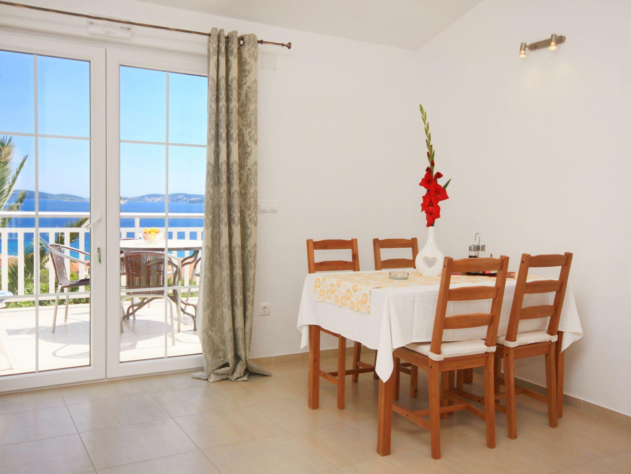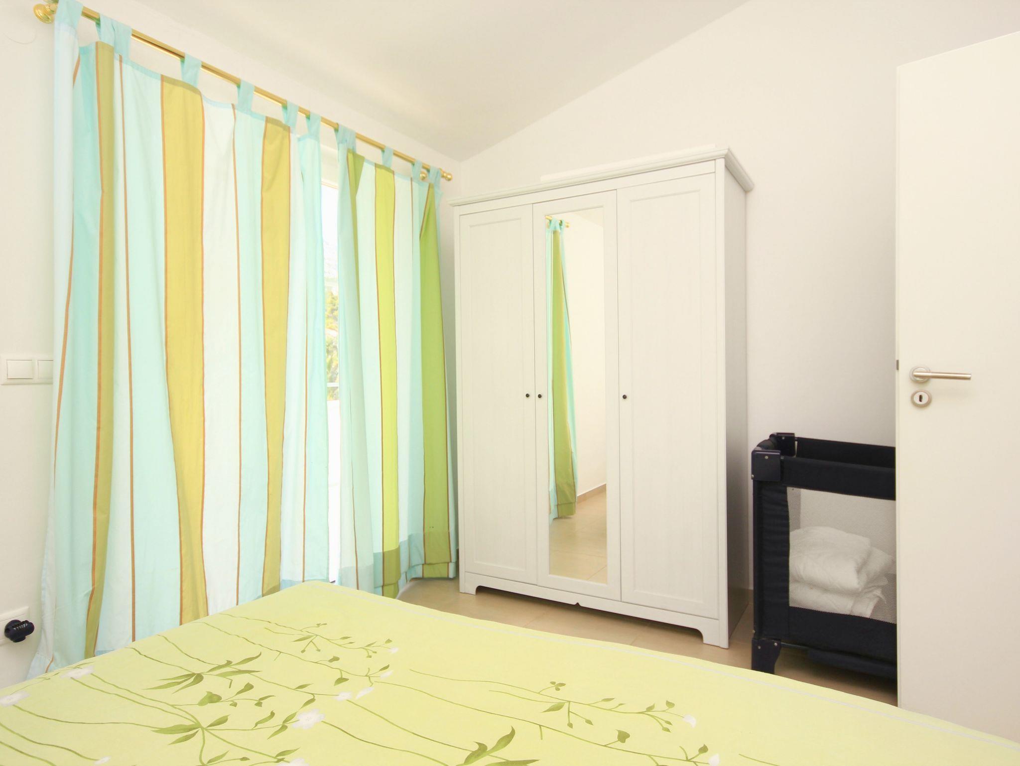 Ferienwohnung bietet Platz für 4 Gäste. Die Betten sind in Schlafzimmern, die es 1 gibt, und in Wohnzimmer, innerhalb einer Gesamtfläche von 38m2, angeordnet. Die Gäste haben eine eigene Terrasse zur Verfügung, auf der sie in warmen Sommernächten genießen können. Das Apartment bietet Meerblick. IM PREIS INBEGRIFFEN: Kurtaxe, Endreinigung, Klimatisierung, Parkplatz, Internet, Kinderbett, Bügeleisen, Bügelbrett, Föhn. VERBINDLICHE ZUSÄTZLICHE KOSTEN: Aufzahlung für Kurzaufenthalte (prozentualer Zuschlag pro Nächtigungsanzahl: 30% - 1, 20% - 2, 10% - 3). Die Verfügbarkeit zusätzlicher Dienstleistungen in Ihrem reservierten Termin und die Preise derselben (falls nicht aufgeführt) müssen im Voraus überprüft werden. Zusätzliche Dienstleistungen die in der Zahlungsaufforderung nicht aufgeführt sind werden direkt beim Vermieter bezahlt, angenommen der Gast nutzt auch diese. Ermäßigung auf den Grundpreis: Gratistag 14=13 (bei einem Aufenthalt von 14 Tagen oder mehr erhalten Sie einen Gratistag für den Aufenthalt bis 31.12.26).
