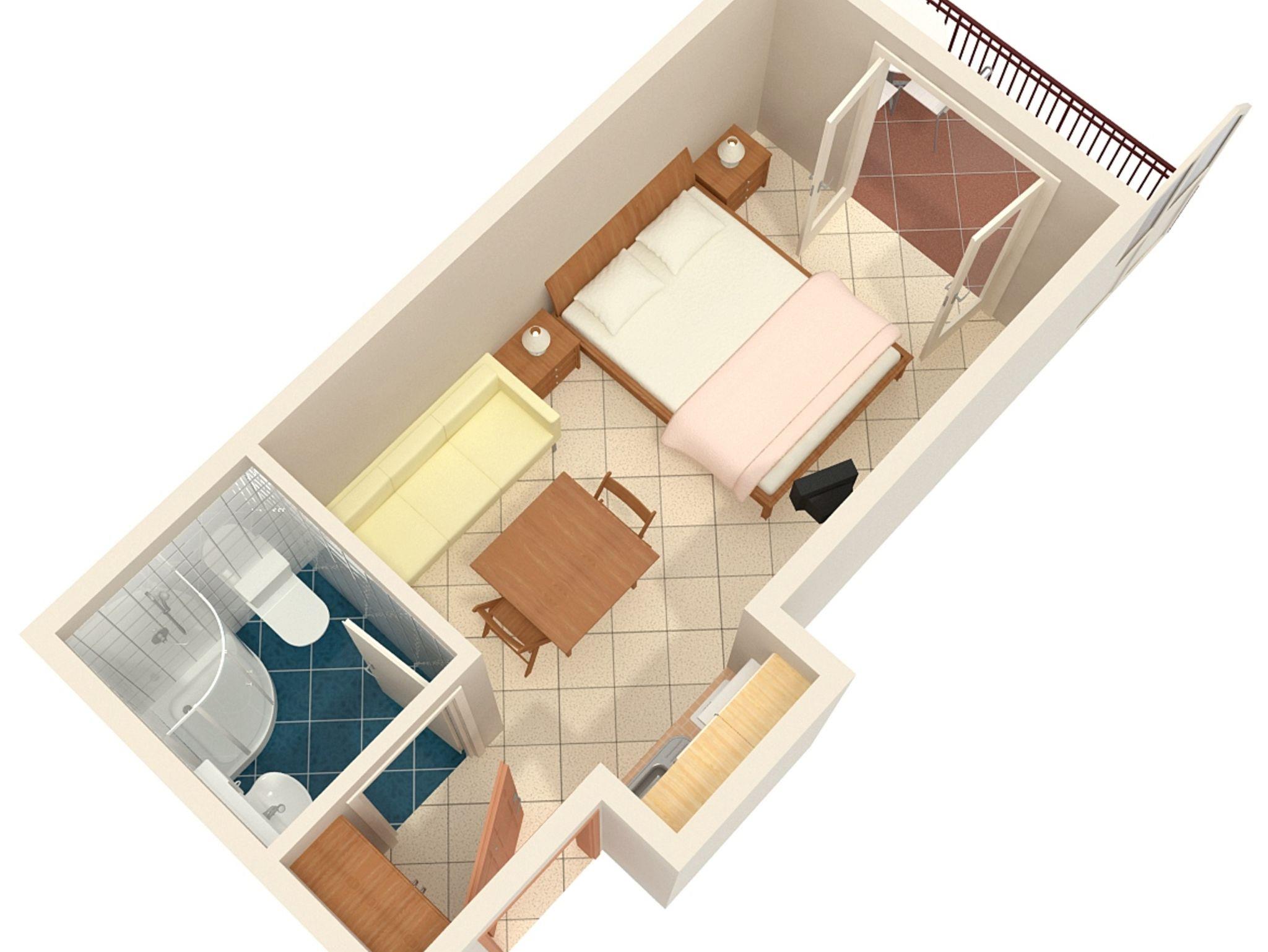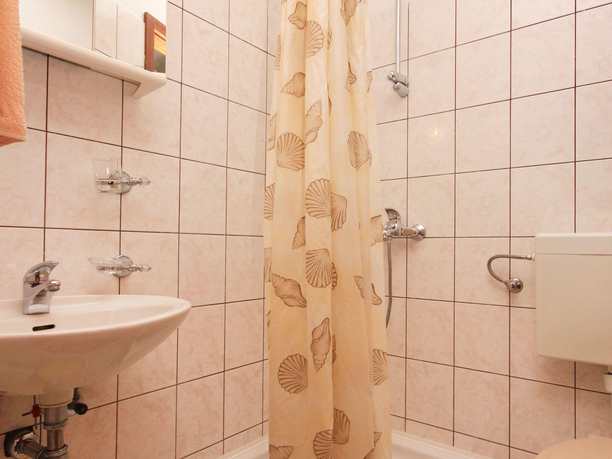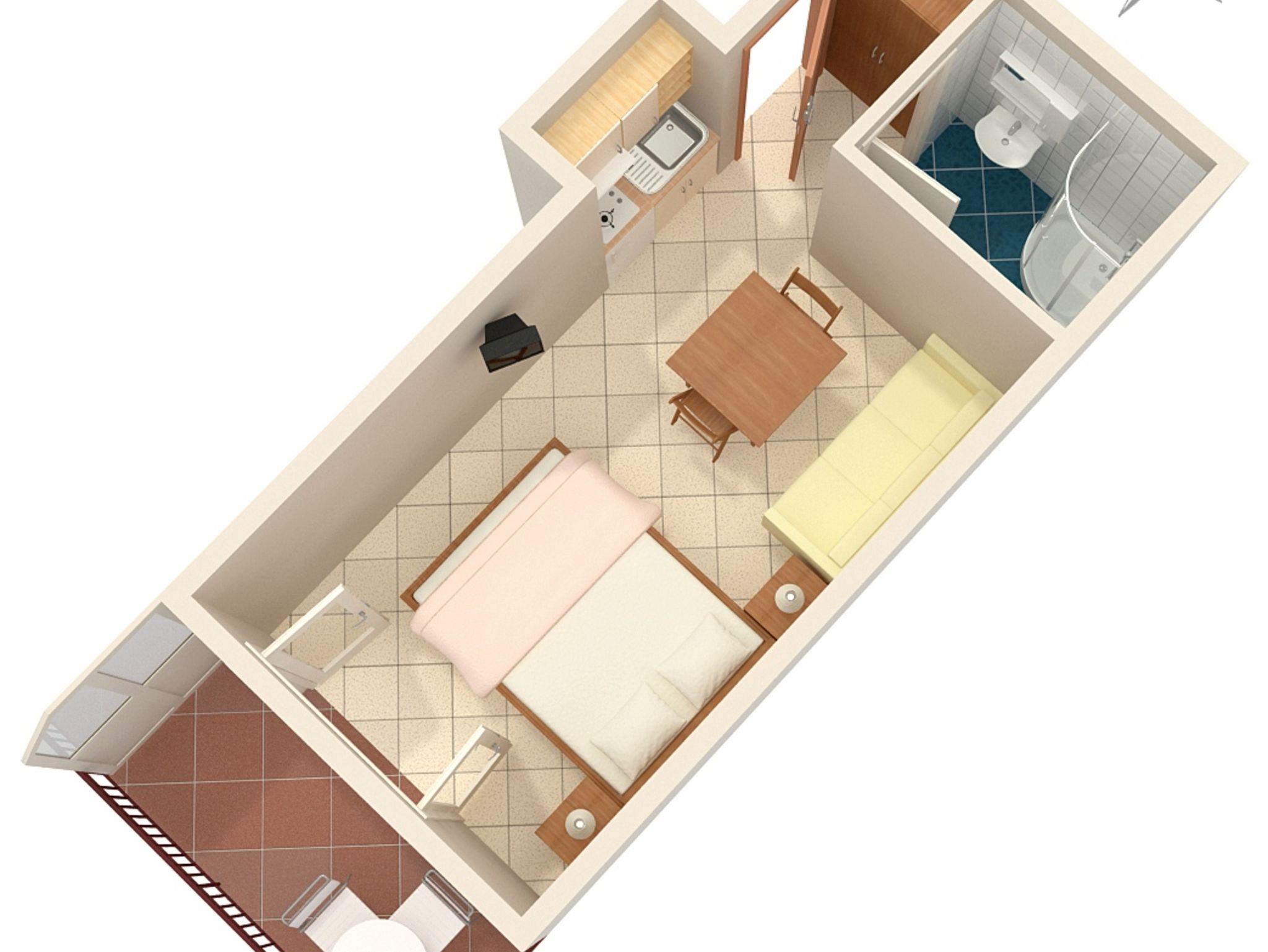 Studio bietet Platz für 3 Gäste. Die Betten sind in Schlafzimmern, die es 1 gibt, und in Esszimmer, innerhalb einer Gesamtfläche von 18m2, angeordnet. Die Gäste haben einen eigenen Balkon zur Verfügung, auf der sie in warmen Sommernächten genießen können. Das Studio-Apartment bietet Meerblick. Es ist erlaubt, Speisen auf dem Gemeinschafts-Grill vorzubereiten. IM PREIS INBEGRIFFEN: Kurtaxe, Endreinigung, Klimatisierung, Parkplatz, Internet, Bügeleisen, Bügelbrett, Föhn. VERBINDLICHE ZUSÄTZLICHE KOSTEN: Aufzahlung für Kurzaufenthalte (prozentualer Zuschlag pro Nächtigungsanzahl: 30% - 1, 20% - 2, 10% - 3). Die Verfügbarkeit zusätzlicher Dienstleistungen in Ihrem reservierten Termin und die Preise derselben (falls nicht aufgeführt) müssen im Voraus überprüft werden. Zusätzliche Dienstleistungen die in der Zahlungsaufforderung nicht aufgeführt sind werden direkt beim Vermieter bezahlt, angenommen der Gast nutzt auch diese.