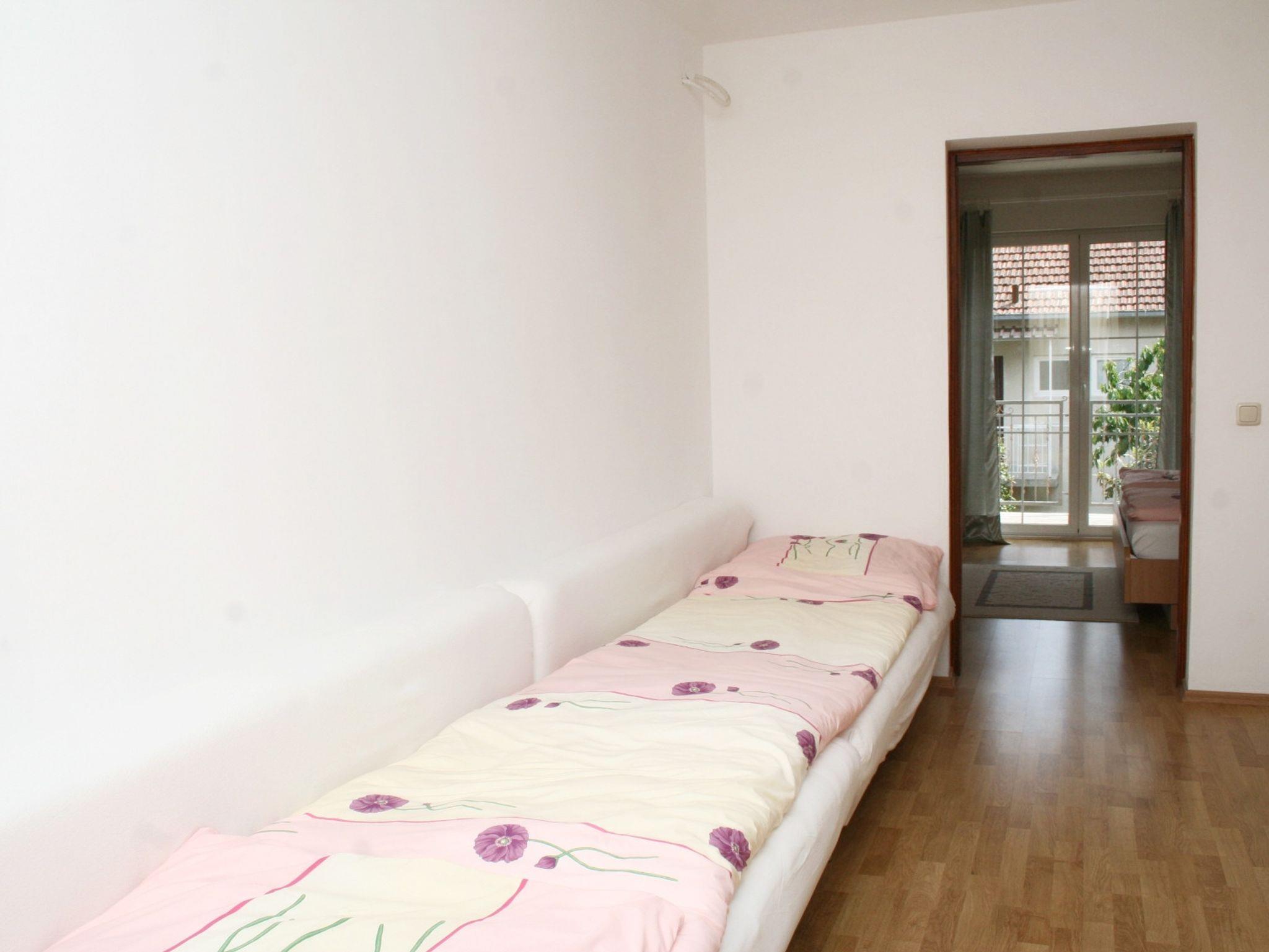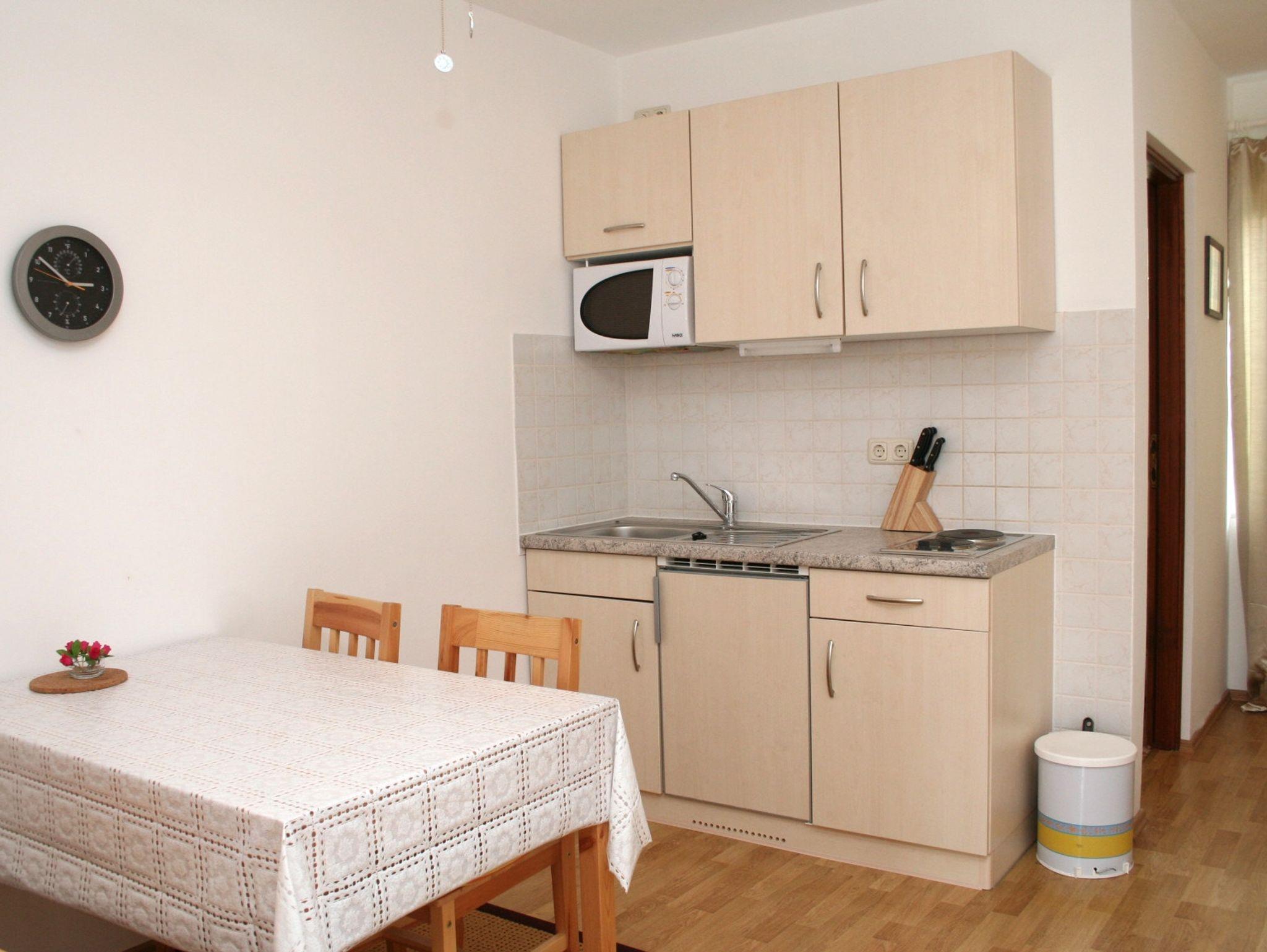 Ferienwohnung bietet Platz für 4 Gäste. Die Betten sind in Schlafzimmern, die es 1 gibt, und in Esszimmer, innerhalb einer Gesamtfläche von 32m2, angeordnet. Die Gäste haben eine eigene Terrasse zur Verfügung, auf der sie in warmen Sommernächten genießen können. Das Apartment bietet Meerblick. Es ist erlaubt, Speisen auf dem Gemeinschafts-Grill vorzubereiten. IM PREIS INBEGRIFFEN: Kurtaxe, Endreinigung, Parkplatz, Internet, Kinderbett. VERBINDLICHE ZUSÄTZLICHE KOSTEN: Aufzahlung für Kurzaufenthalte (prozentualer Zuschlag pro Nächtigungsanzahl: 30% - 1, 20% - 2, 10% - 3). UNVERBINDLICHE ZUSÄTZLICHE KOSTEN: Klimatisierung (5,00 € pro Nacht). Die Verfügbarkeit zusätzlicher Dienstleistungen in Ihrem reservierten Termin und die Preise derselben (falls nicht aufgeführt) müssen im Voraus überprüft werden. Zusätzliche Dienstleistungen die in der Zahlungsaufforderung nicht aufgeführt sind werden direkt beim Vermieter bezahlt, angenommen der Gast nutzt auch diese.