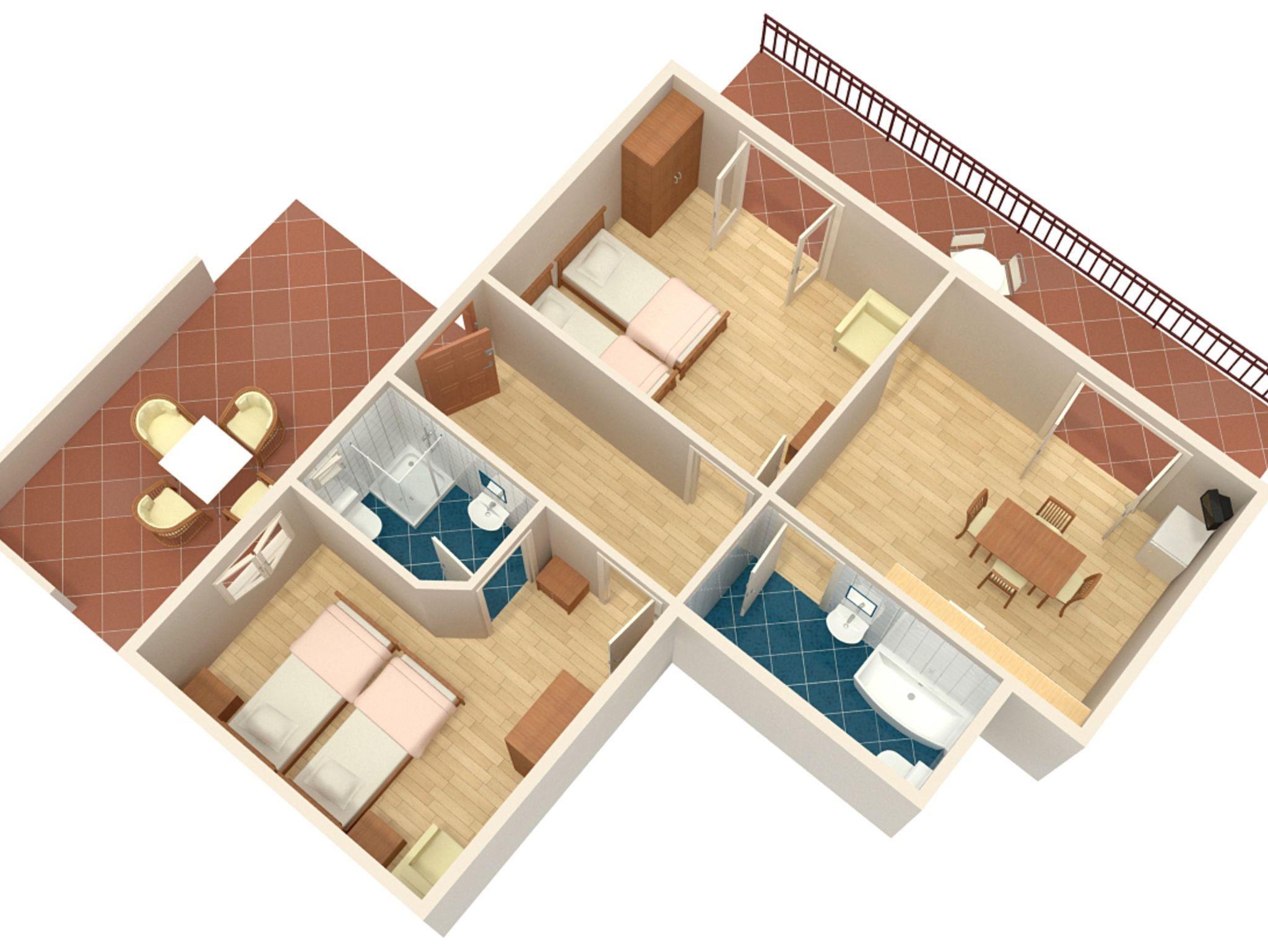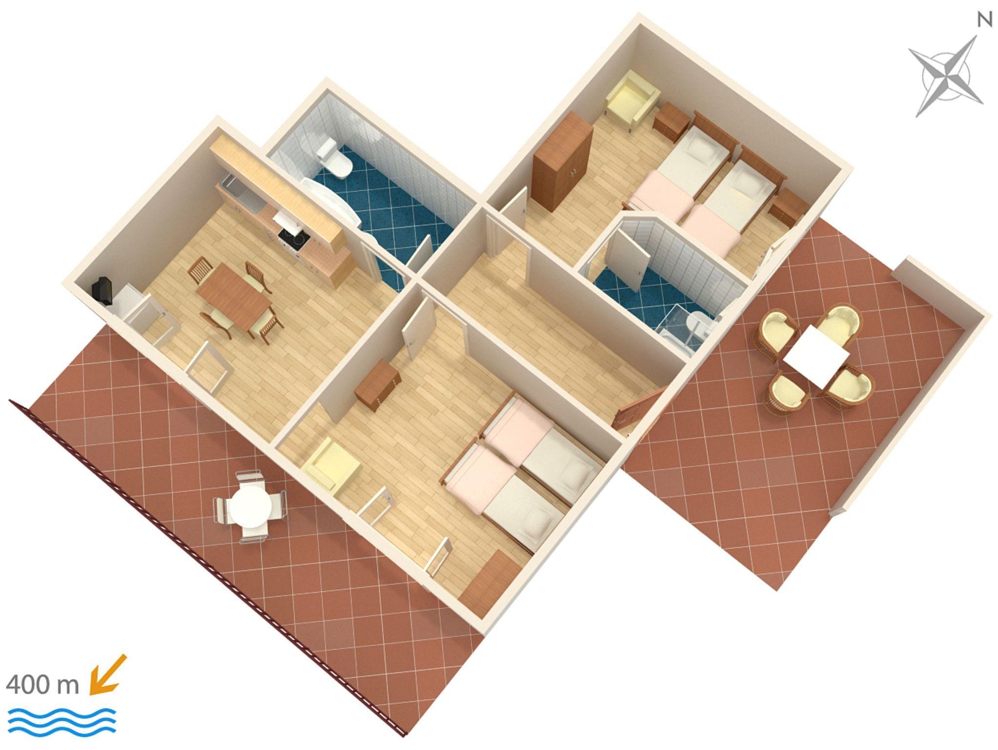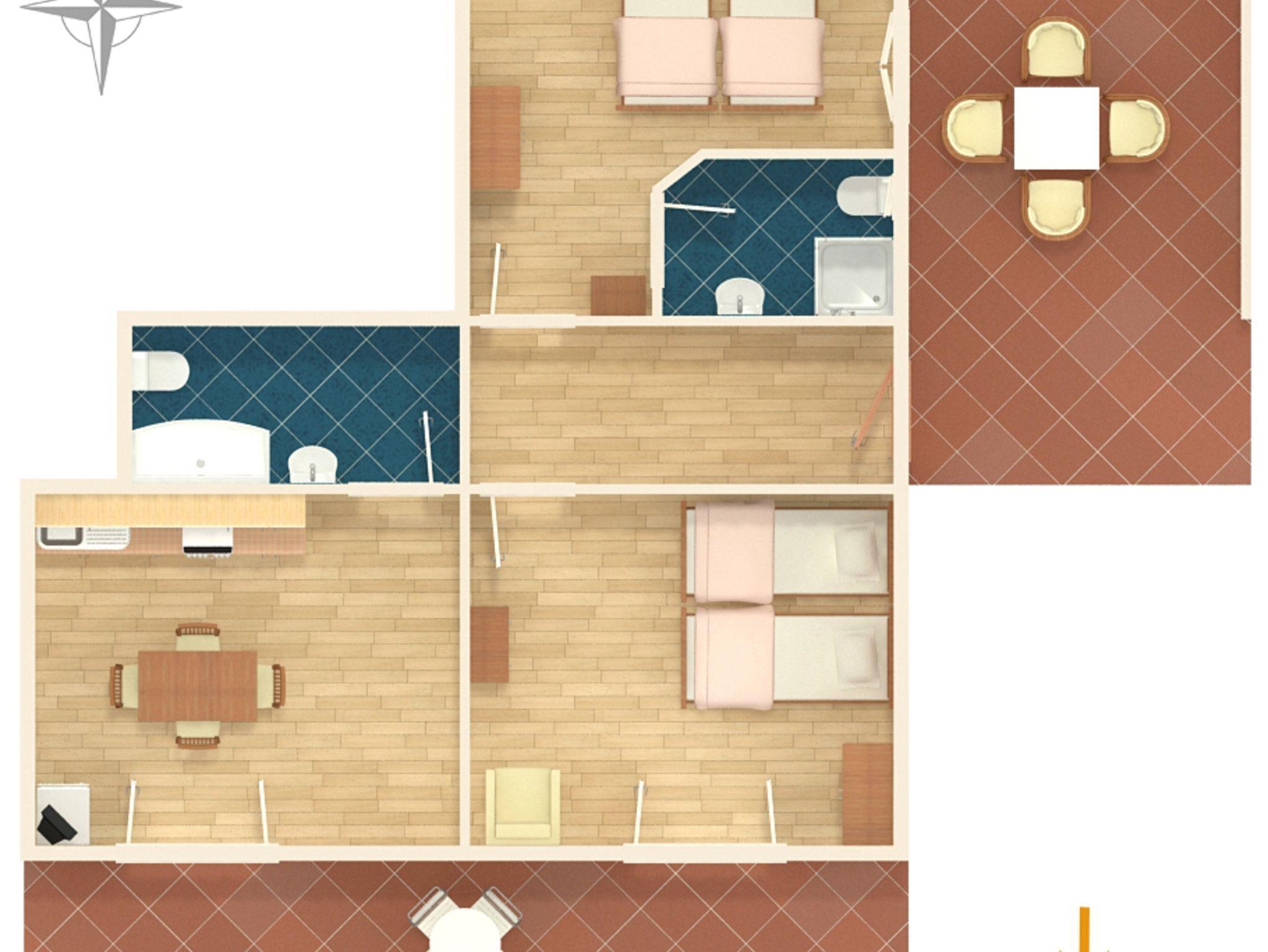 Ferienwohnung bietet Platz für 6 Gäste. Die Betten sind in Schlafzimmern, die es 2 gibt, innerhalb einer Gesamtfläche von 52m2, angeordnet. Die Gäste haben eine eigene Terrasse zur Verfügung, auf der sie in warmen Sommernächten genießen können. Es ist erlaubt, Speisen auf dem Gemeinschafts-Grill vorzubereiten. In der Unterkunftseinheit besteht die Möglichkeit des Mitbringens von Haustieren gegen Aufpreis. IM PREIS INBEGRIFFEN: Kurtaxe, Endreinigung, Parkplatz, Internet. UNVERBINDLICHE ZUSÄTZLICHE KOSTEN: Klimatisierung (10,00 € pro Nacht), Haustiere (10,00 € pro Nacht). Die Verfügbarkeit zusätzlicher Dienstleistungen in Ihrem reservierten Termin und die Preise derselben (falls nicht aufgeführt) müssen im Voraus überprüft werden. Zusätzliche Dienstleistungen die in der Zahlungsaufforderung nicht aufgeführt sind werden direkt beim Vermieter bezahlt, angenommen der Gast nutzt auch diese. Ermäßigung auf den Grundpreis: Gratistag 14=13 (bei einem Aufenthalt von 14 Tagen oder mehr erhalten Sie einen Gratistag für den Aufenthalt bis 31.12.26).