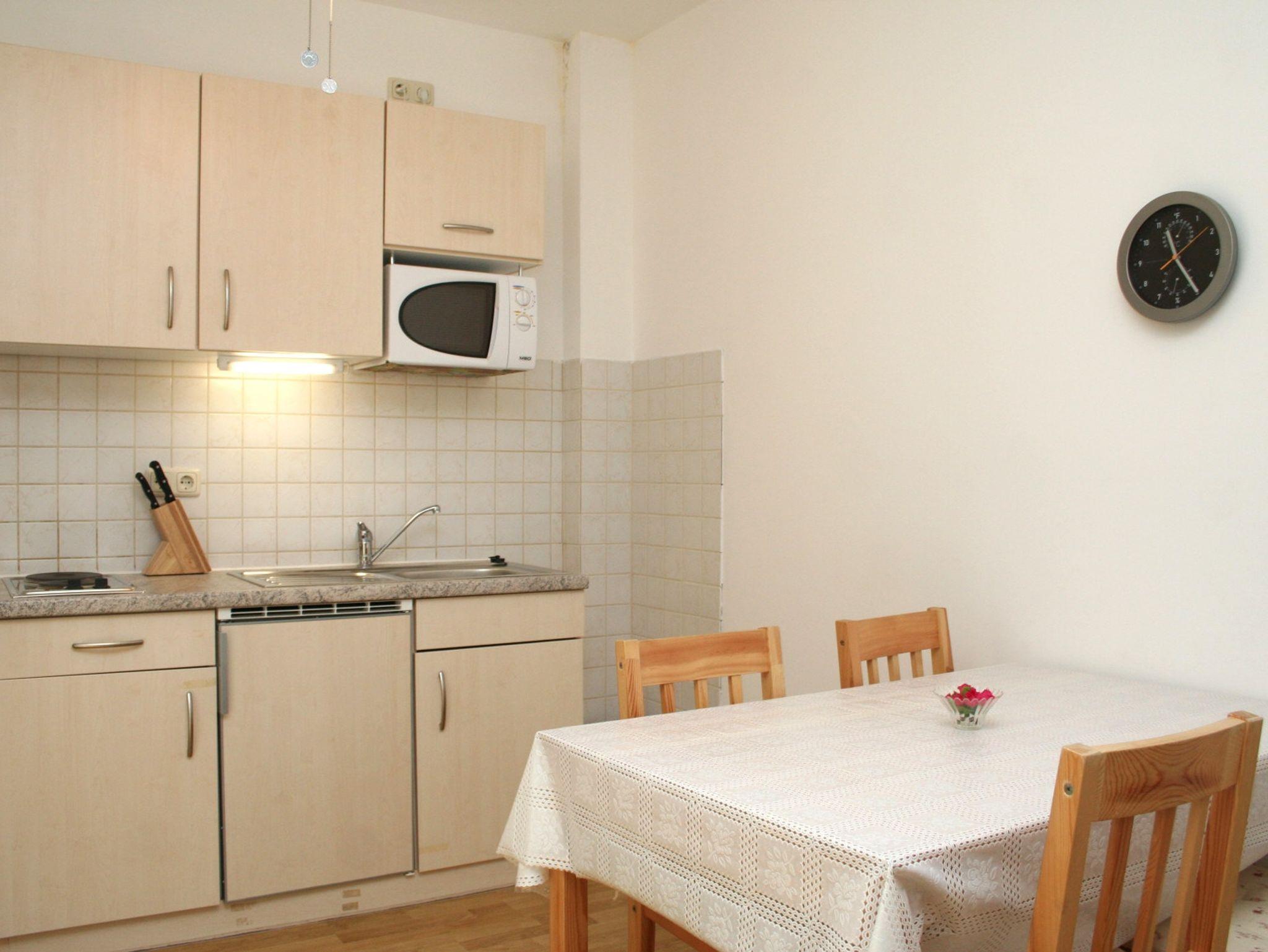Ferienwohnung bietet Platz für 4 Gäste. Die Betten sind in Schlafzimmern, die es 1 gibt, und in Esszimmer, innerhalb einer Gesamtfläche von 32m2, angeordnet. Die Gäste haben eine eigene Terrasse zur Verfügung, auf der sie in warmen Sommernächten genießen können. Es ist erlaubt, Speisen auf dem Gemeinschafts-Grill vorzubereiten. IM PREIS INBEGRIFFEN: Kurtaxe, Endreinigung, Parkplatz, Internet, Kinderbett. VERBINDLICHE ZUSÄTZLICHE KOSTEN: Aufzahlung für Kurzaufenthalte (prozentualer Zuschlag pro Nächtigungsanzahl: 30% - 1, 20% - 2, 10% - 3). UNVERBINDLICHE ZUSÄTZLICHE KOSTEN: Klimatisierung (5,00 € pro Nacht). Die Verfügbarkeit zusätzlicher Dienstleistungen in Ihrem reservierten Termin und die Preise derselben (falls nicht aufgeführt) müssen im Voraus überprüft werden. Zusätzliche Dienstleistungen die in der Zahlungsaufforderung nicht aufgeführt sind werden direkt beim Vermieter bezahlt, angenommen der Gast nutzt auch diese.