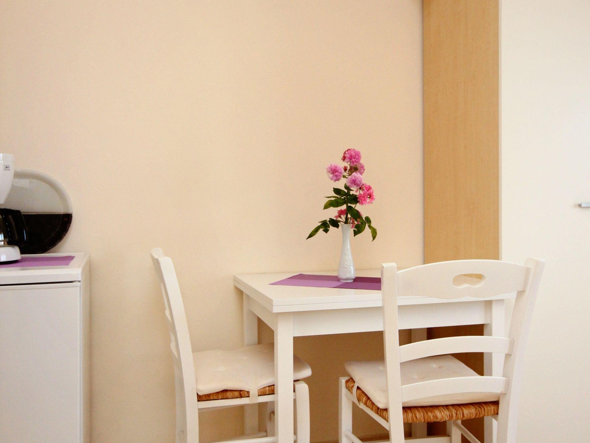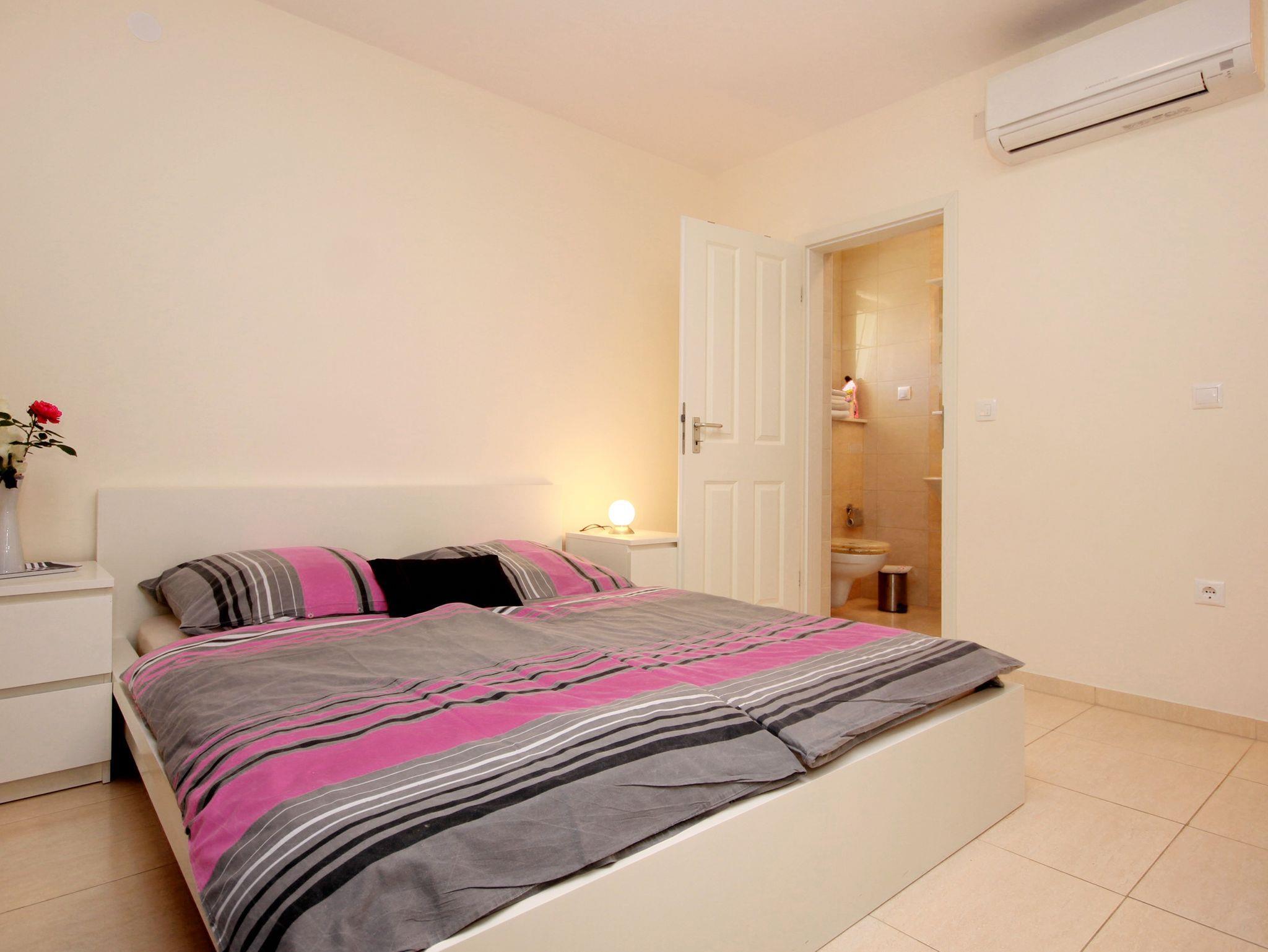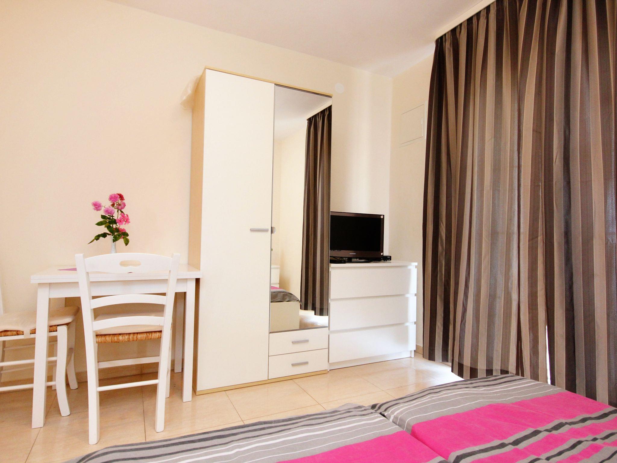 Studio bietet Platz für 2 Gäste. Die Betten sind in Schlafzimmern, die es 1 gibt, innerhalb einer Gesamtfläche von 17m2, angeordnet. Die Gäste haben eine eigene Terrasse zur Verfügung, auf der sie in warmen Sommernächten genießen können. Das Studio-Apartment bietet Meerblick. IM PREIS INBEGRIFFEN: Kurtaxe, Endreinigung, Klimatisierung, Parkplatz, Internet, Kinderbett, Bügeleisen, Bügelbrett, Föhn. VERBINDLICHE ZUSÄTZLICHE KOSTEN: Aufzahlung für Kurzaufenthalte (prozentualer Zuschlag pro Nächtigungsanzahl: 30% - 1, 20% - 2, 10% - 3). Die Verfügbarkeit zusätzlicher Dienstleistungen in Ihrem reservierten Termin und die Preise derselben (falls nicht aufgeführt) müssen im Voraus überprüft werden. Zusätzliche Dienstleistungen die in der Zahlungsaufforderung nicht aufgeführt sind werden direkt beim Vermieter bezahlt, angenommen der Gast nutzt auch diese. Ermäßigung auf den Grundpreis: Gratistag 14=13 (bei einem Aufenthalt von 14 Tagen oder mehr erhalten Sie einen Gratistag für den Aufenthalt bis 31.12.26).