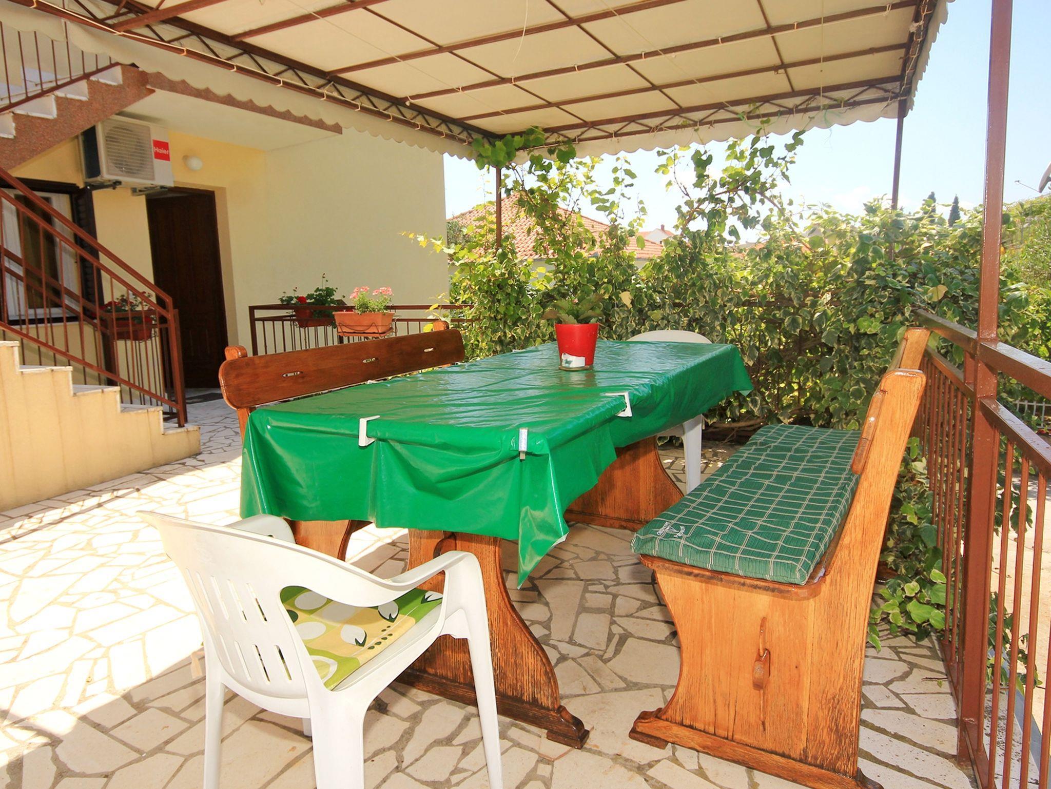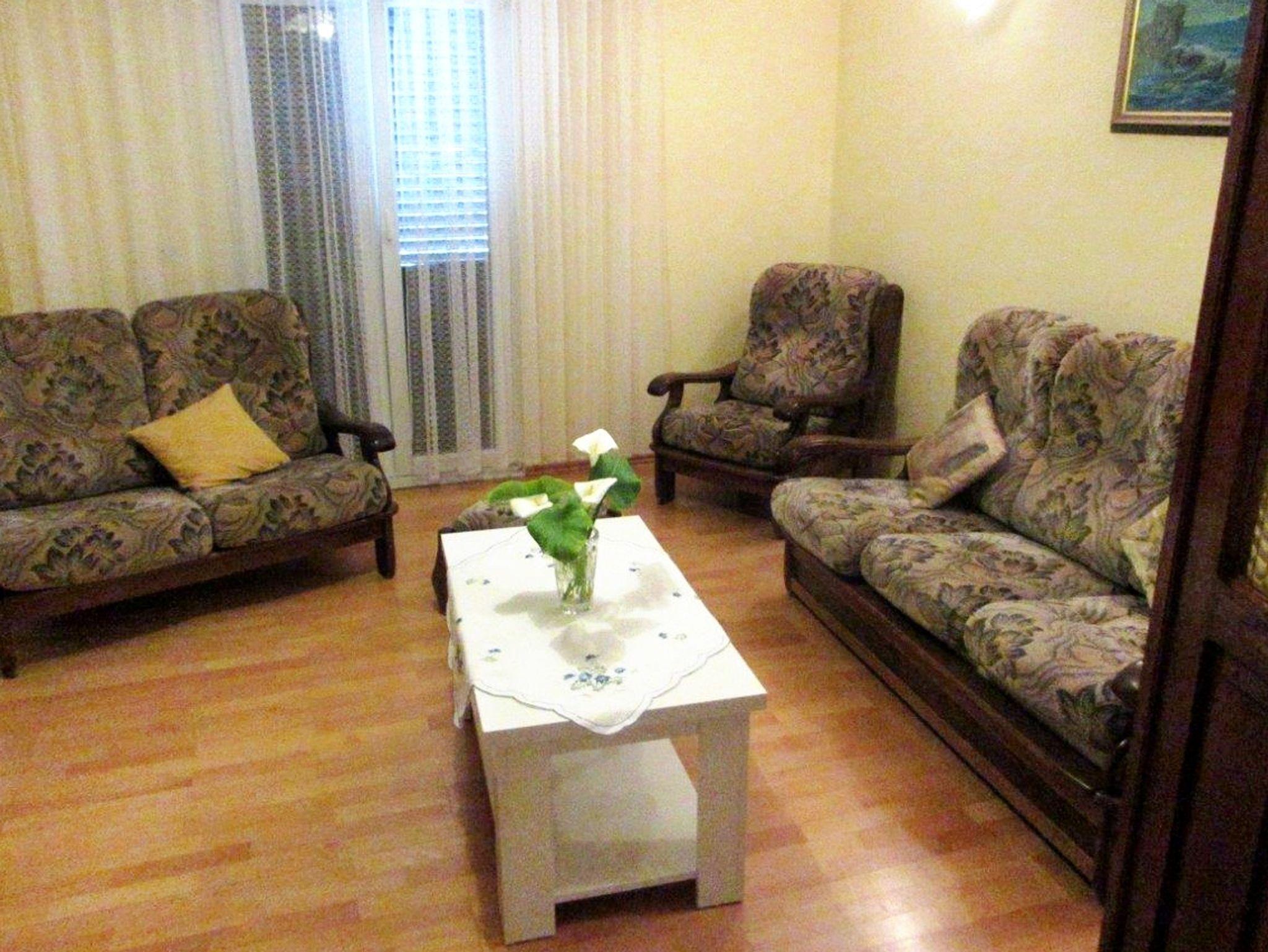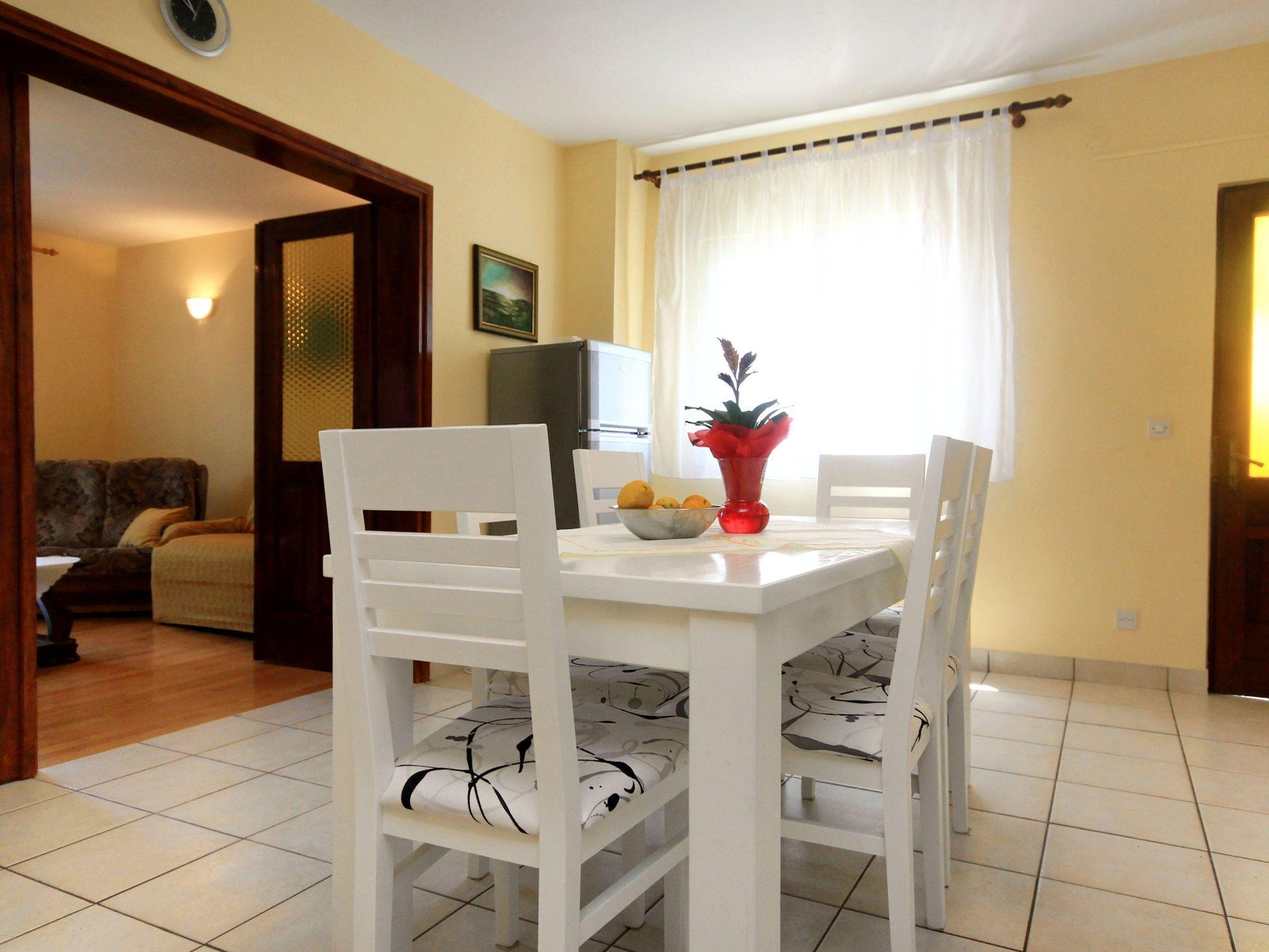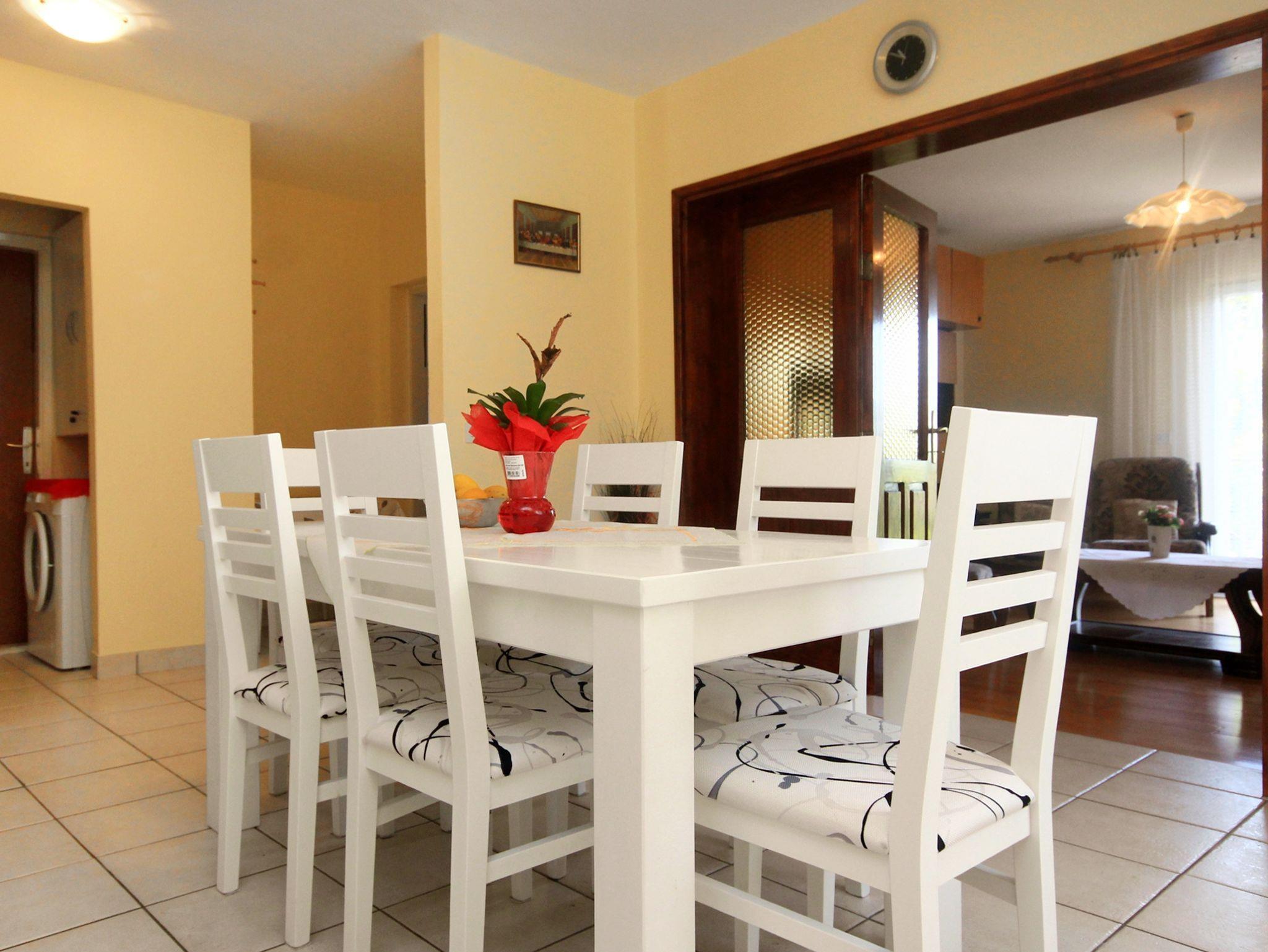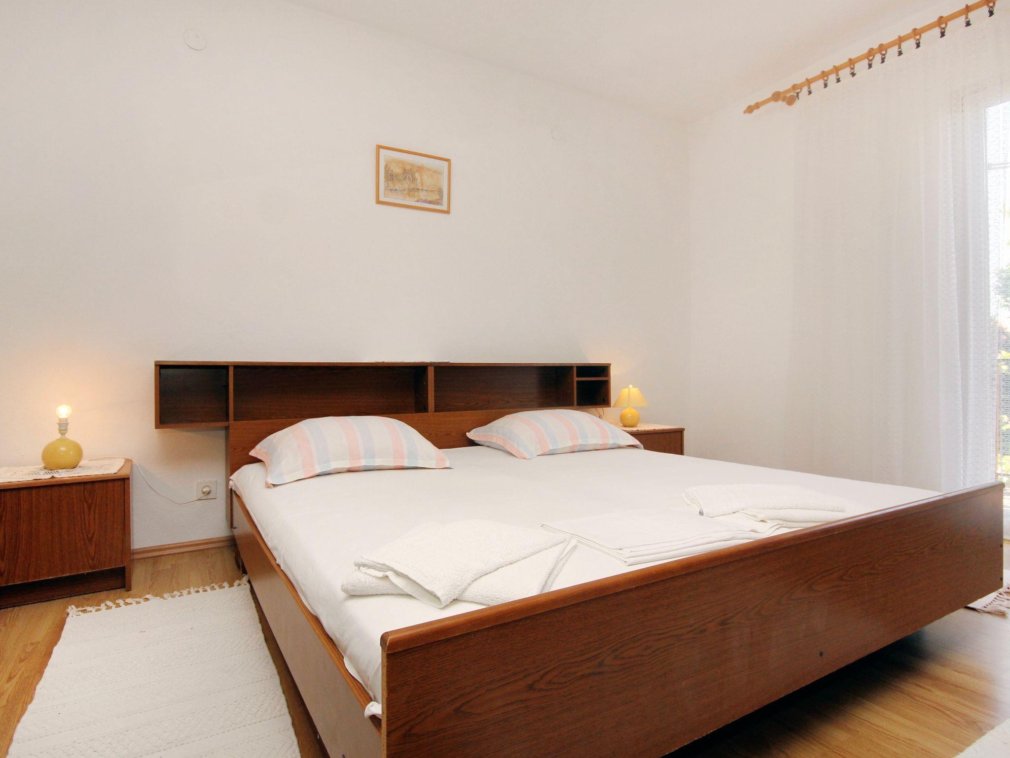 Ferienwohnung bietet Platz für 7 Gäste. Die Betten sind in Schlafzimmern, die es 3 gibt, und in Wohnzimmer, innerhalb einer Gesamtfläche von 101m2, angeordnet. Die Gäste haben eine eigene Terrasse zur Verfügung, auf der sie in warmen Sommernächten genießen können. Es ist erlaubt, Speisen auf dem Gemeinschafts-Grill vorzubereiten. Unterkunftseinheit hat Räume, die von dem Rest der Einheit abgetrennt werden. IM PREIS INBEGRIFFEN: Kurtaxe, Endreinigung, Klimatisierung, Parkplatz, Garage, Internet, Bügeleisen, Bügelbrett, tragbarer Grill. VERBINDLICHE ZUSÄTZLICHE KOSTEN: Aufzahlung für Kurzaufenthalte (prozentualer Zuschlag pro Nächtigungsanzahl: 30% - 1, 20% - 2, 10% - 3). Die Verfügbarkeit zusätzlicher Dienstleistungen in Ihrem reservierten Termin und die Preise derselben (falls nicht aufgeführt) müssen im Voraus überprüft werden. Zusätzliche Dienstleistungen die in der Zahlungsaufforderung nicht aufgeführt sind werden direkt beim Vermieter bezahlt, angenommen der Gast nutzt auch diese. Ermäßigung auf den Grundpreis: Gratistag 14=13 (bei einem Aufenthalt von 14 Tagen oder mehr erhalten Sie einen Gratistag für den Aufenthalt bis 31.12.26).